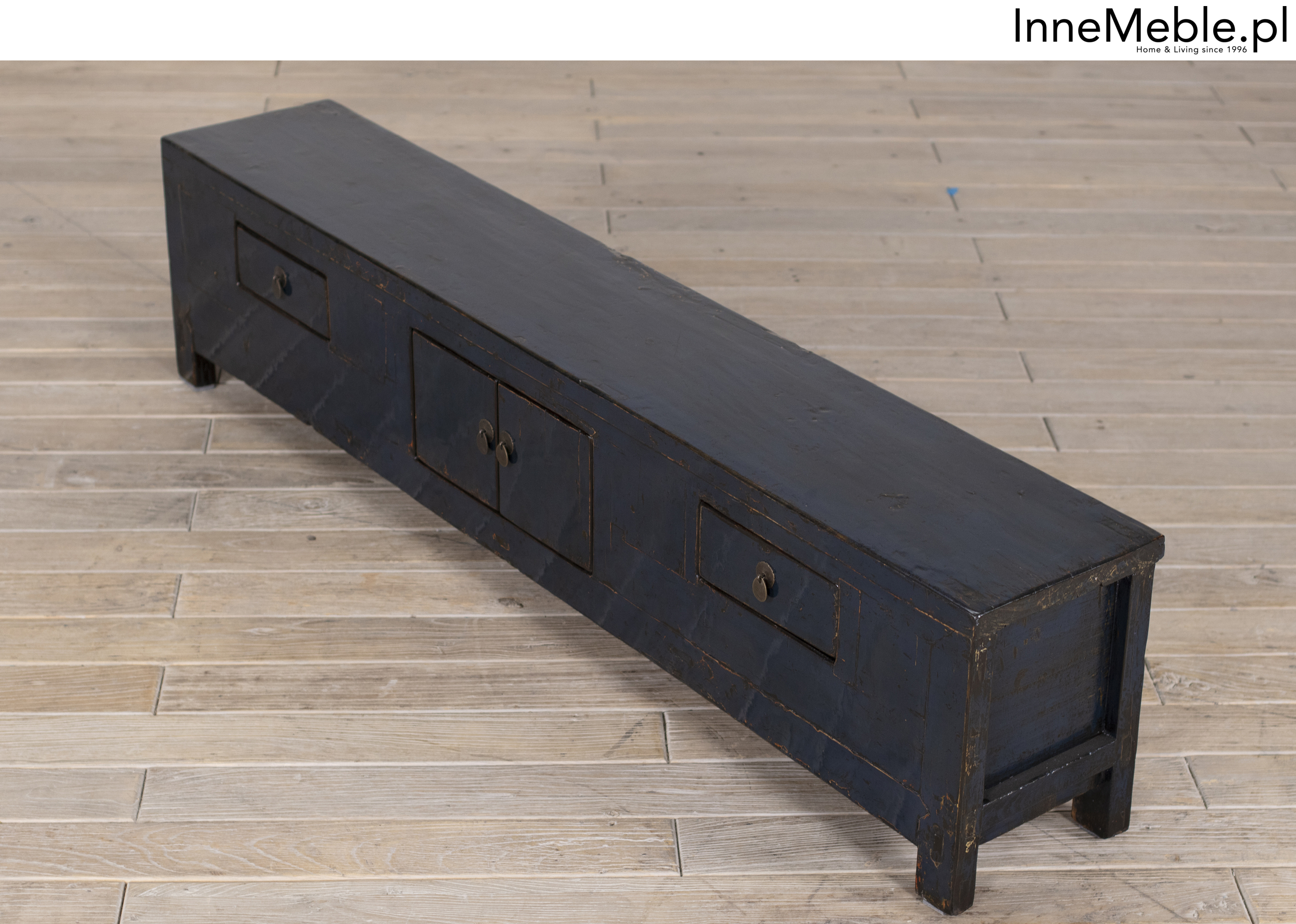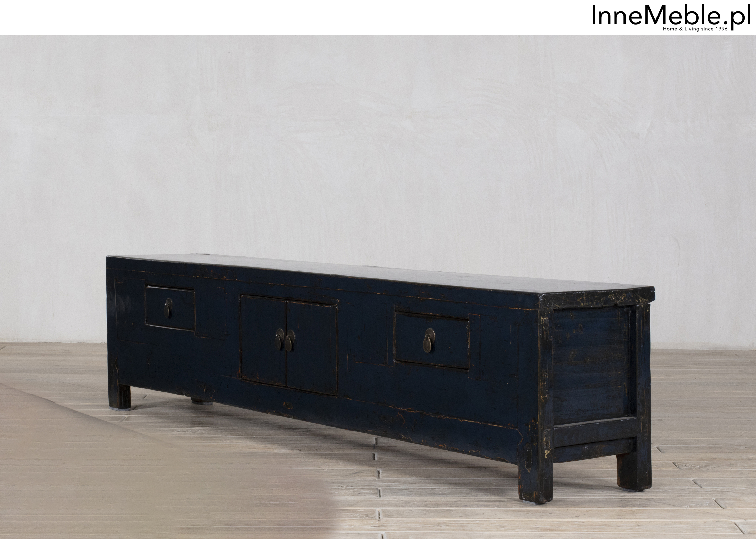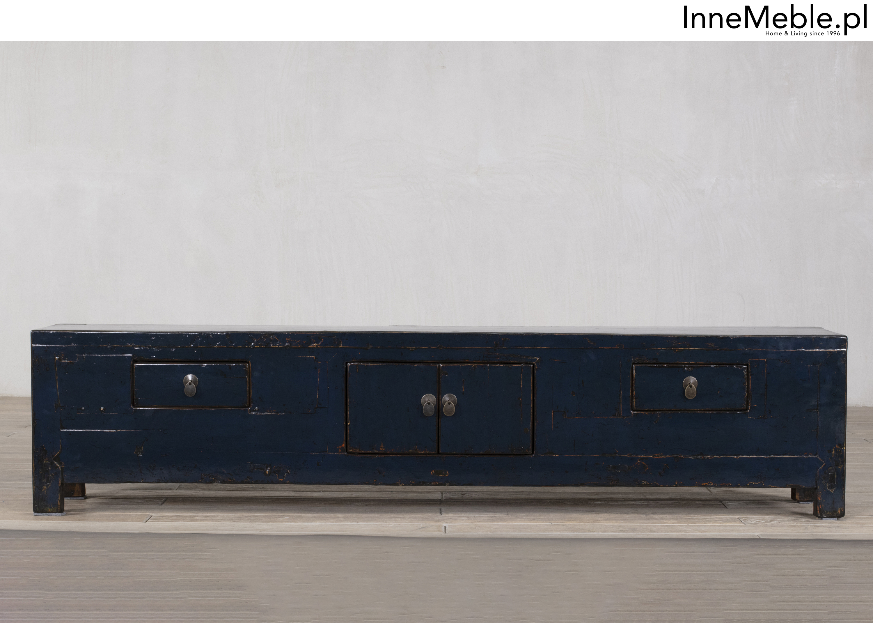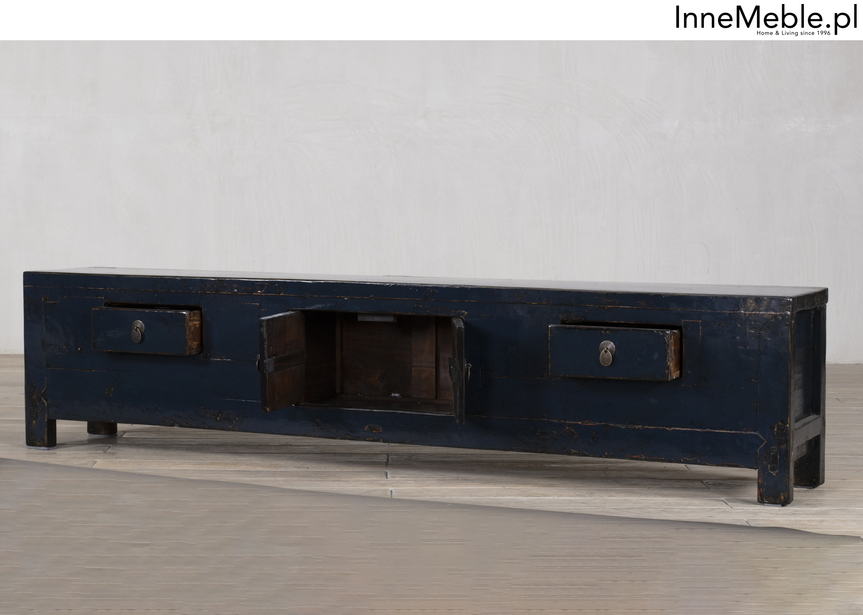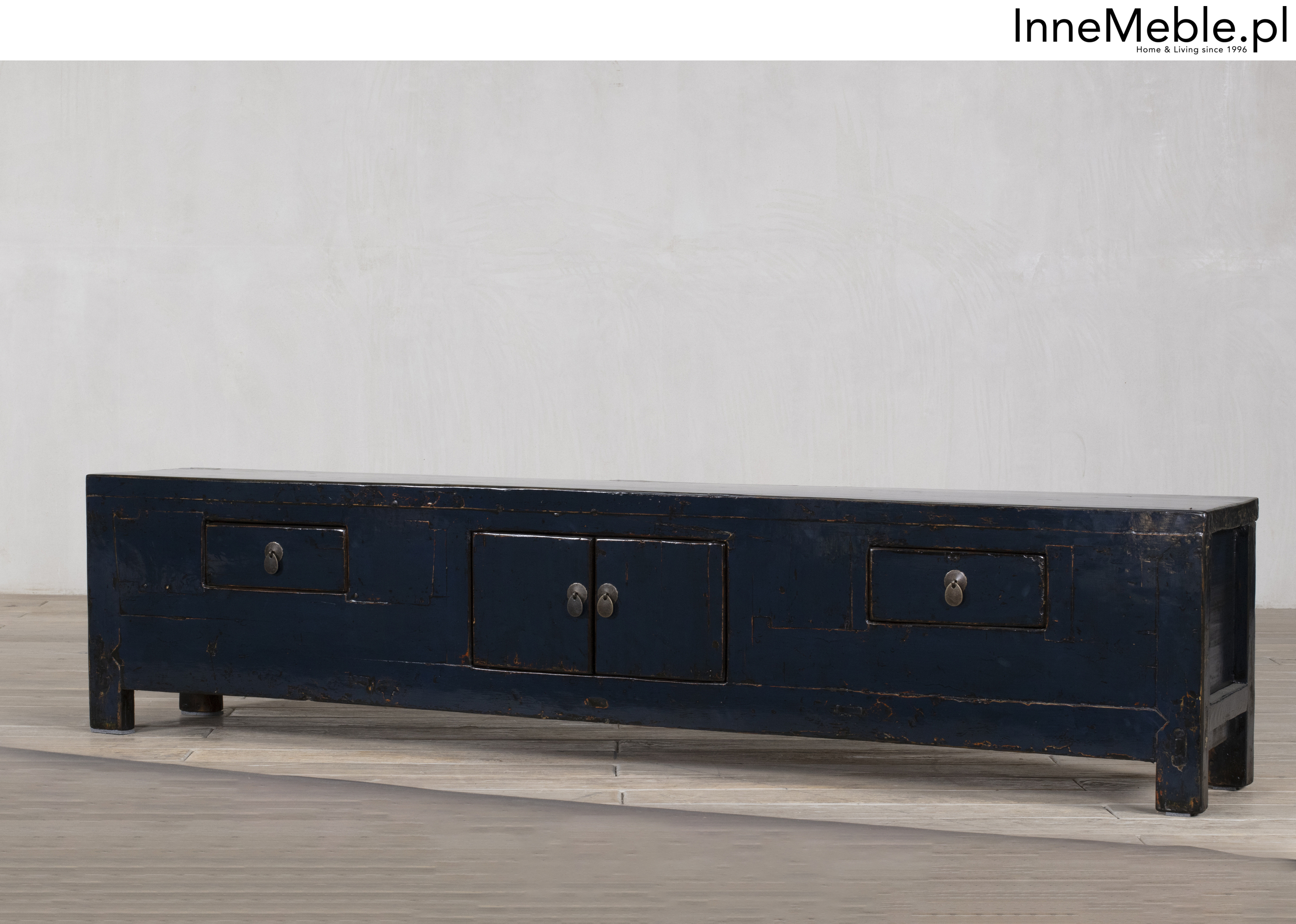 Długa telewizyjna oryginalna komoda, szafka RTV granatowa