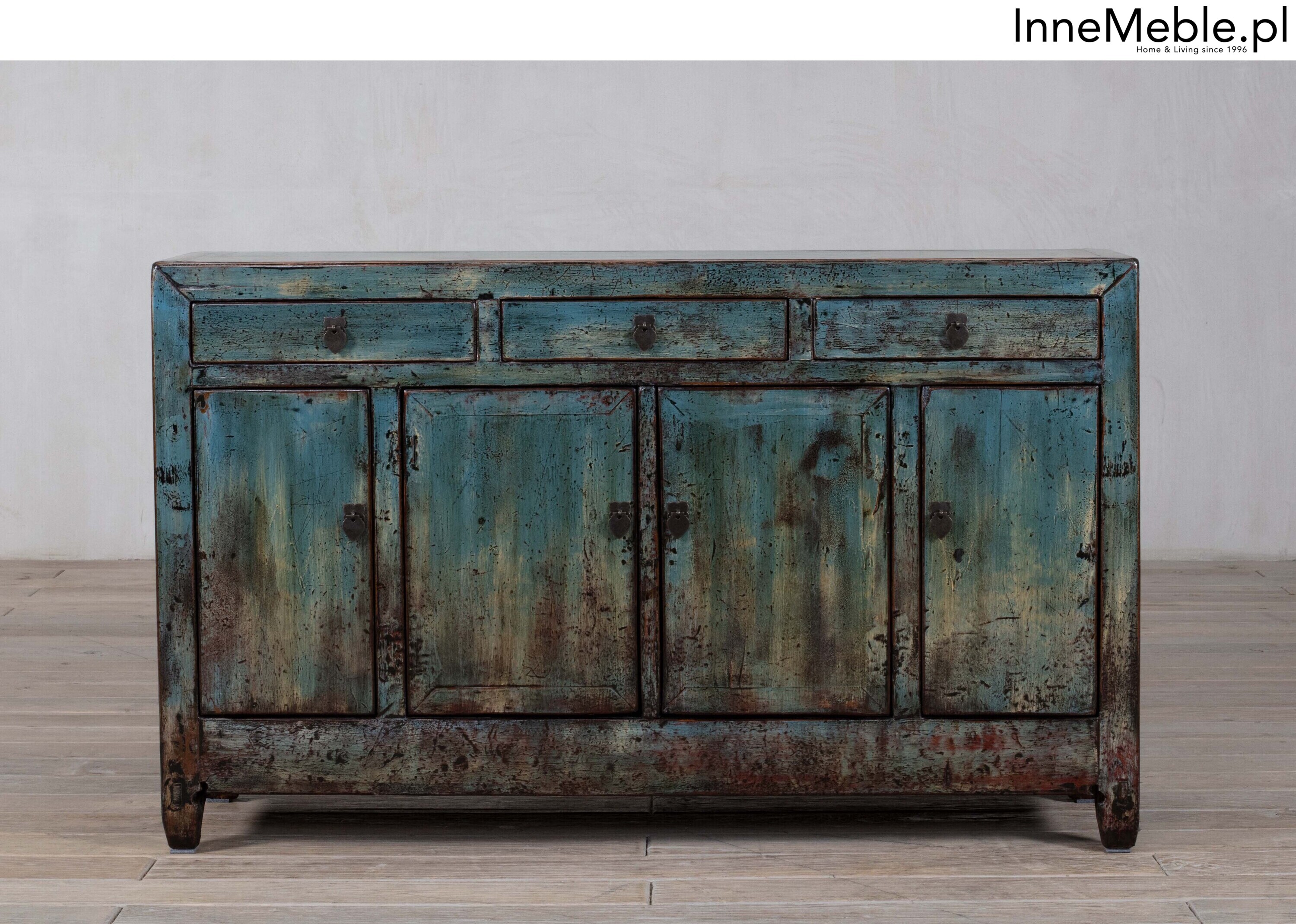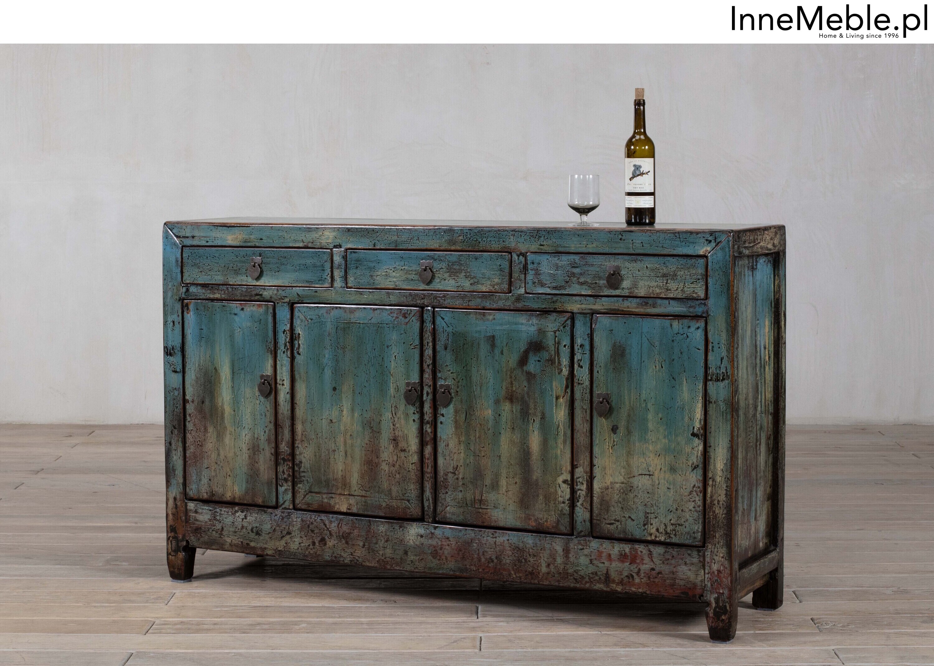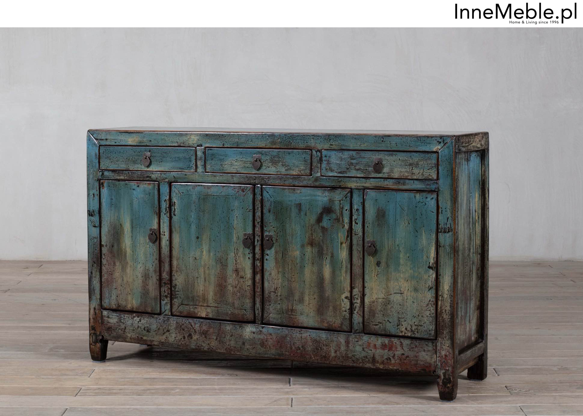 Duża komoda szuflady i drzwi turkuswo niebieska