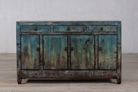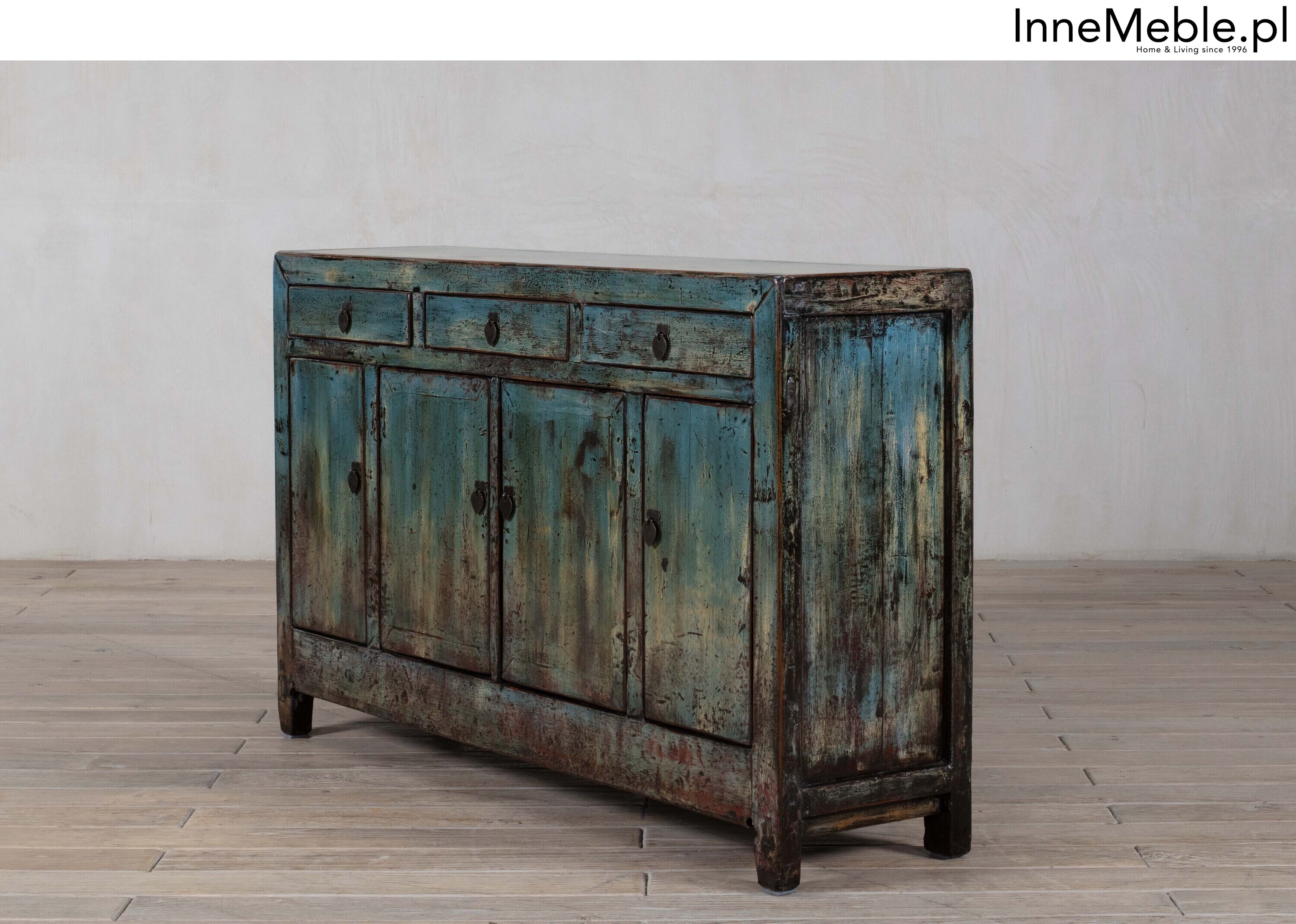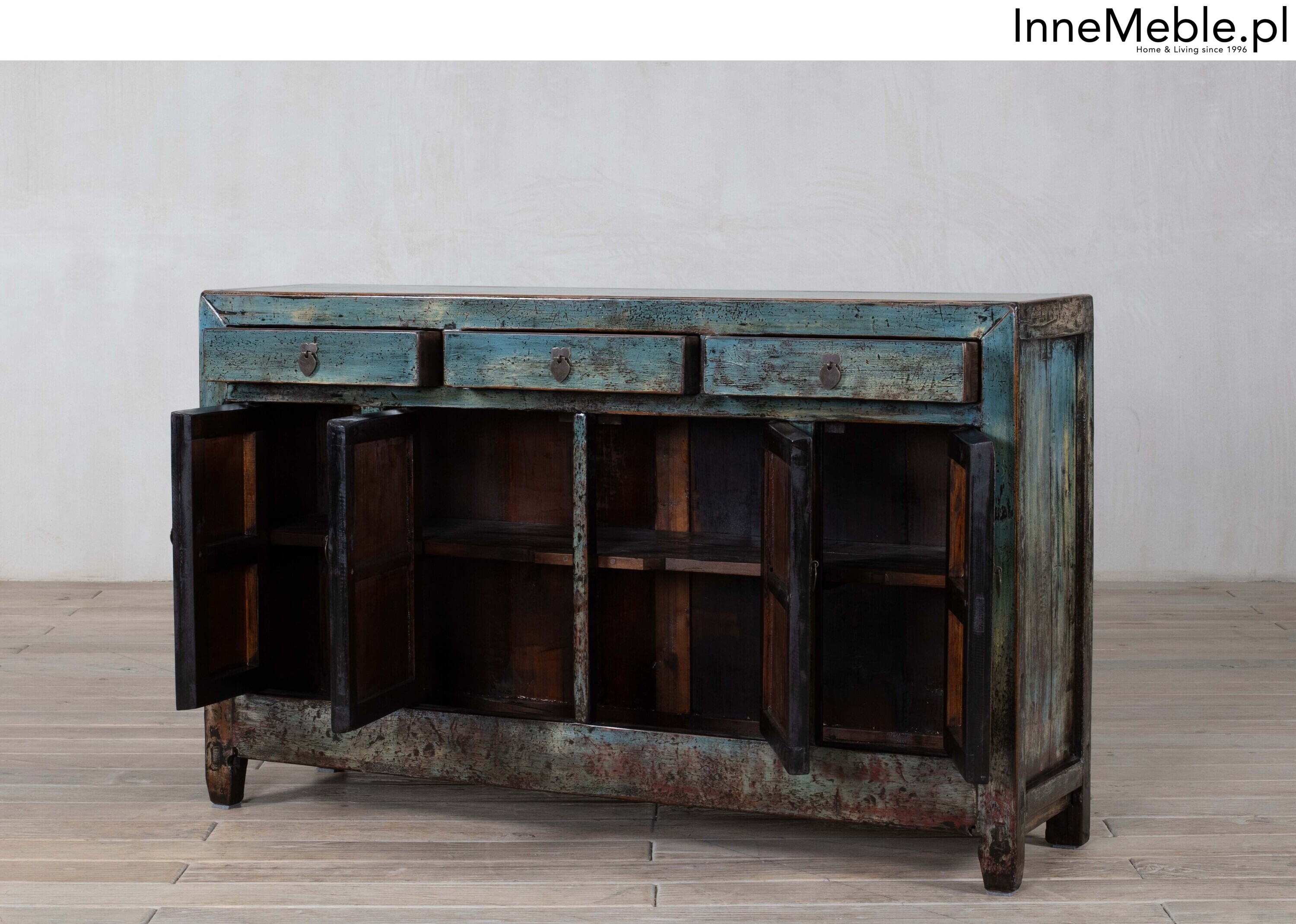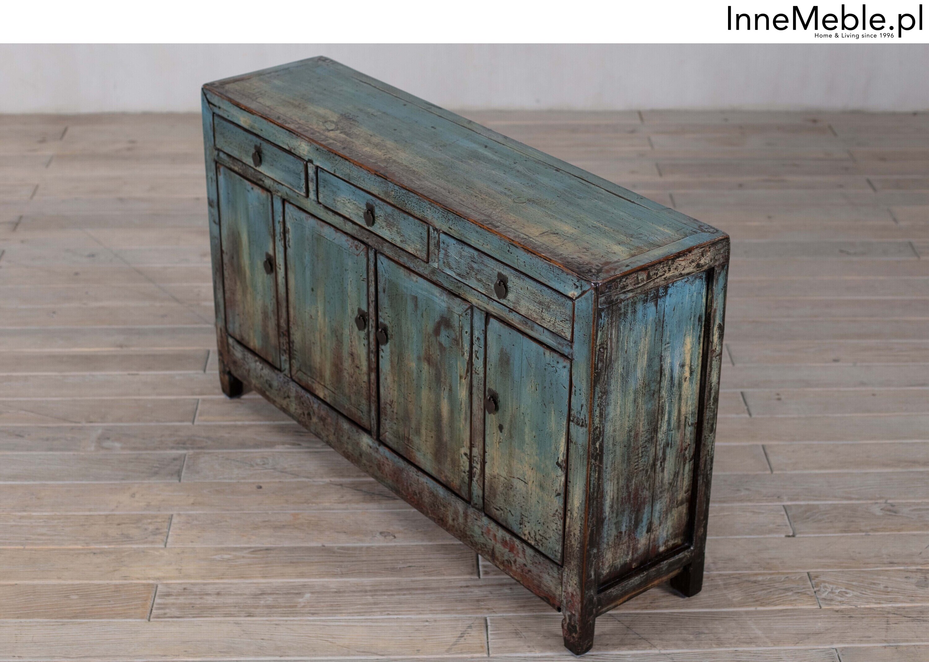 Duża komoda szuflady i drzwi turkuswo niebieska