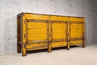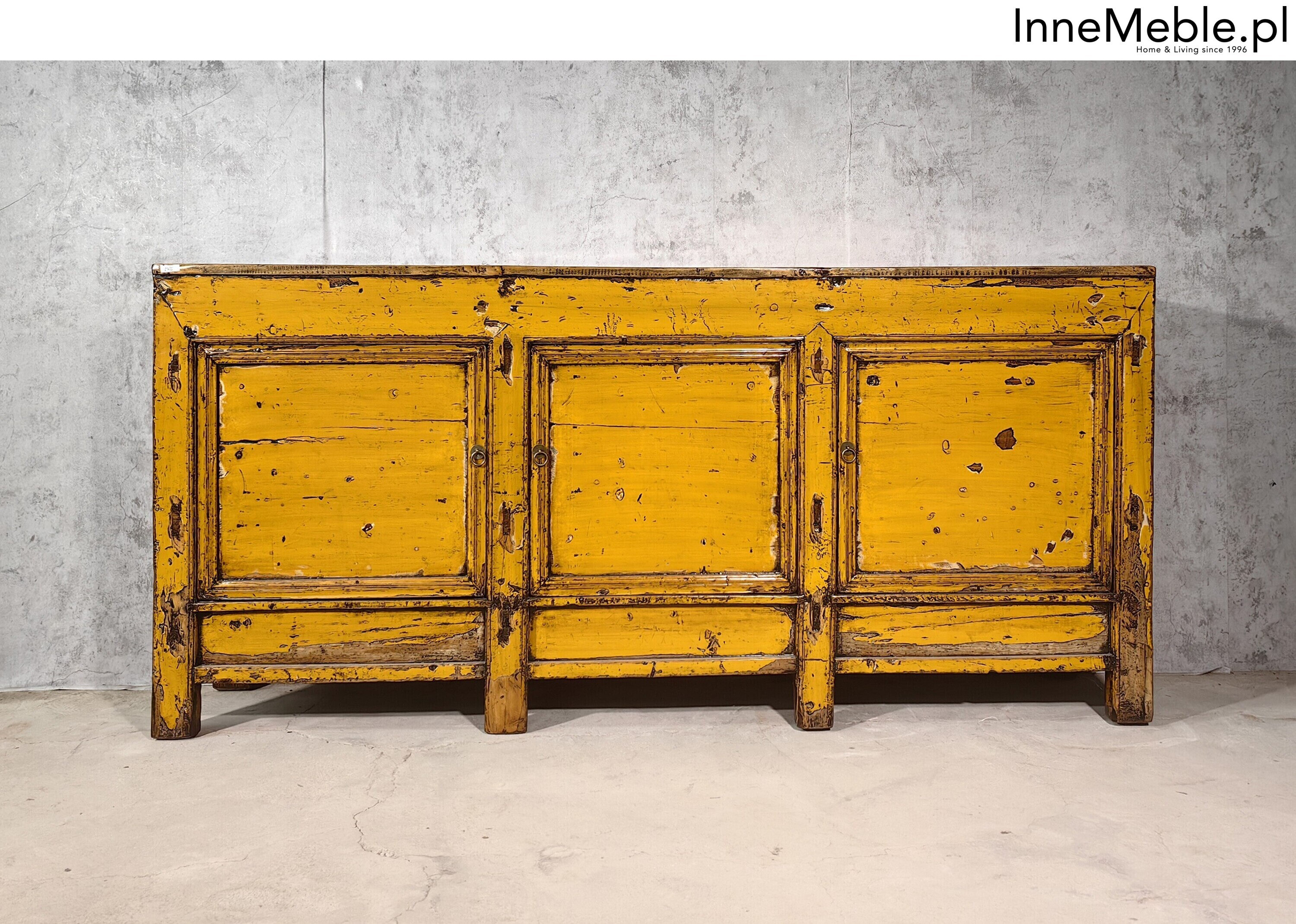 Duża pomarańczowa komoda drewniana z drzwiami, antyki komody malowane Azja