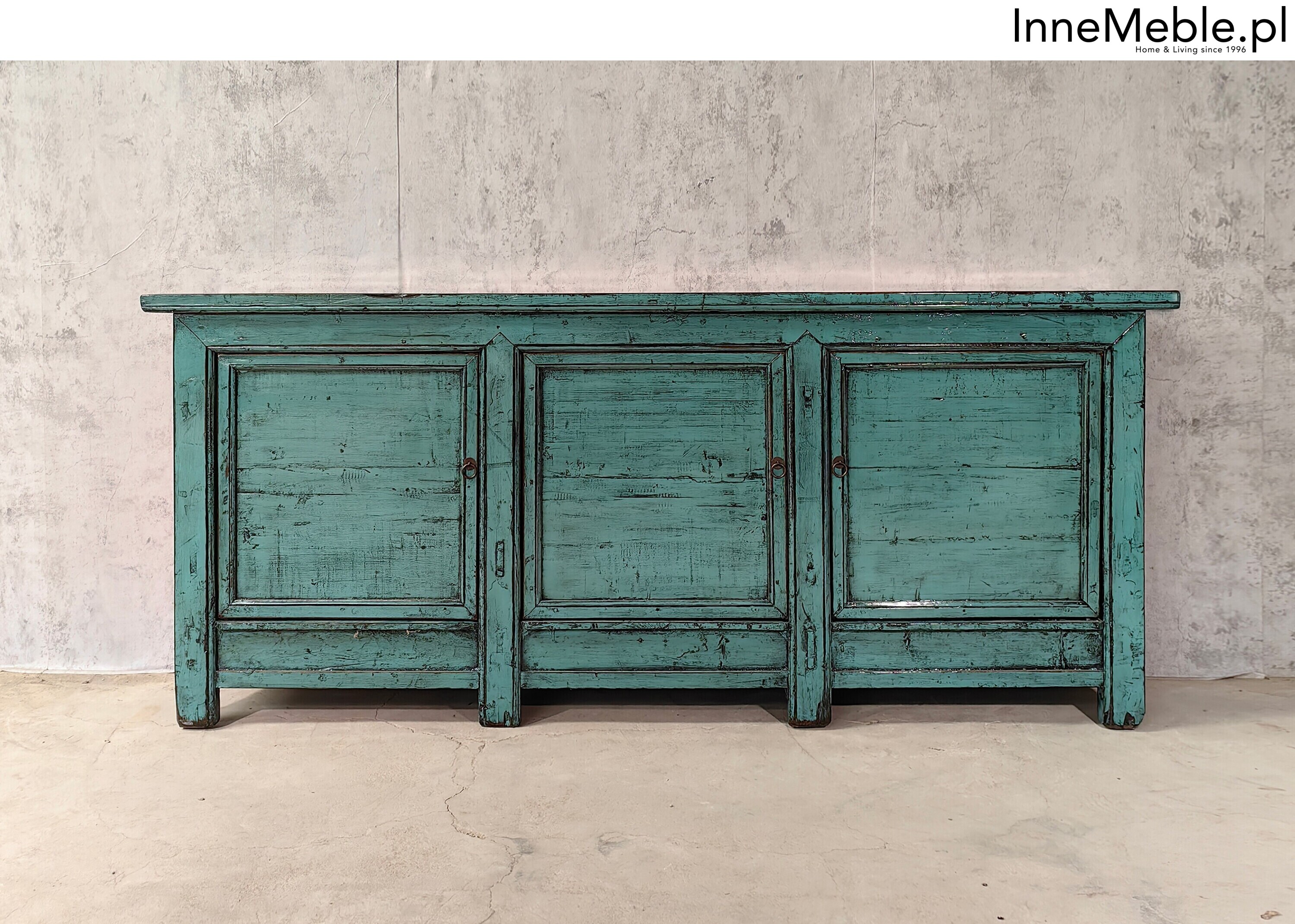 Duża turkusowa komoda z drzwiami, komoda 230cm, antyk meble Chiny