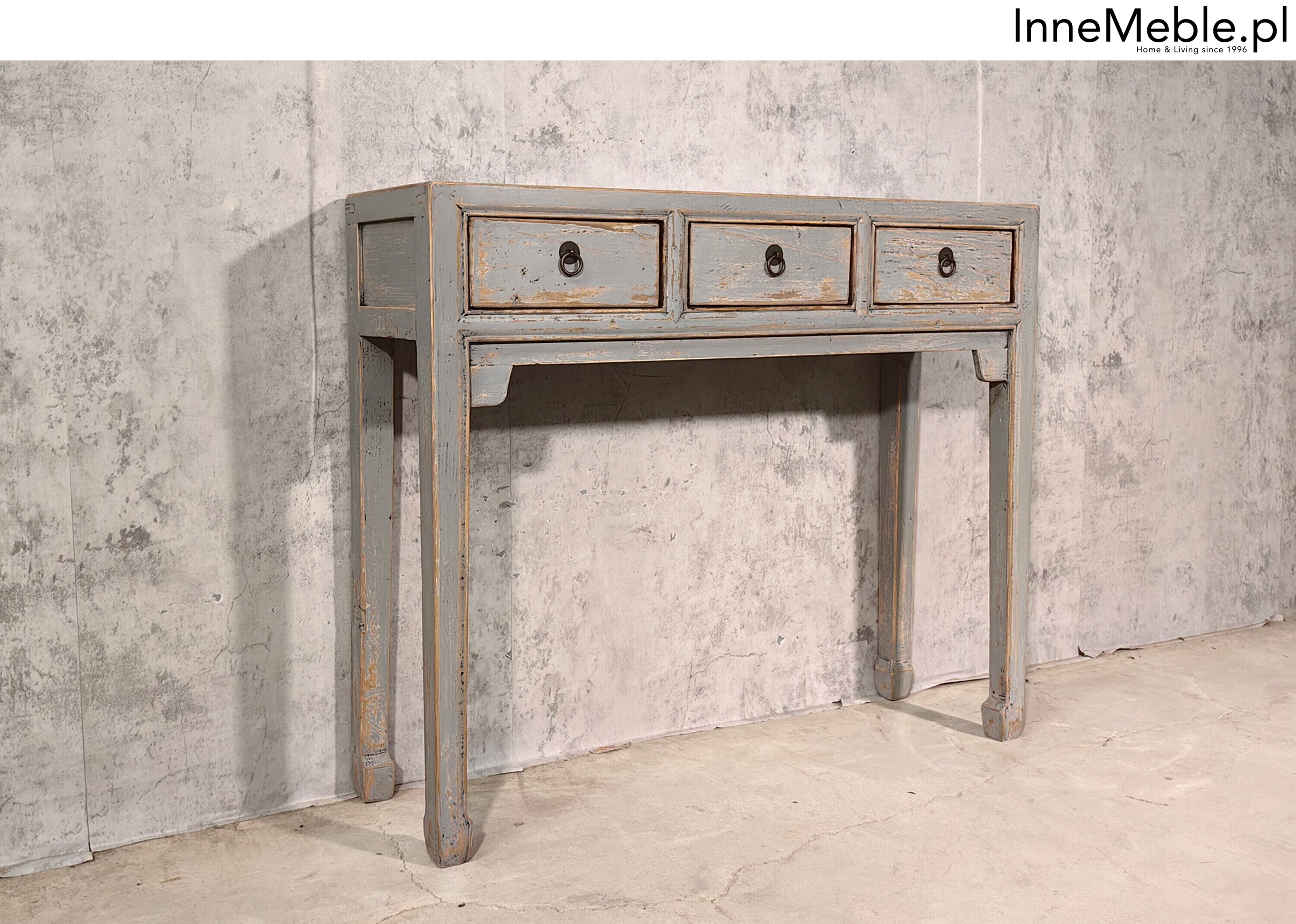 Konsolka 100cm szara 3 szuflady, drewniana konsolka