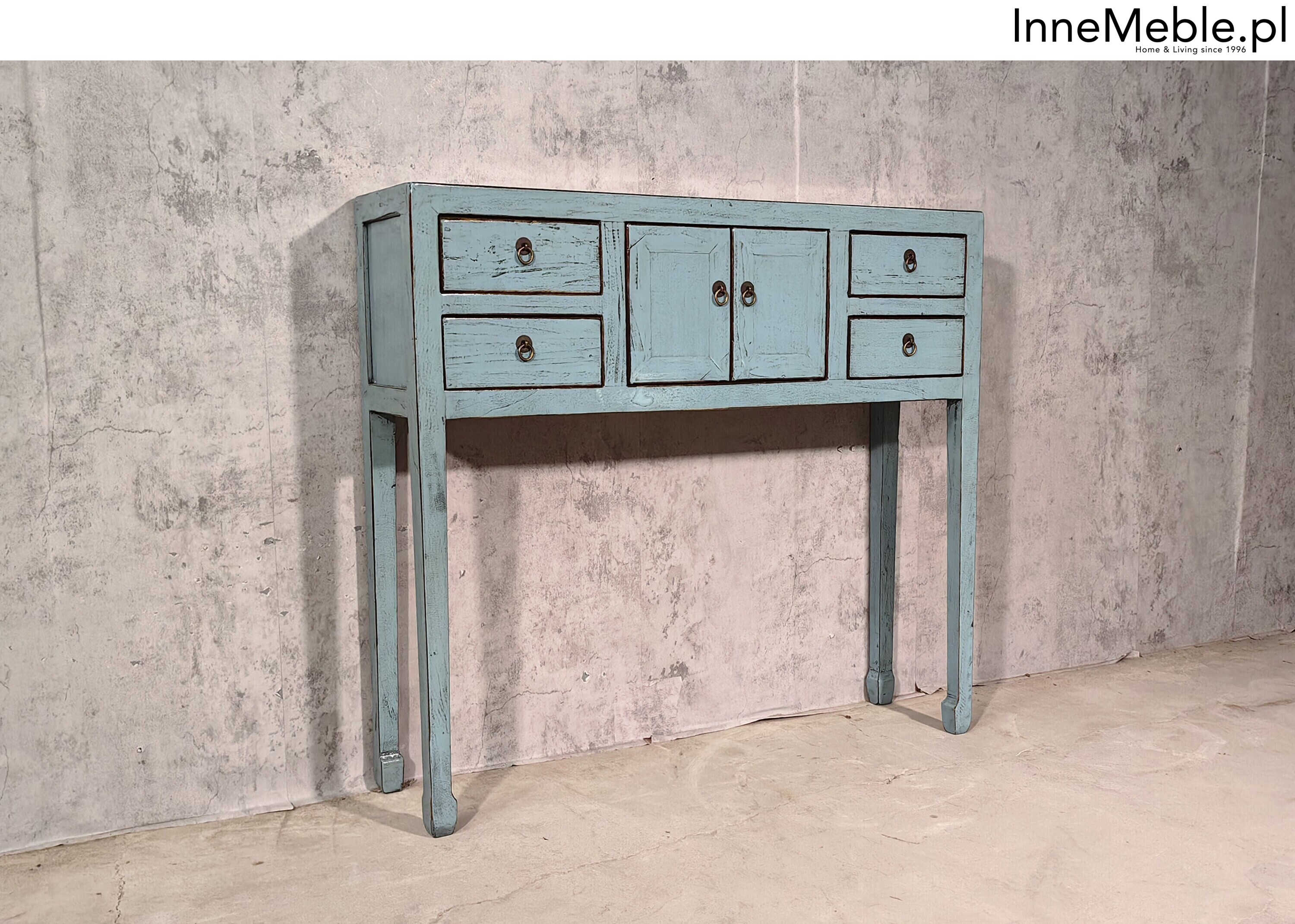 Konsolka niebieska 4 szuflady, konsola z drewna malowana kolor niebieski
