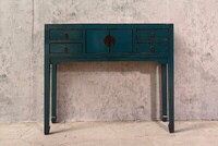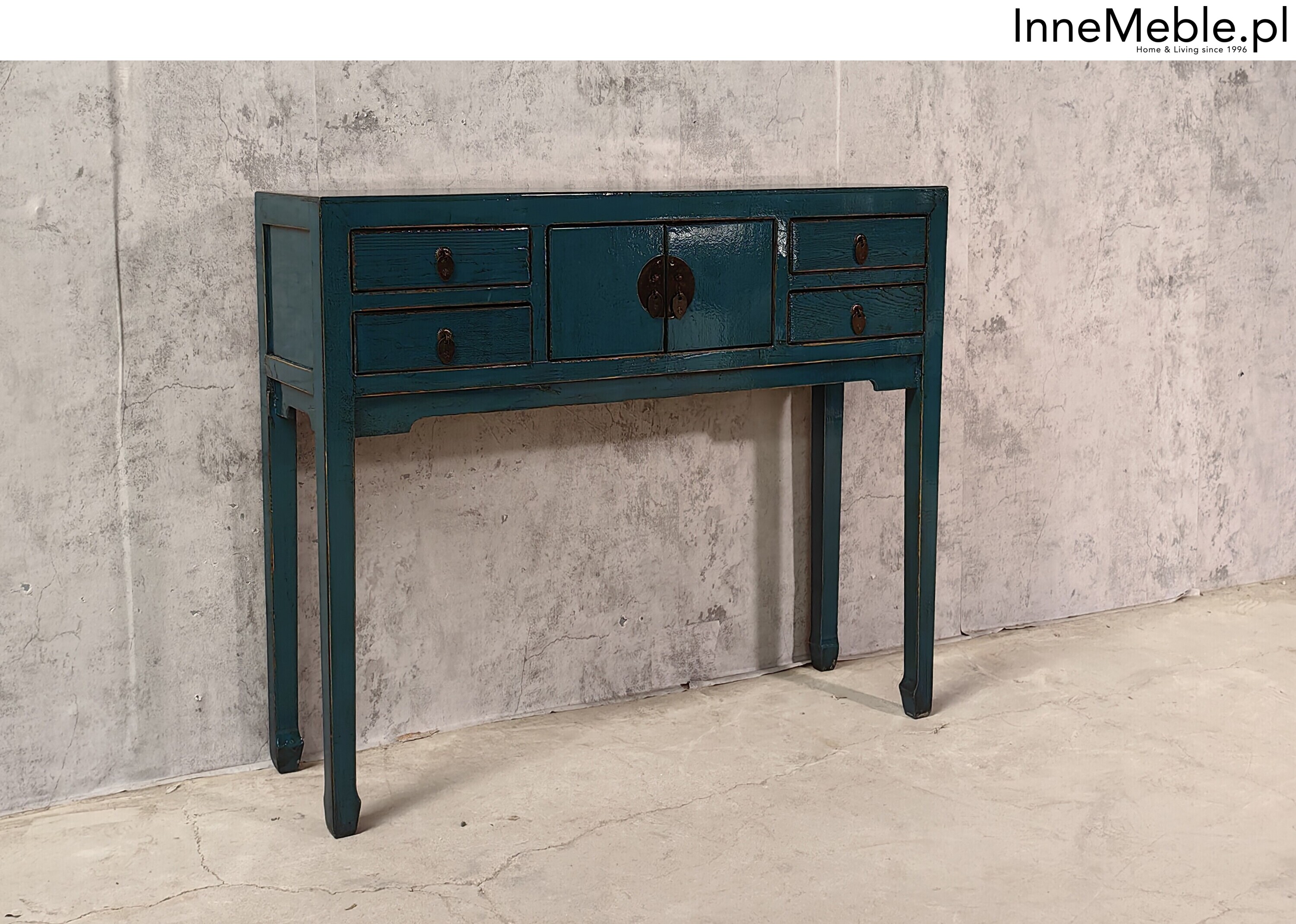 Konsolka niebieska 4 szuflady, konsola z drewna malowana kolor niebieski