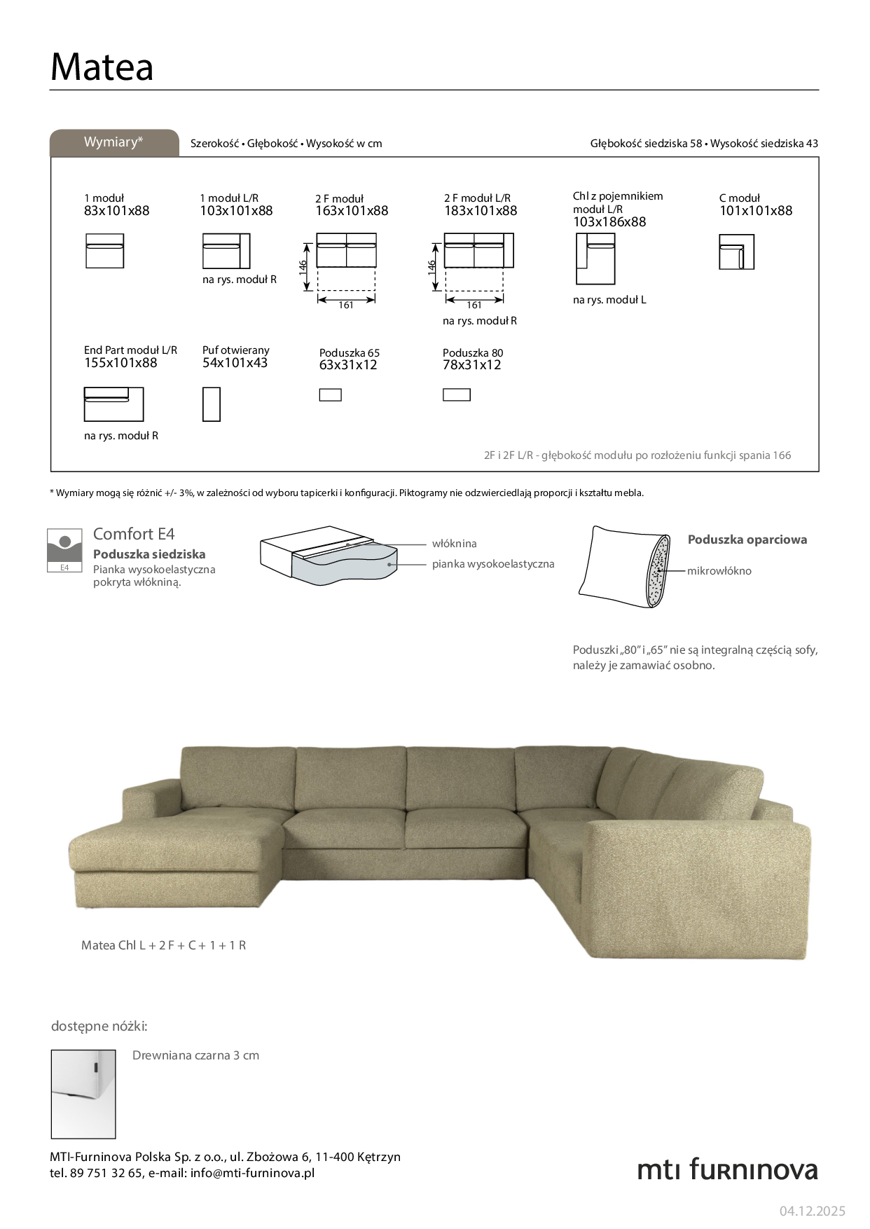 | 1 | MATEA 1 moduł B/B | COMF_E-4 | - | - | - | 2018 zł | 2145 zł | 2298 zł | 2450 zł | 2551 zł | - | - | - | - |