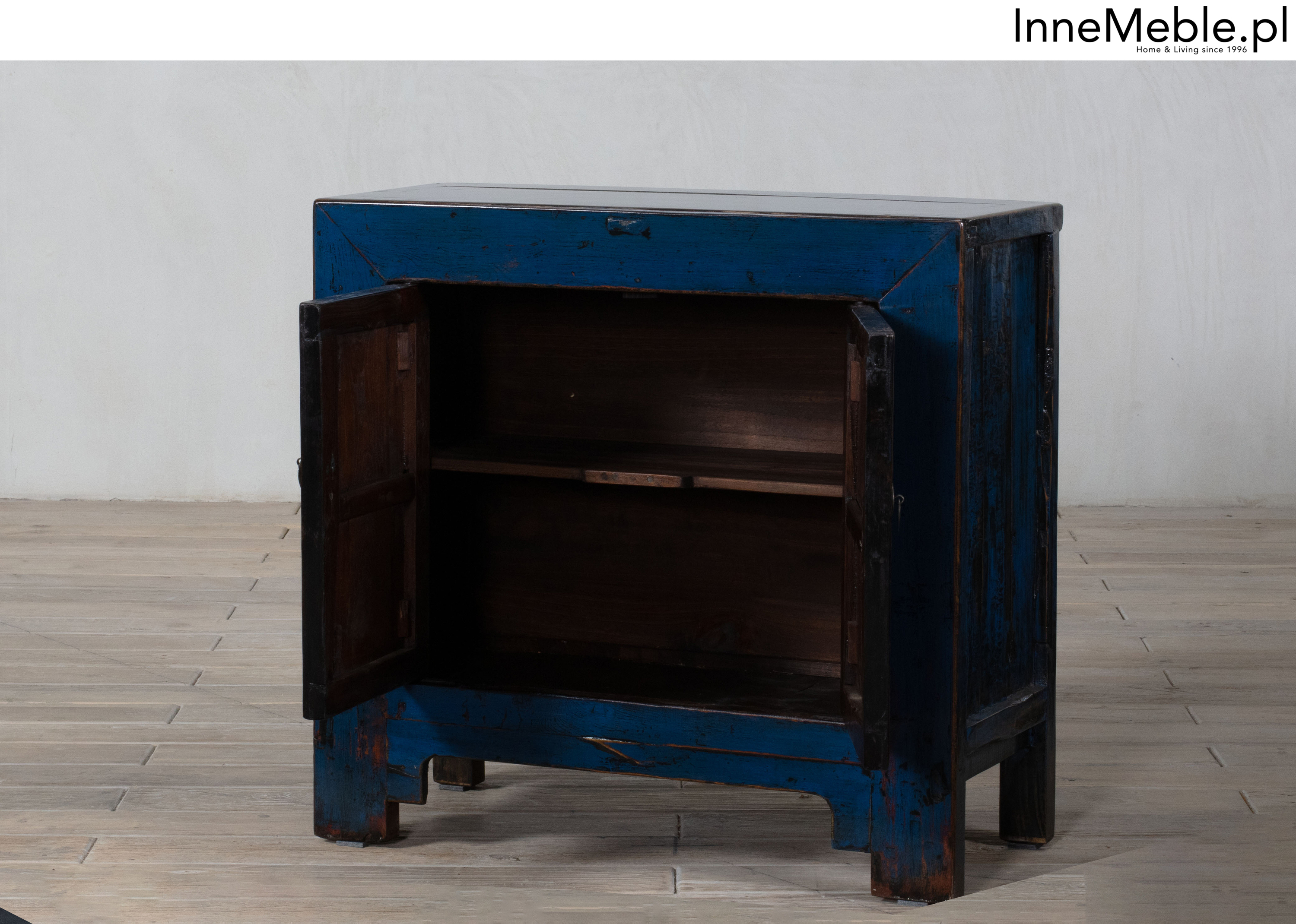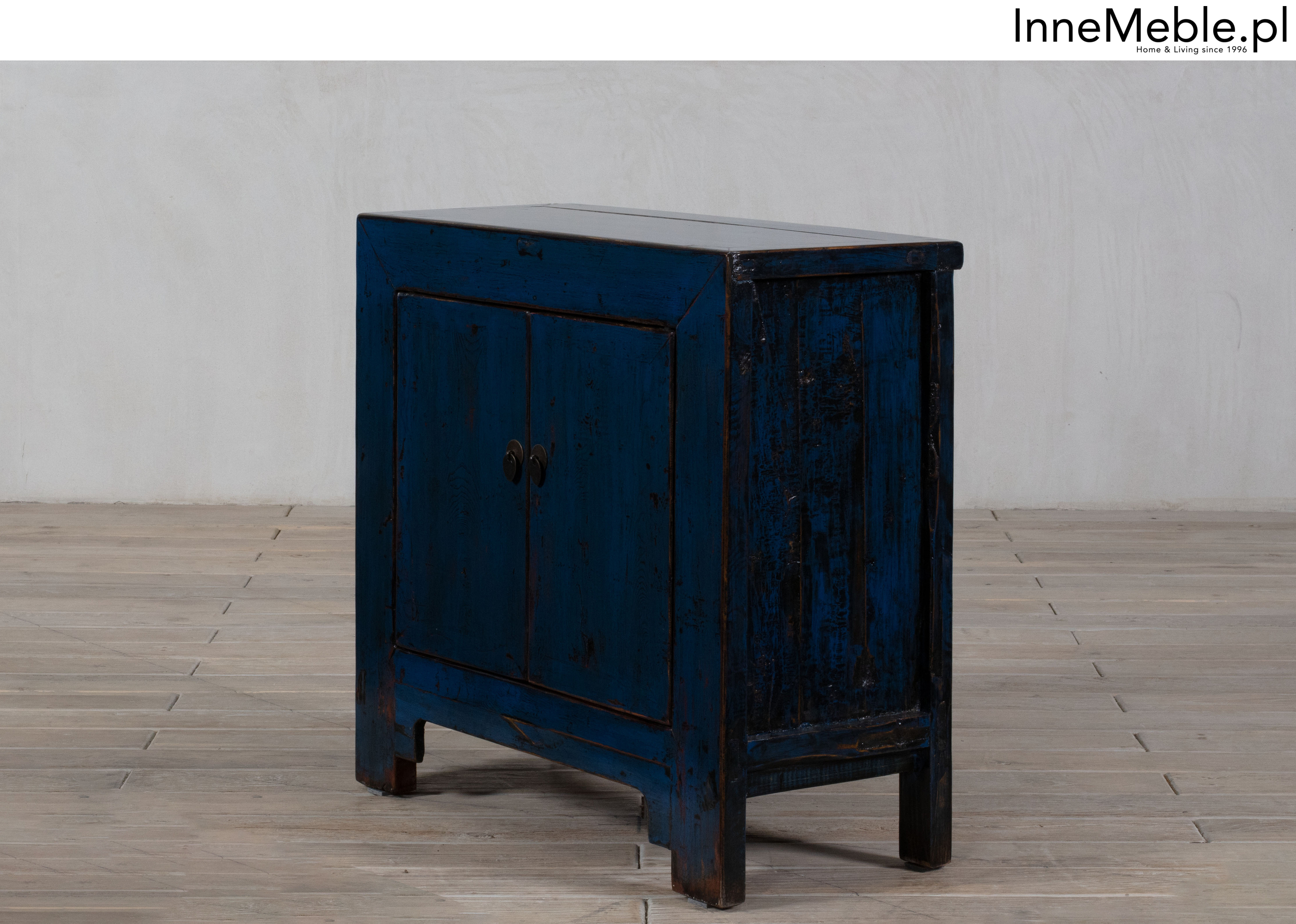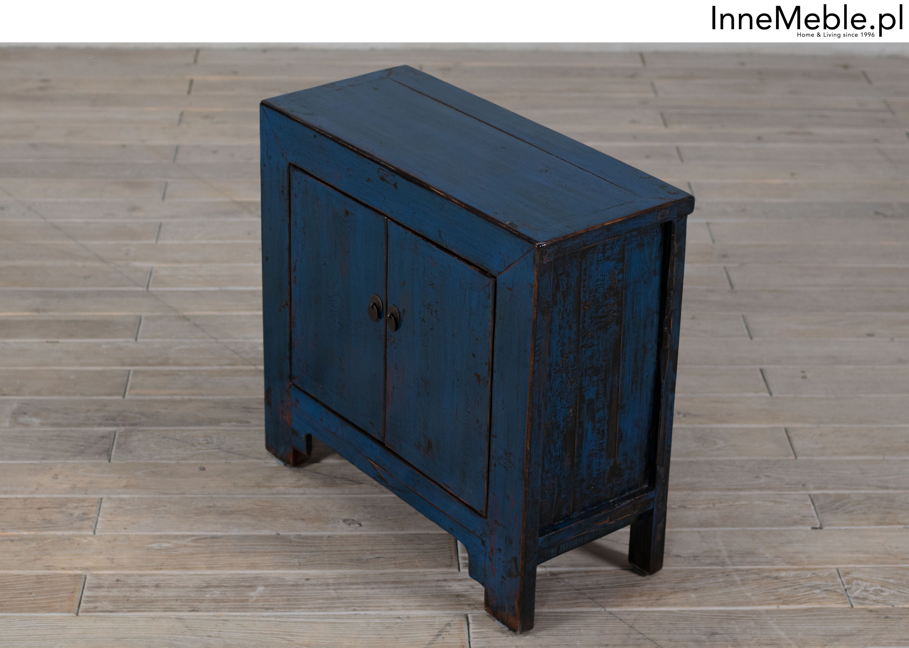 Niebieska szafka z drzwiami, mała komódka niebieski kolor