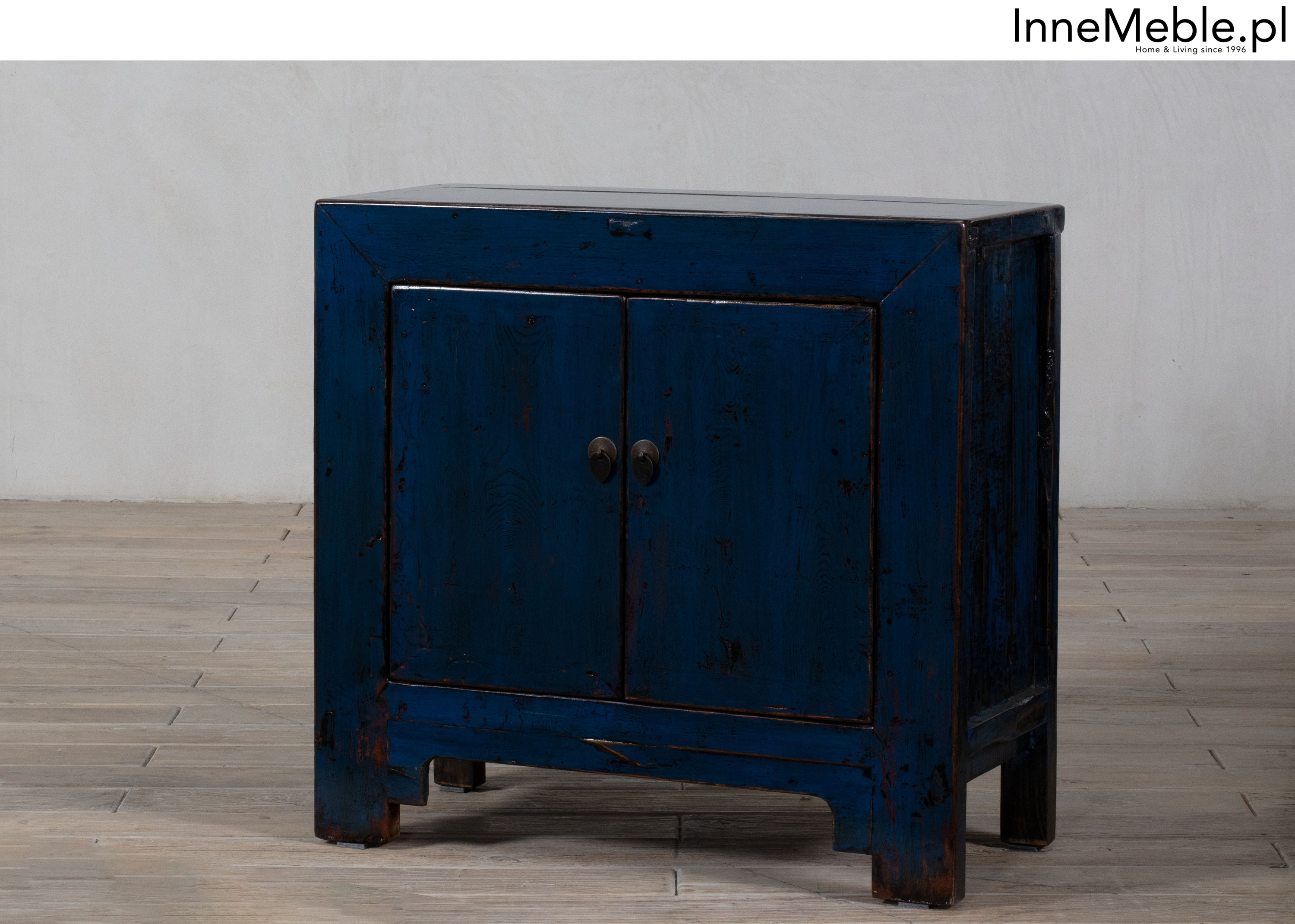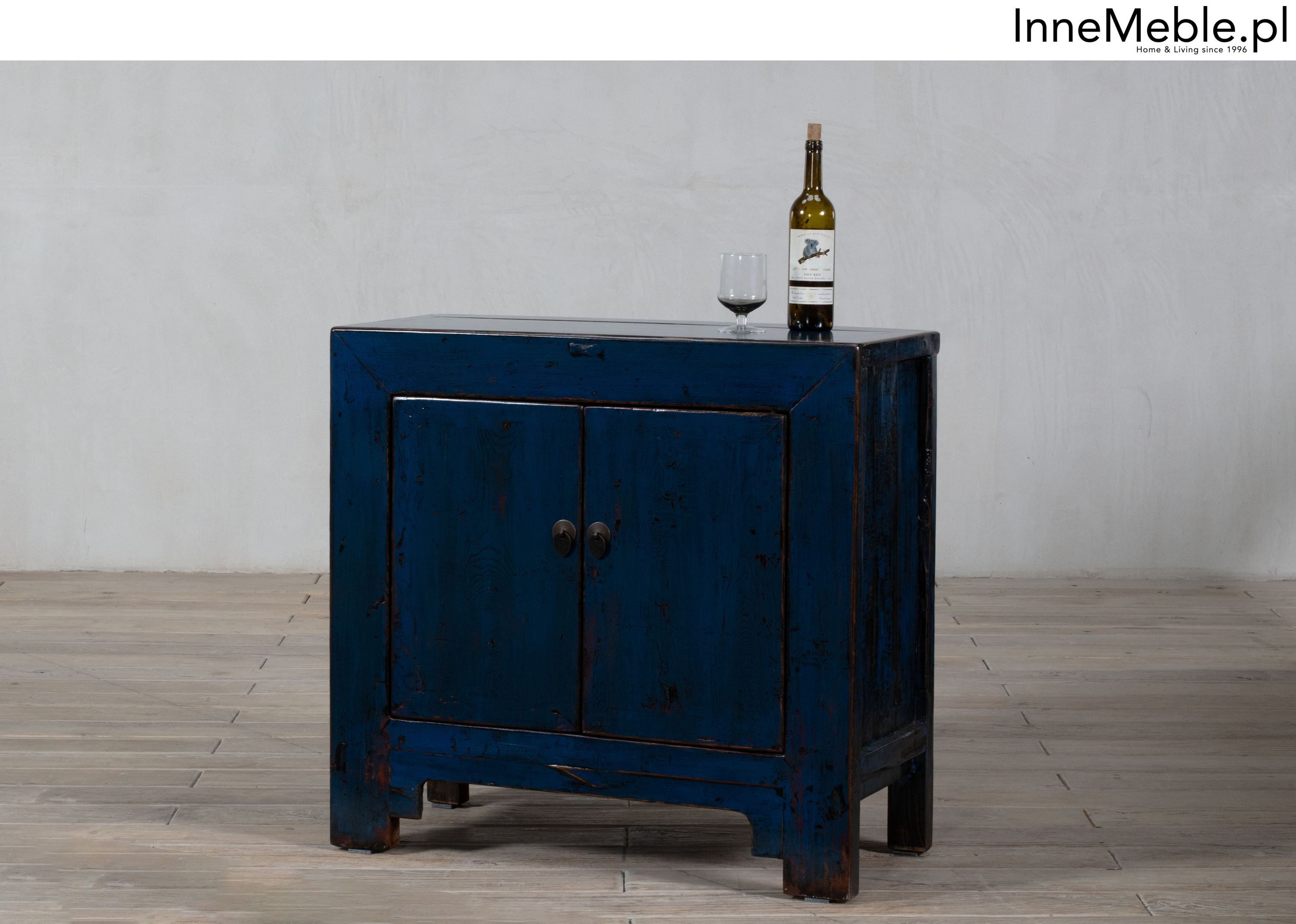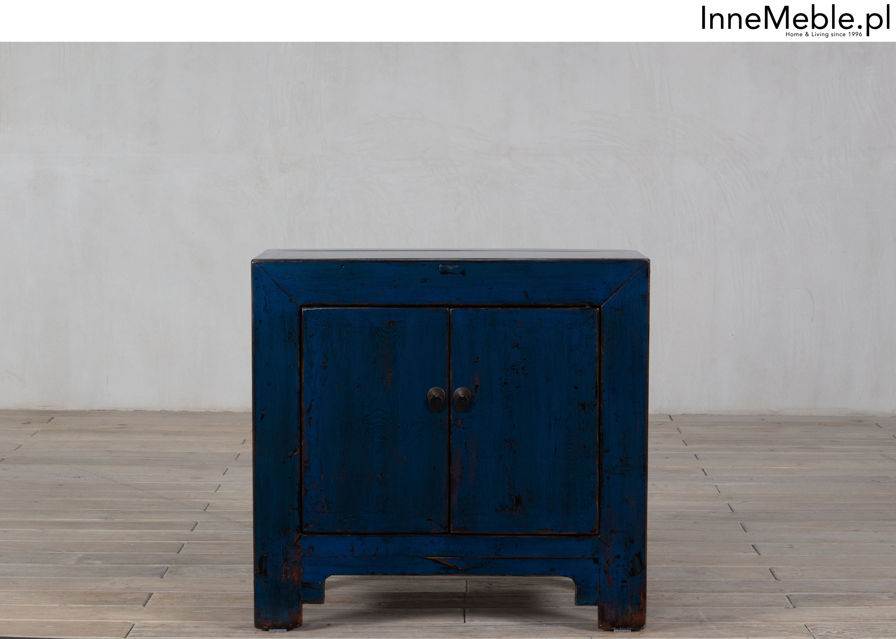 Niebieska szafka z drzwiami, mała komódka niebieski kolor