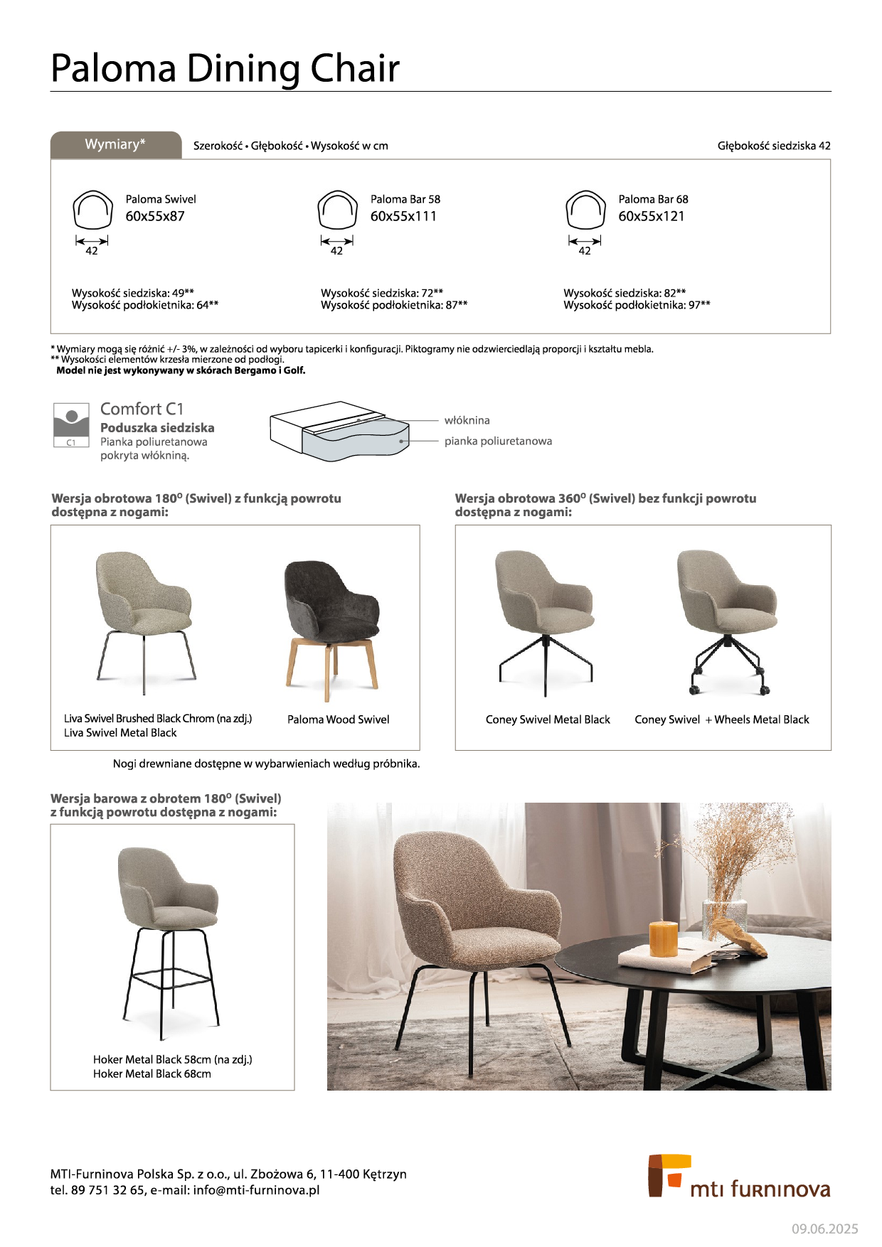 | 3 | PALOMA DINING CHAIR (obrotowe) | COMF_1 | - | - | - | 1483 zł | 1508 zł | 1560 zł | 1609 zł | 1635 zł | 1980 zł | 2127 zł | 2383 zł | 2617 zł |