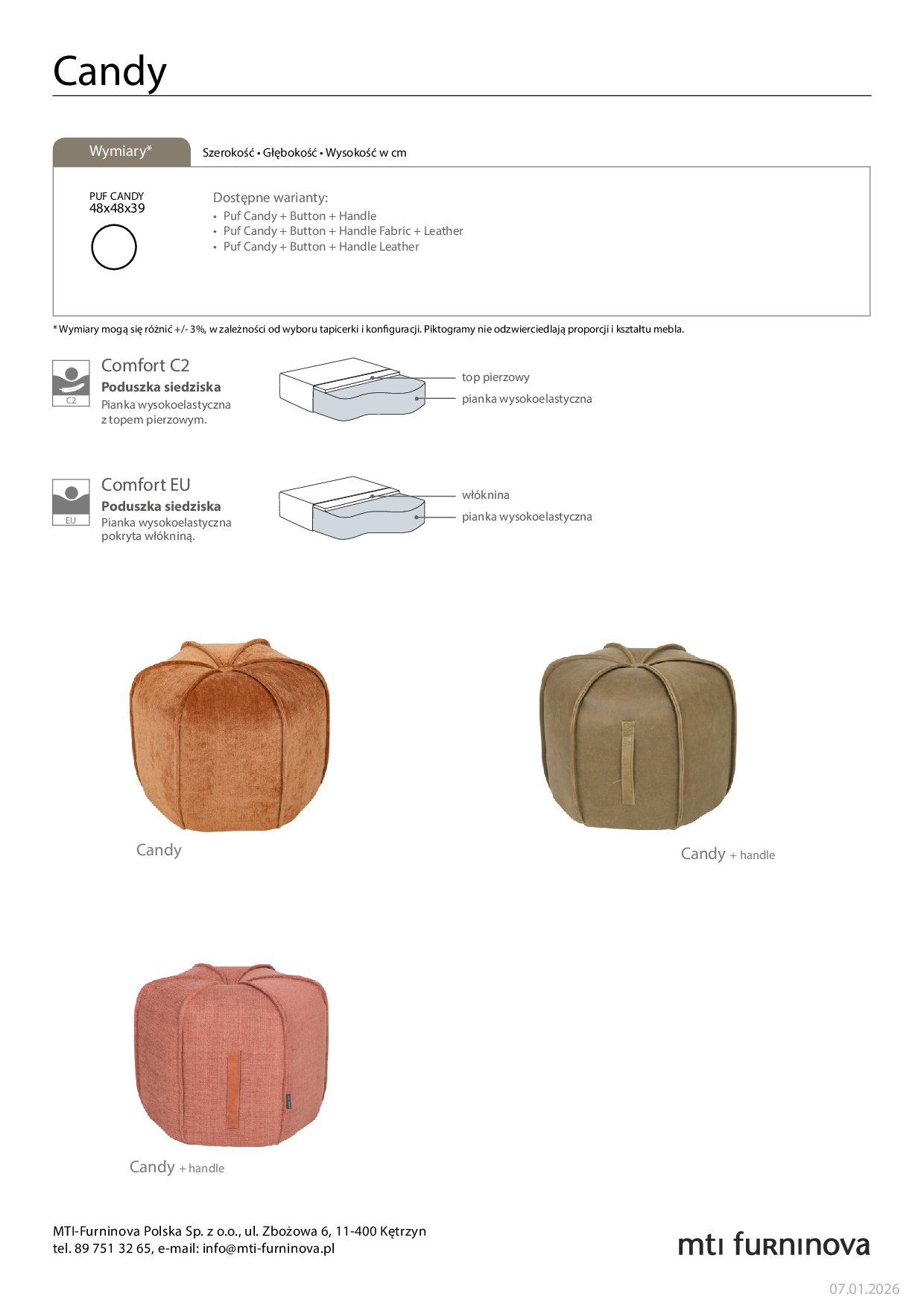Cena dotyczy pufa w tkaninie gr. A i wypełnieniem STANDARD