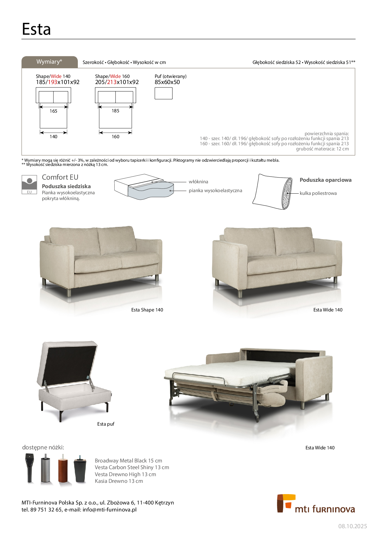 | 1 | ESTA 140 (boki Shape i Wide) | COMF_EU | - | - | - | 6437 zł | 6724 zł | 7068 zł | 7412 zł | 7642 zł | - | - | - | - |
