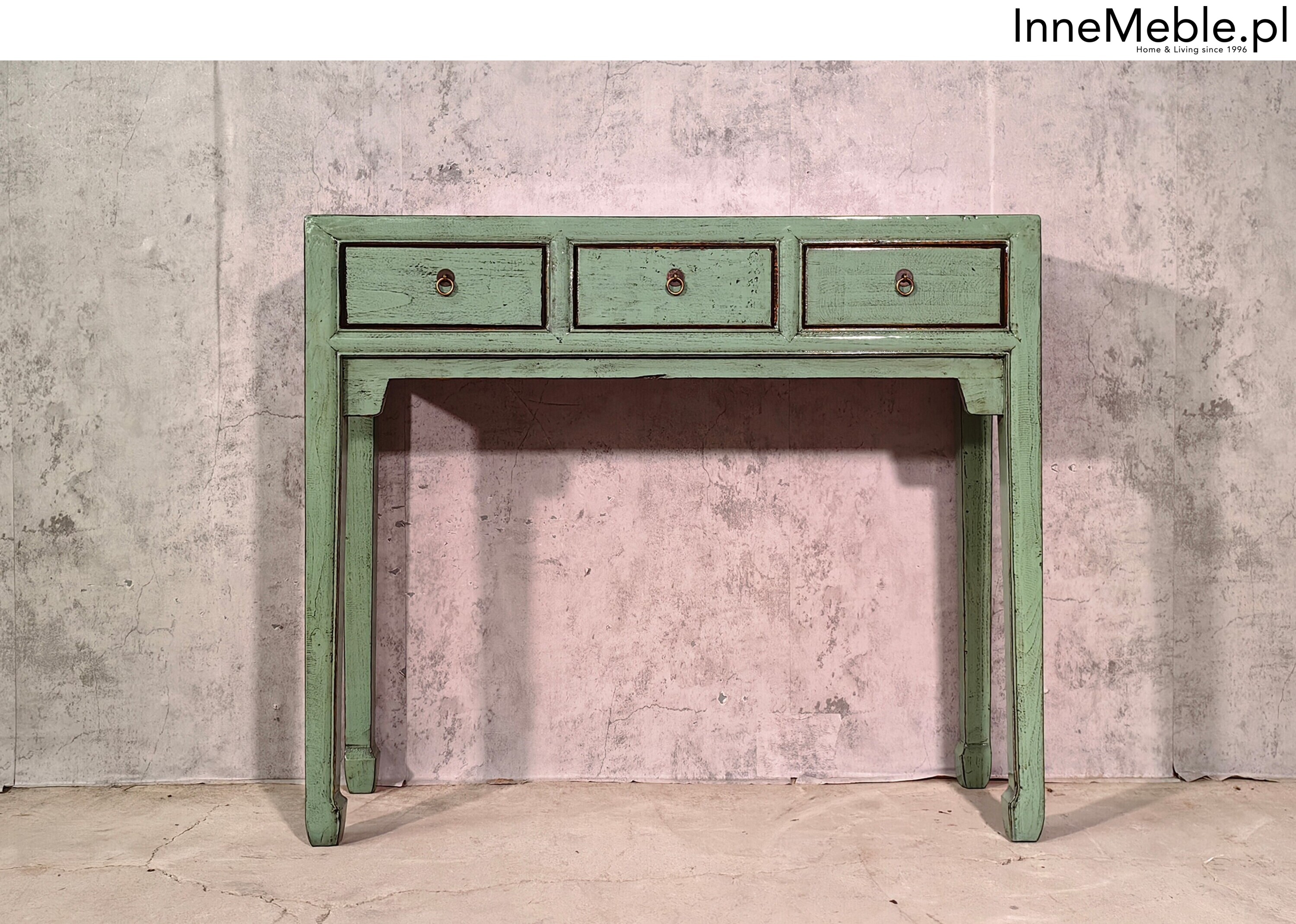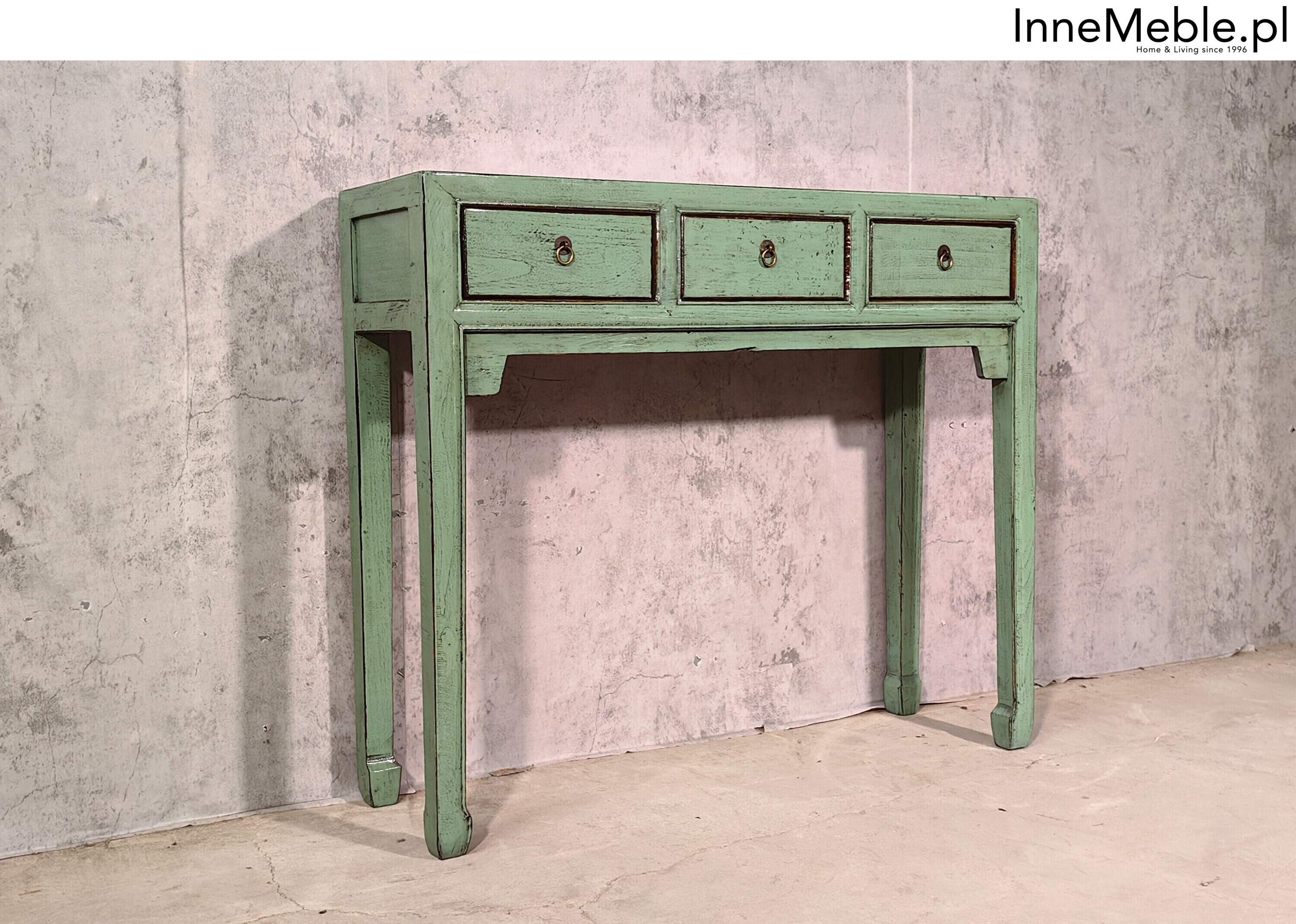 Zielona konsolka, konsola 100cm, wąskie meble zielone drewniane