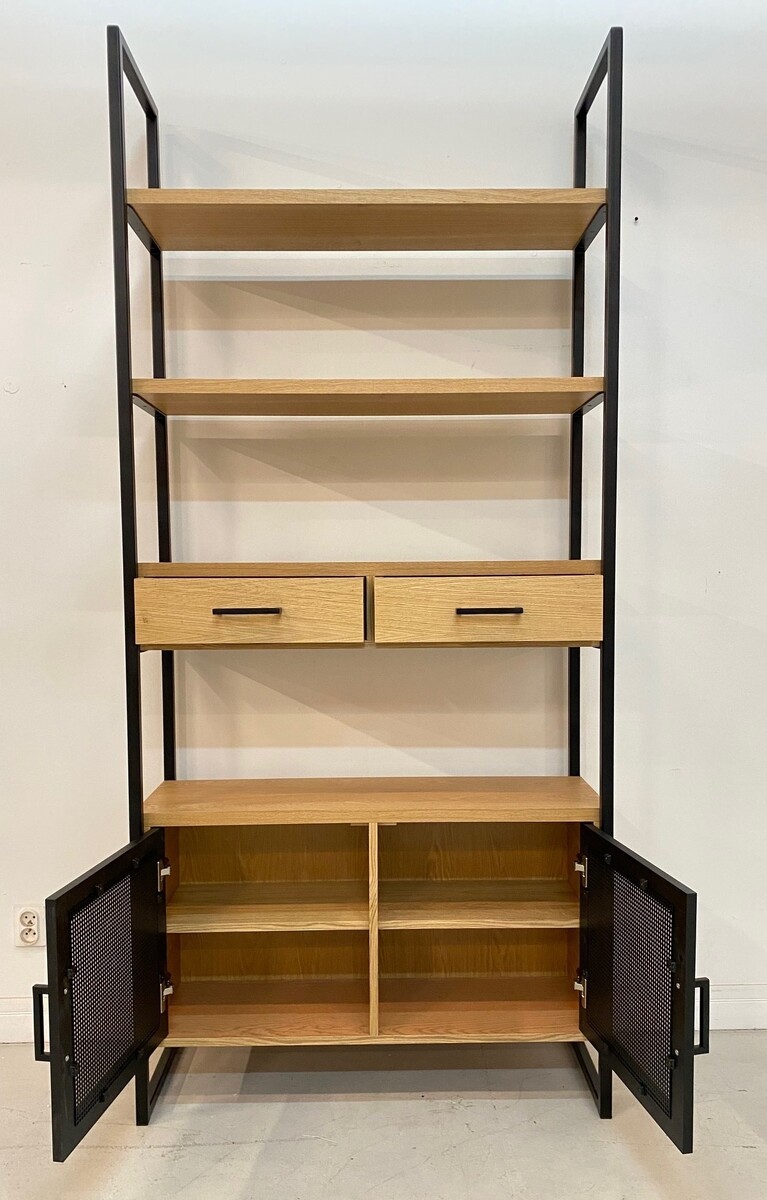 Cena w wersji : półki fornir dąb naturalny/stal kolor czarny