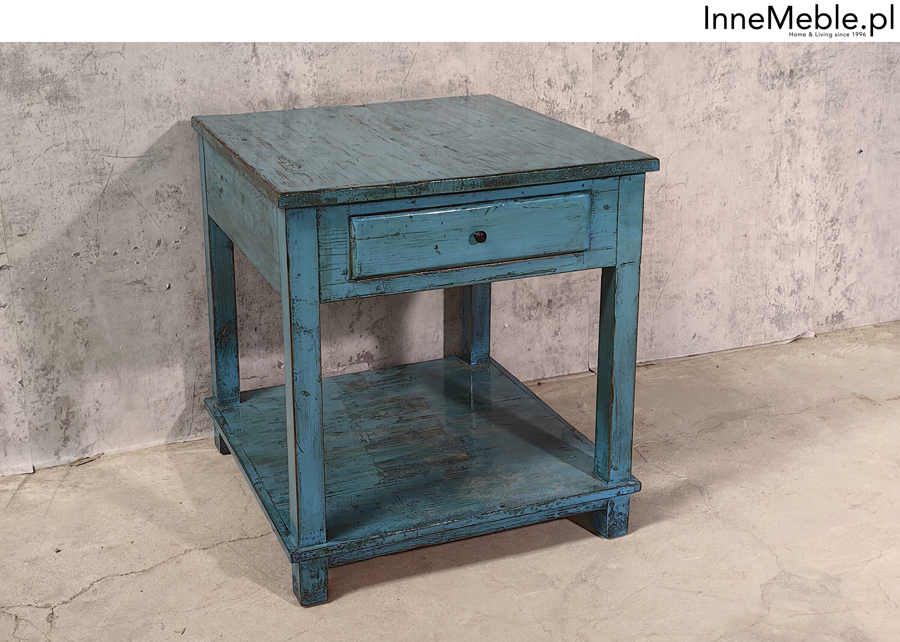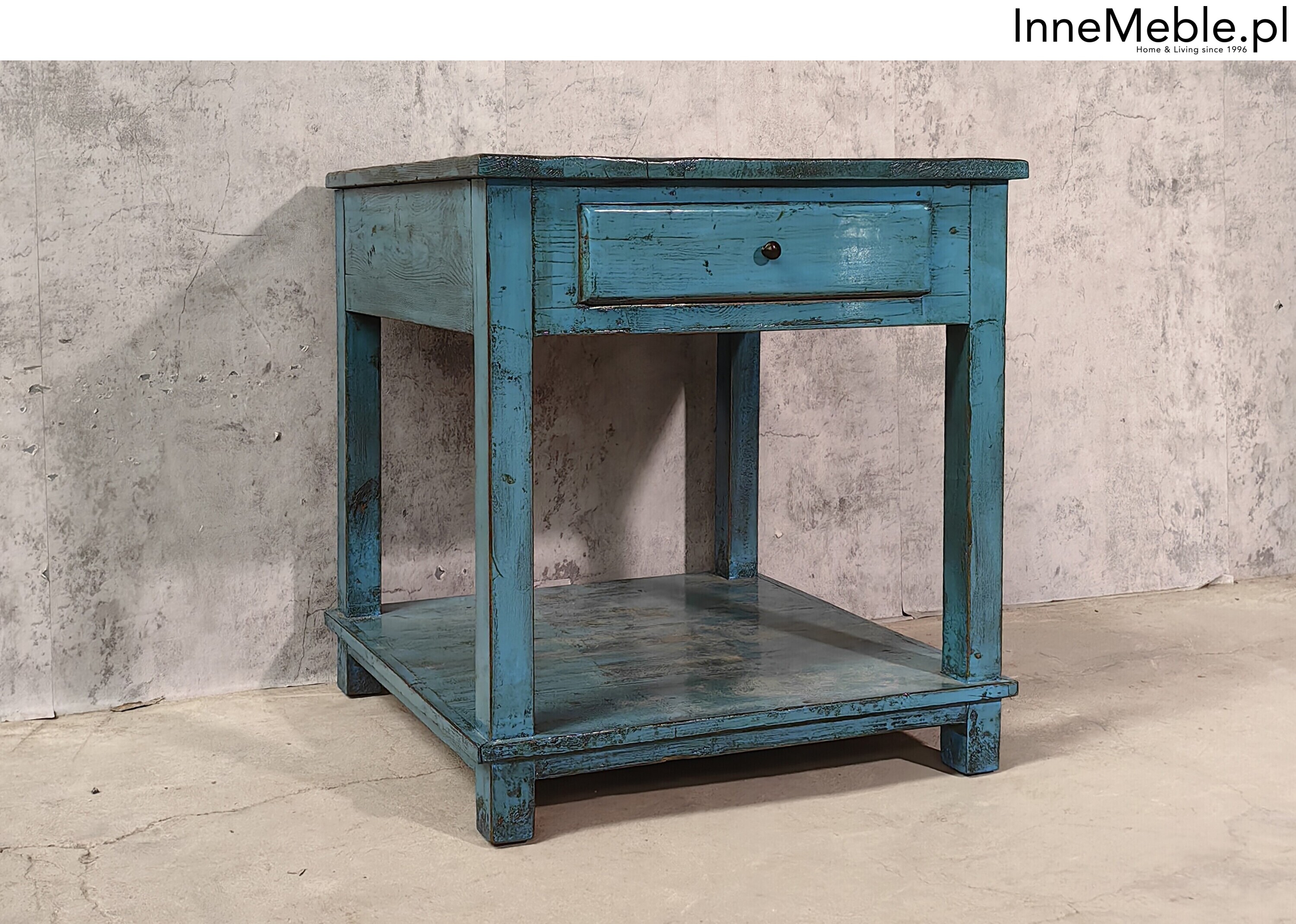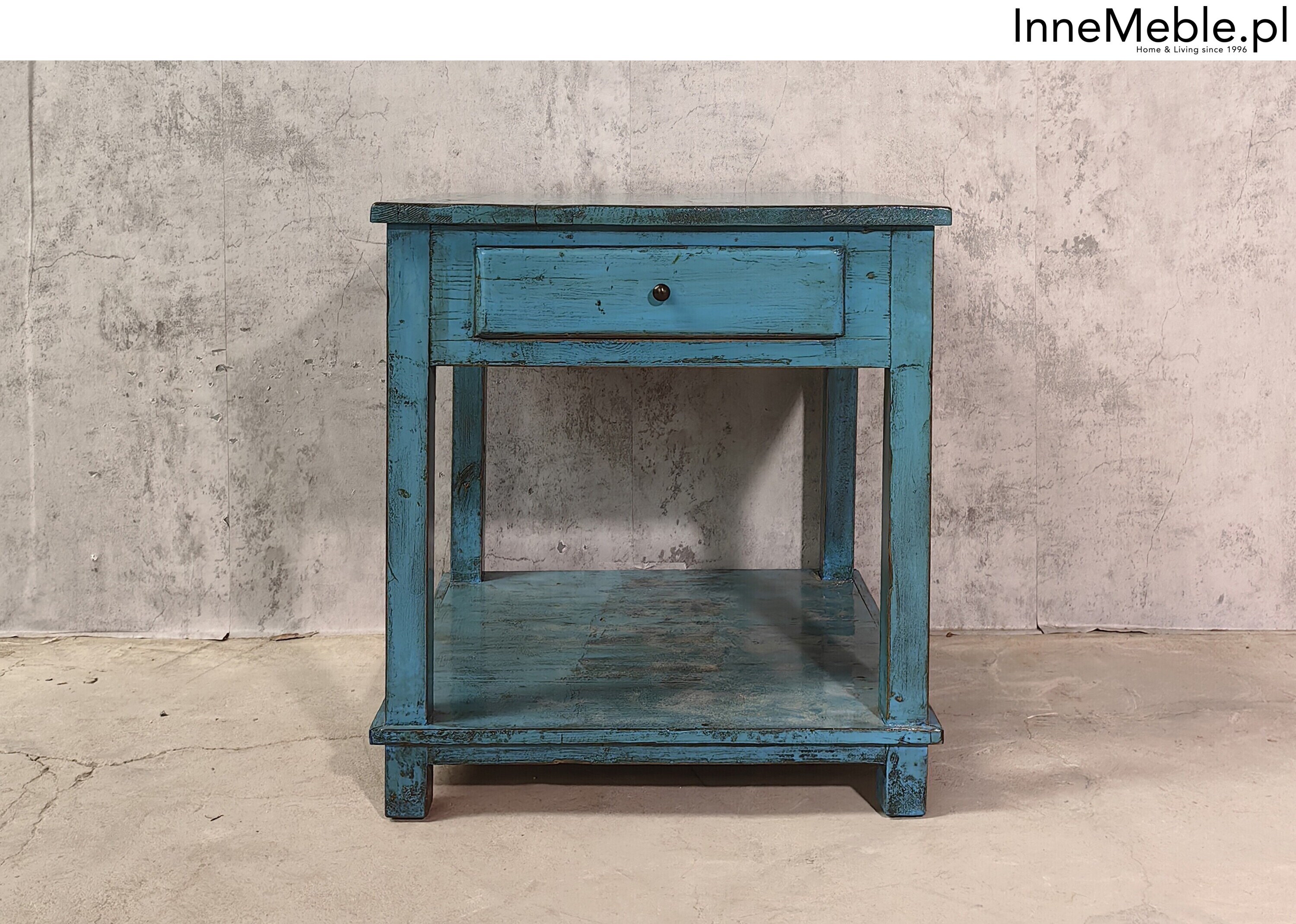 Błękitny stolik z szufladą, szafka nocna niebieska z sufladą
