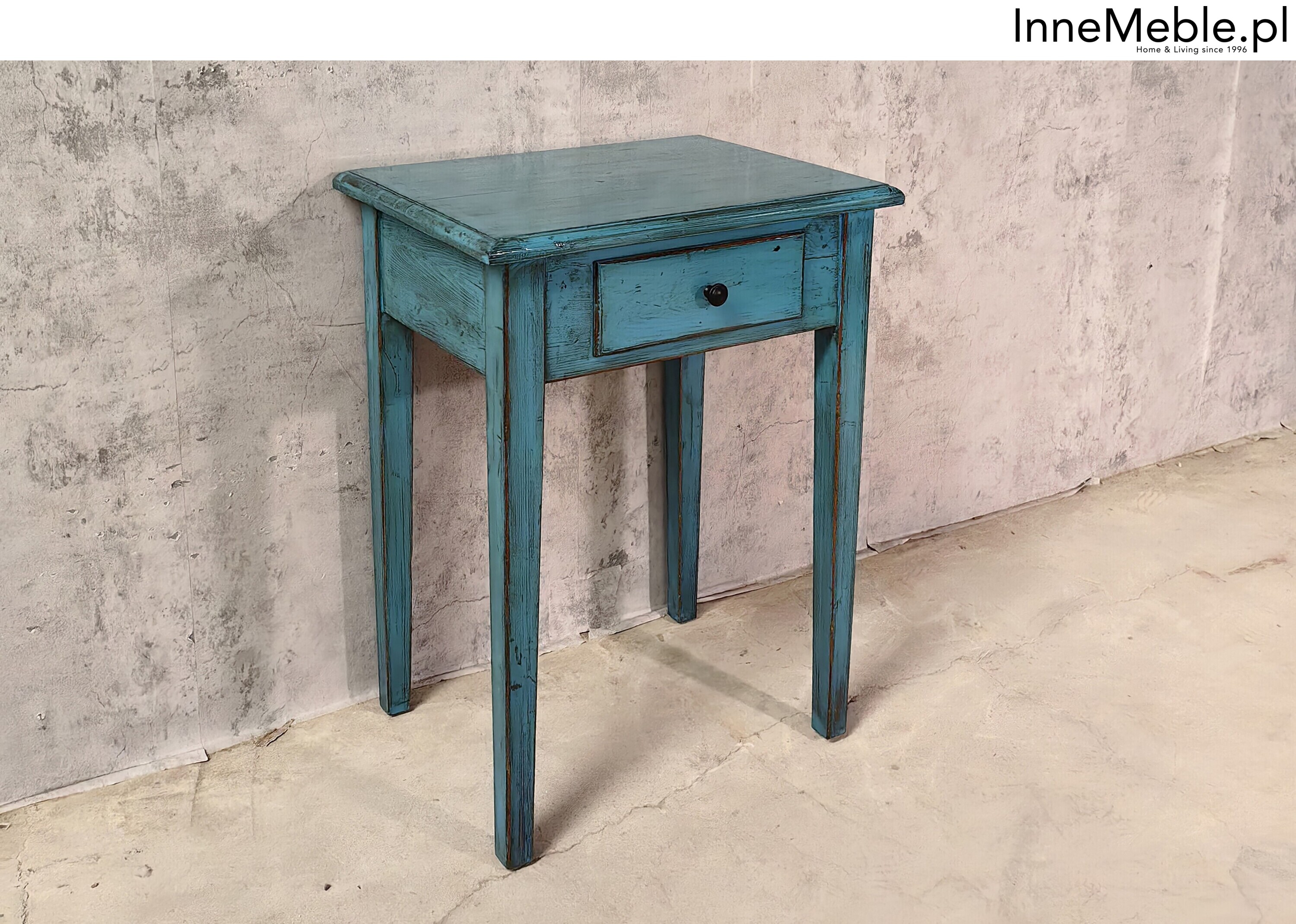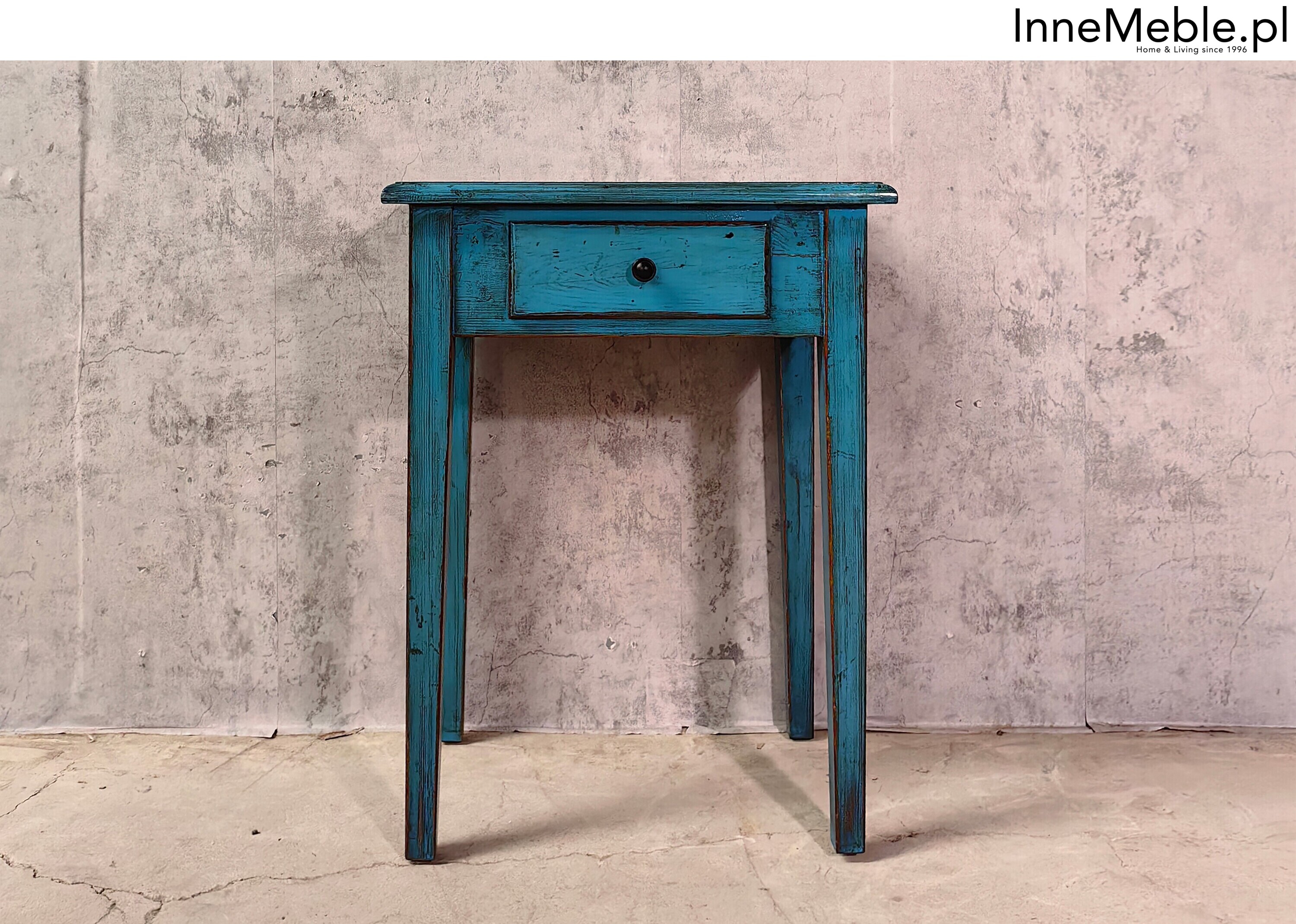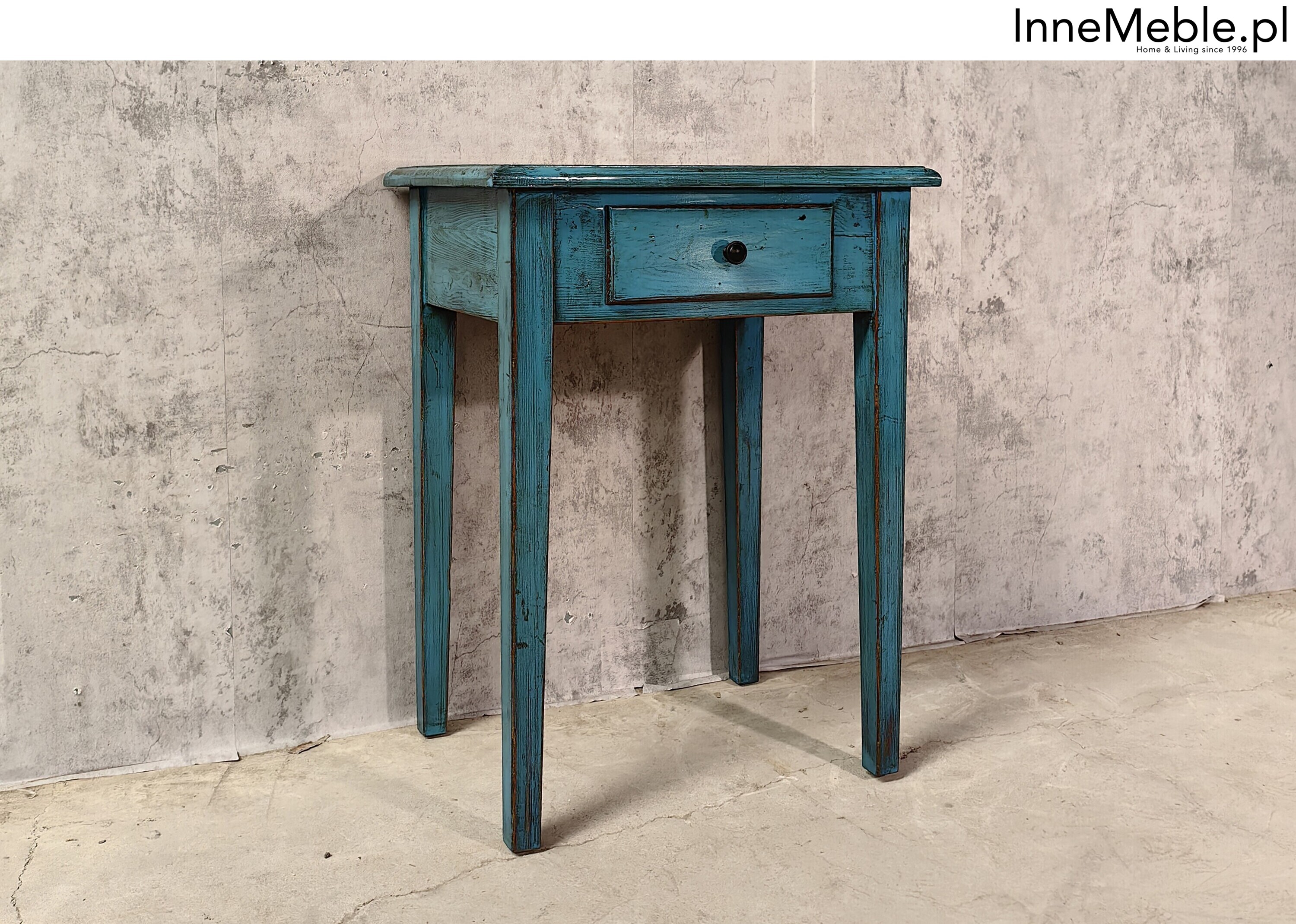 Błękitny stolik z szufladą, szafka nocna niebieska z sufladą