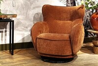 Bujano-obrotowy fotel w szenilowej tkaninie o wyrazistym kolorze. Stylowy mebel z wysokim oparciem. Fotel Sonora od polskiej marki MTI Furninova. Mebel na zamówienie, dostępny w salonie Inne Meble w Katowicach.