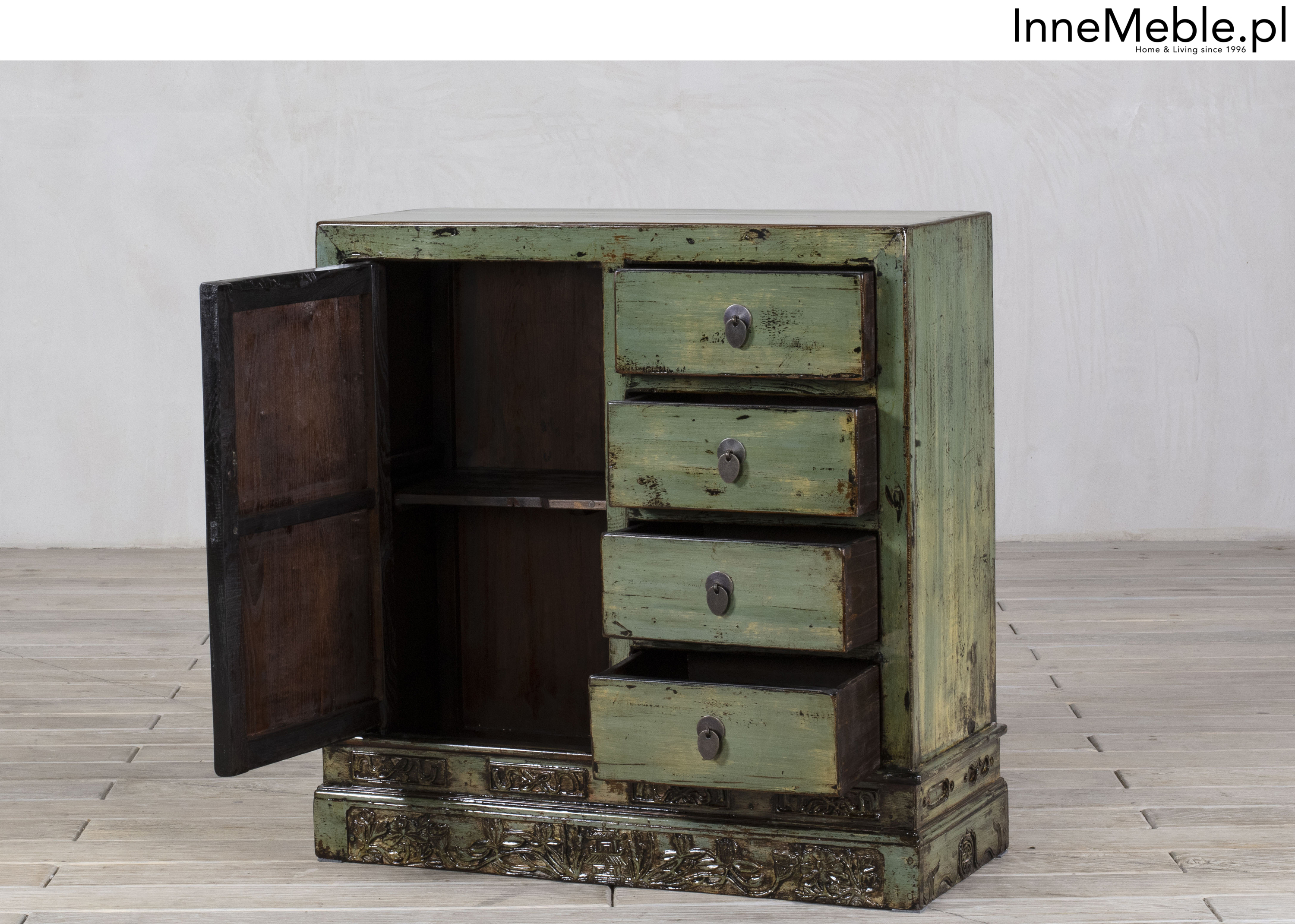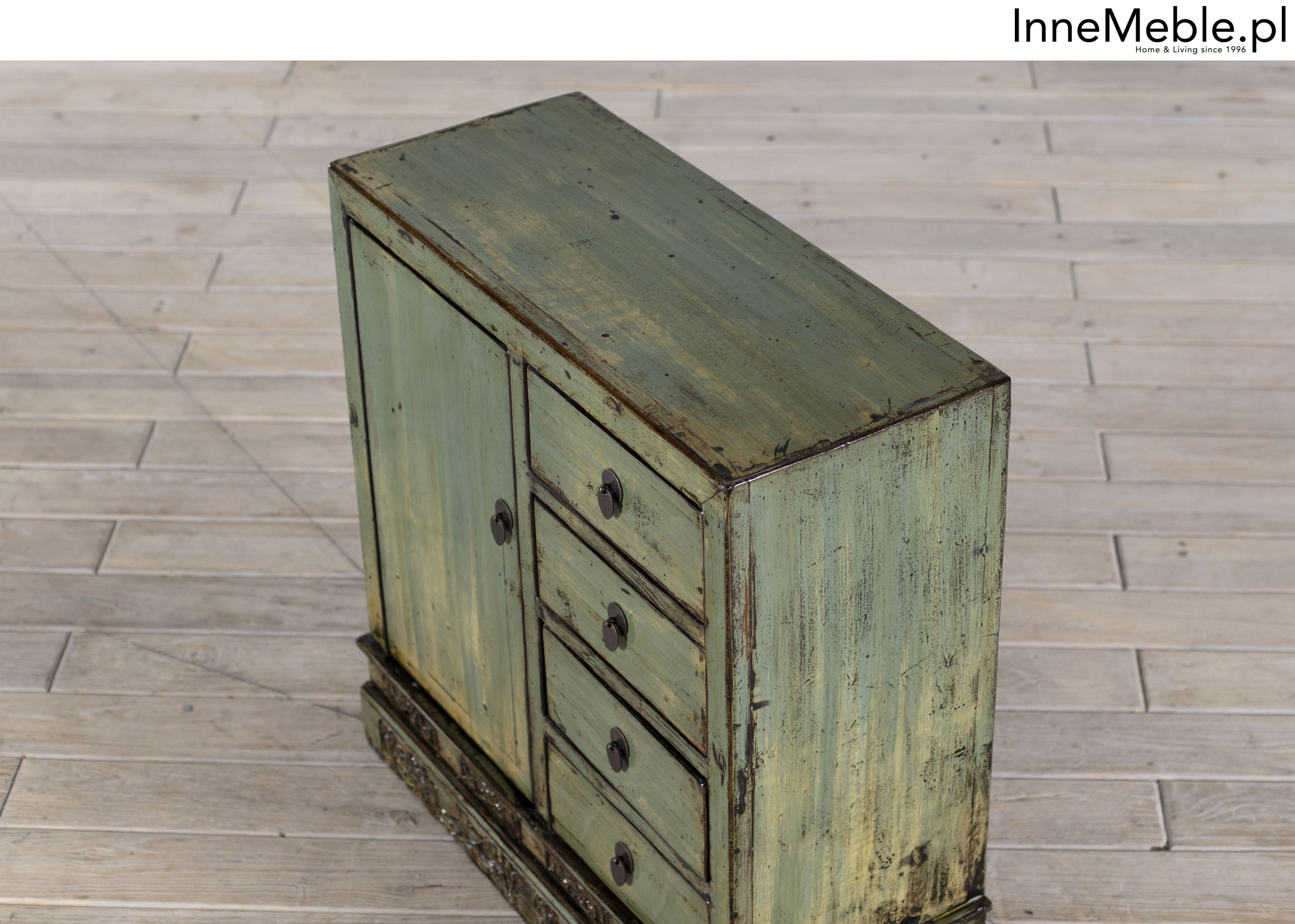 Dekoracyjna szafka z drewna pastelowy zielony kolor, 4 szuflady