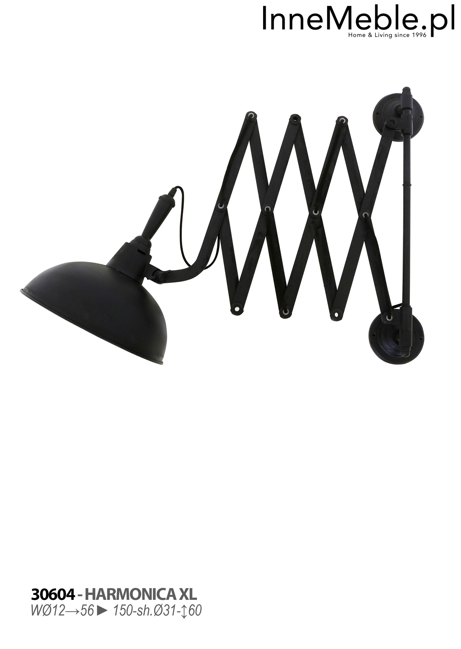 | 2 | Harmonica XL | 30604 | czarny postarzany | Antique black | kinkiety | WØ12→56►150-sh.Ø31-↕60 | E27 | 40 | 10 | 64x23x72 |