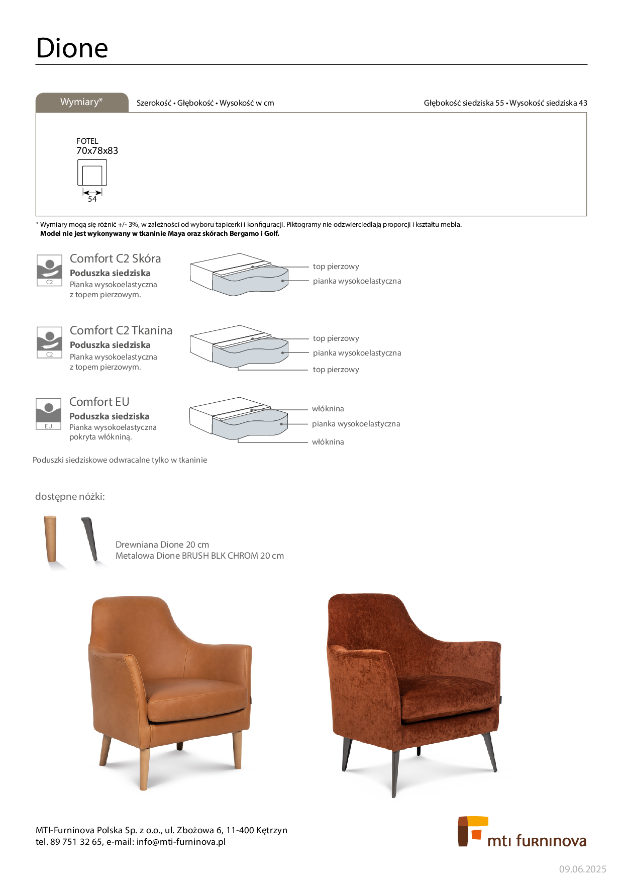 Cena fotela 1,5 w tkaninie z gr. A i wypełnieniem poduszek Comf EU