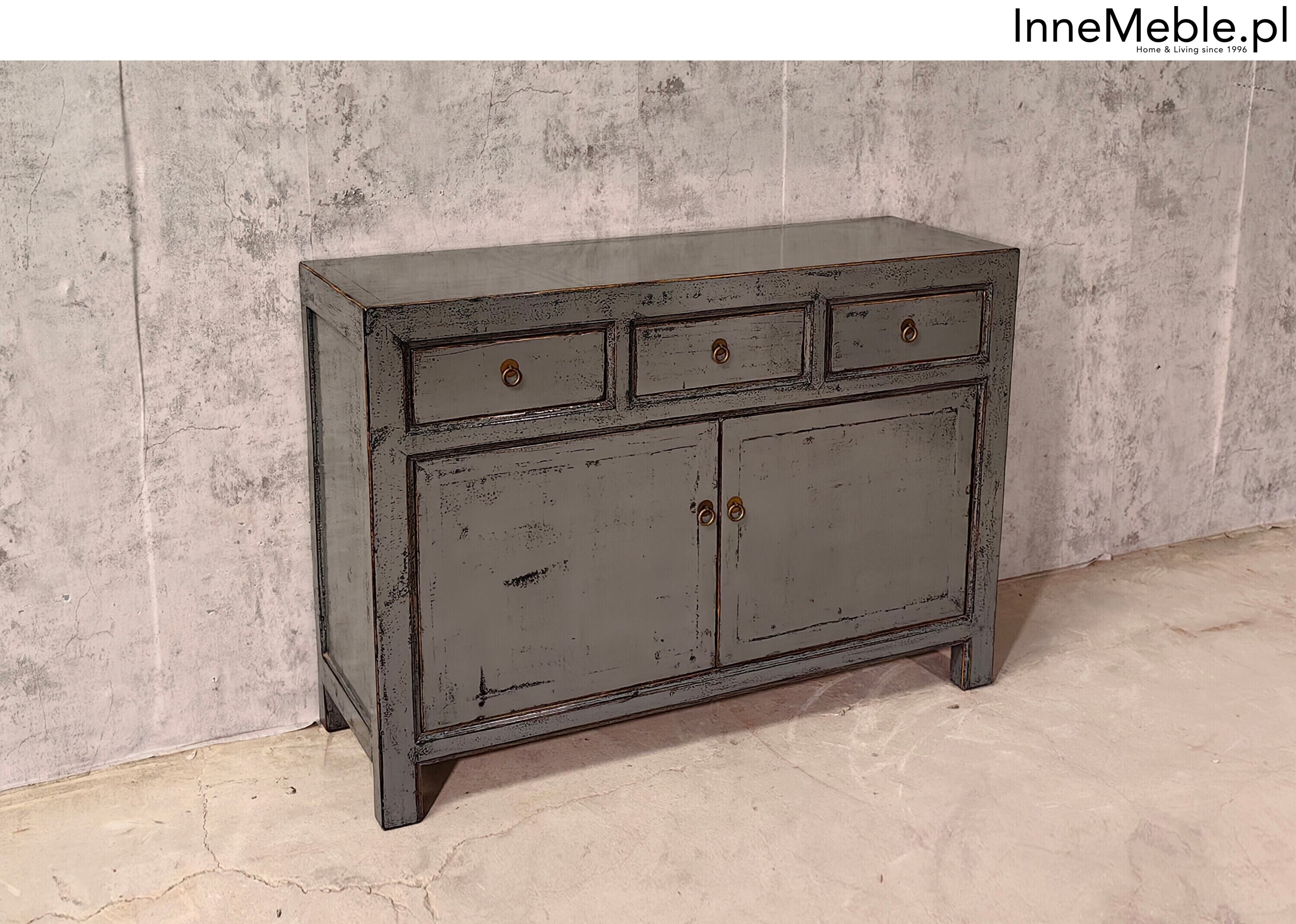 Komoda z szufladami 120cm, szara szafka z drewna, drewniana szara komoda