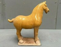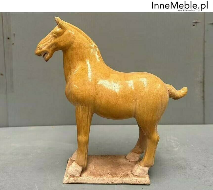 Koń figurka z żółtej glazurowanej terakoty