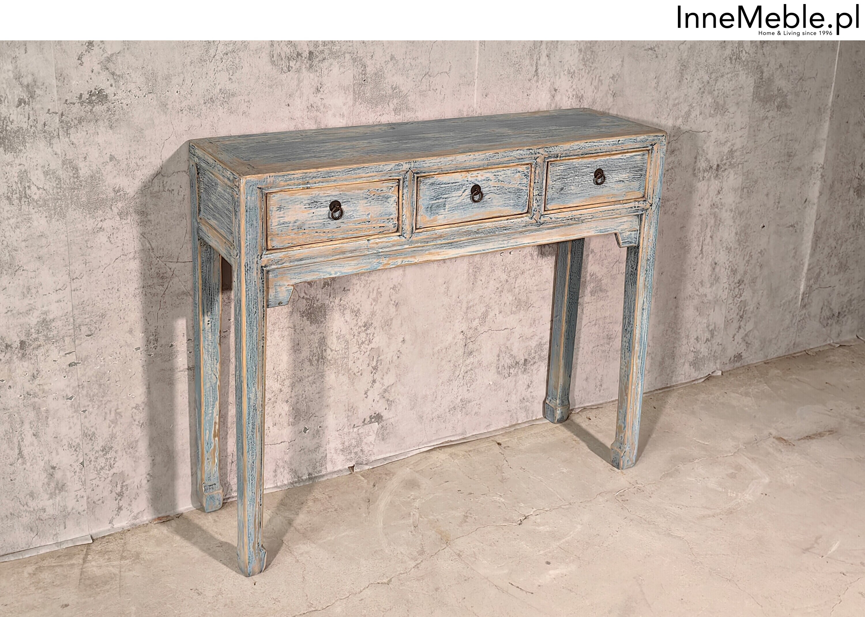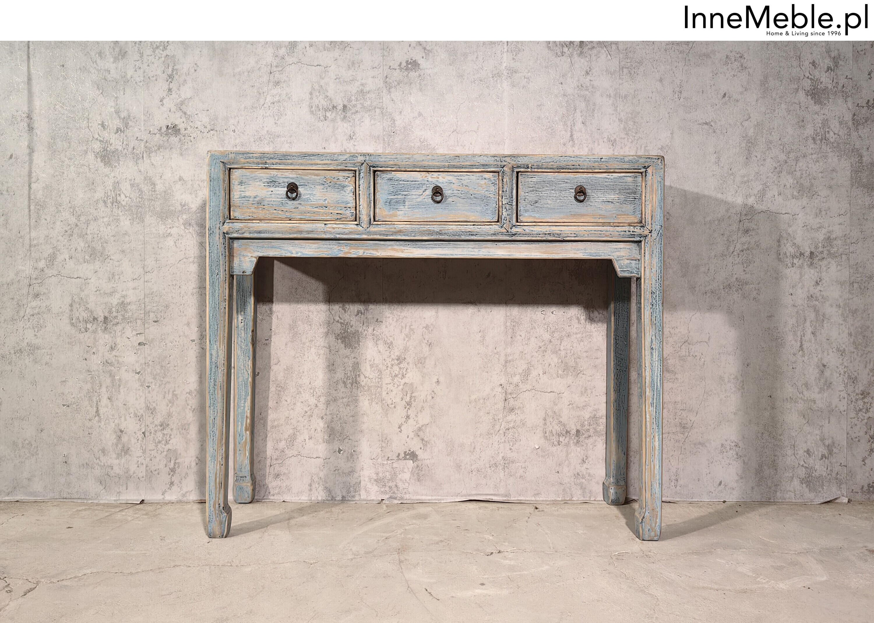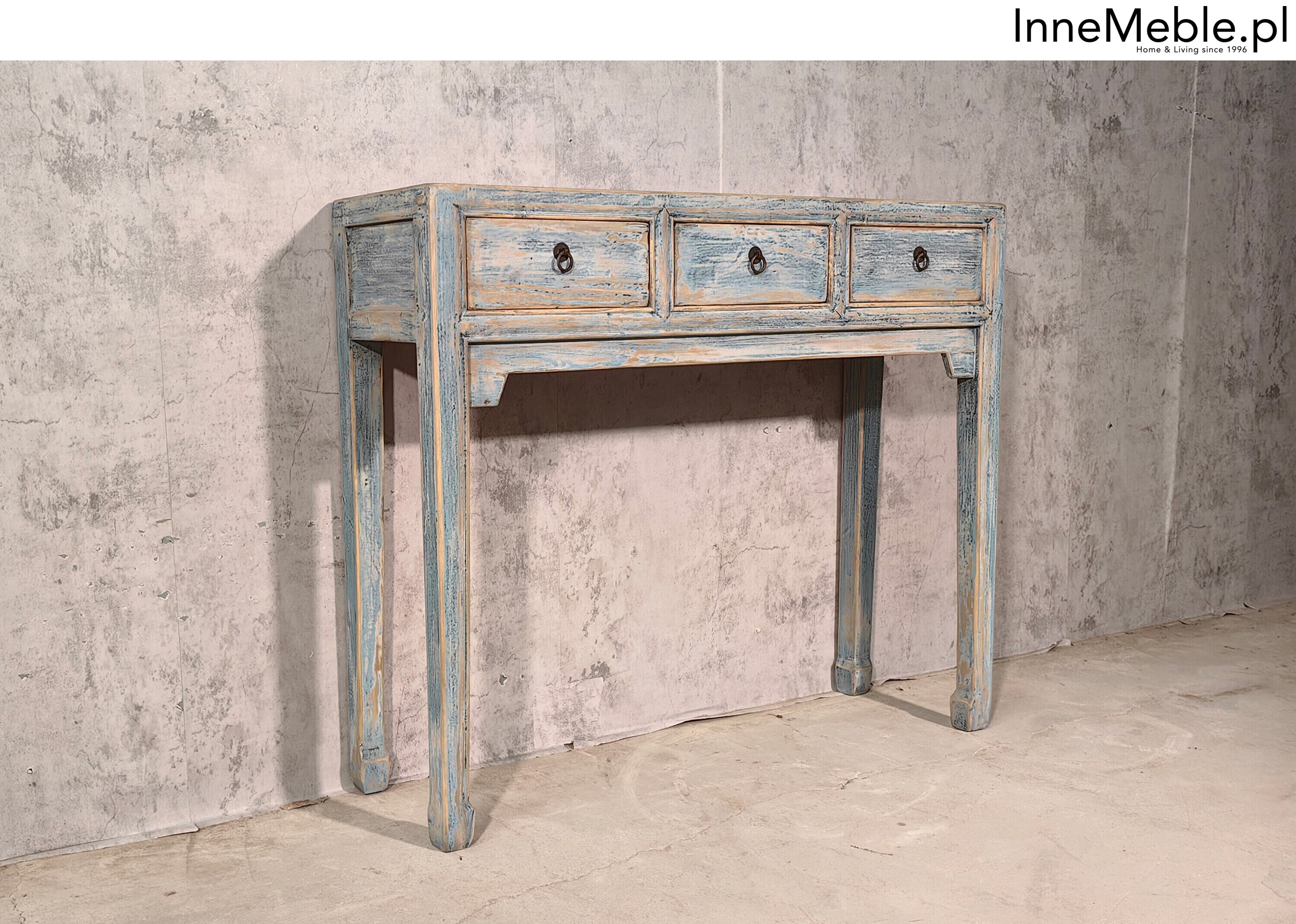 Konsolka 100cm niebieska 3 szuflady, drewniana konsolka