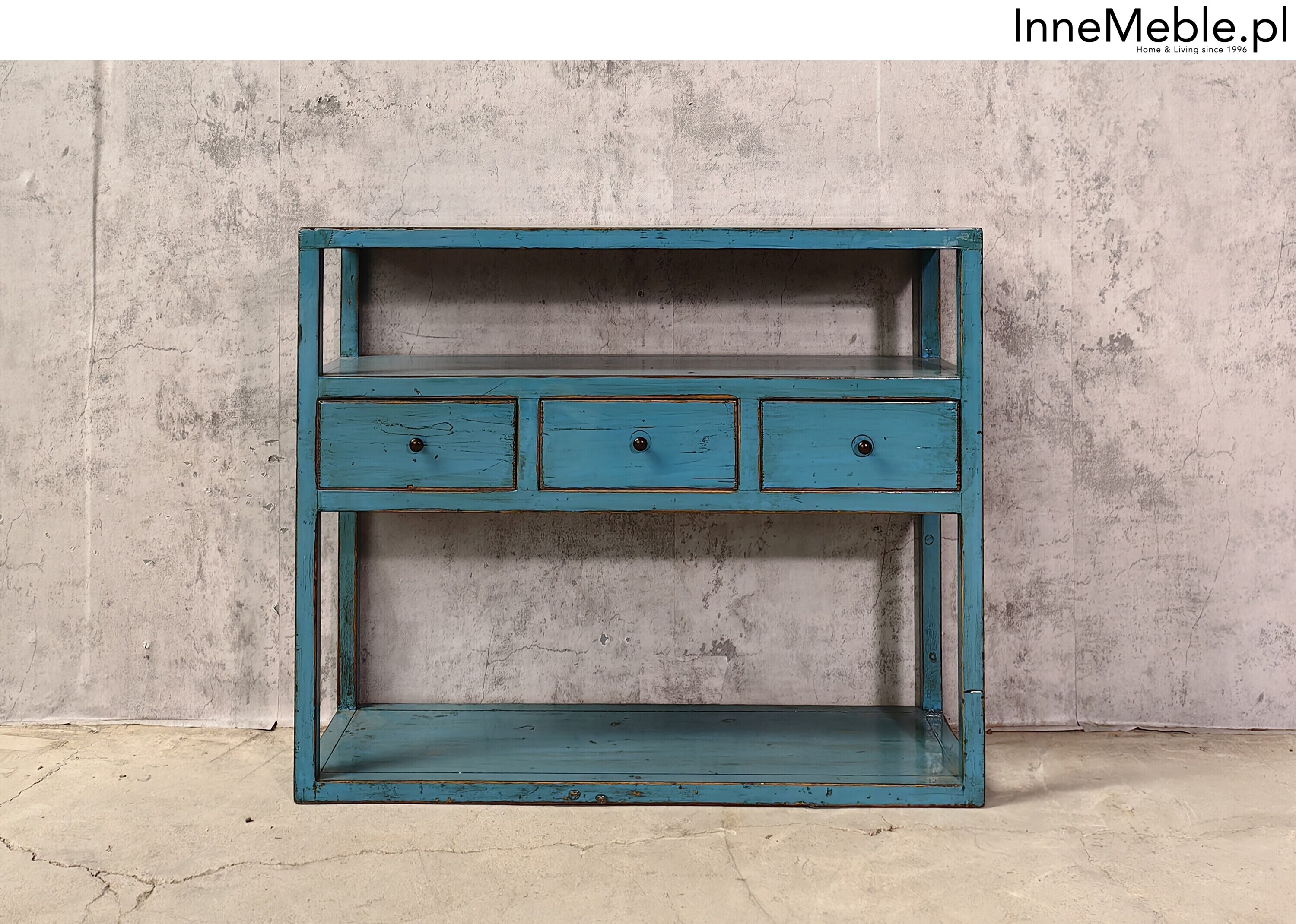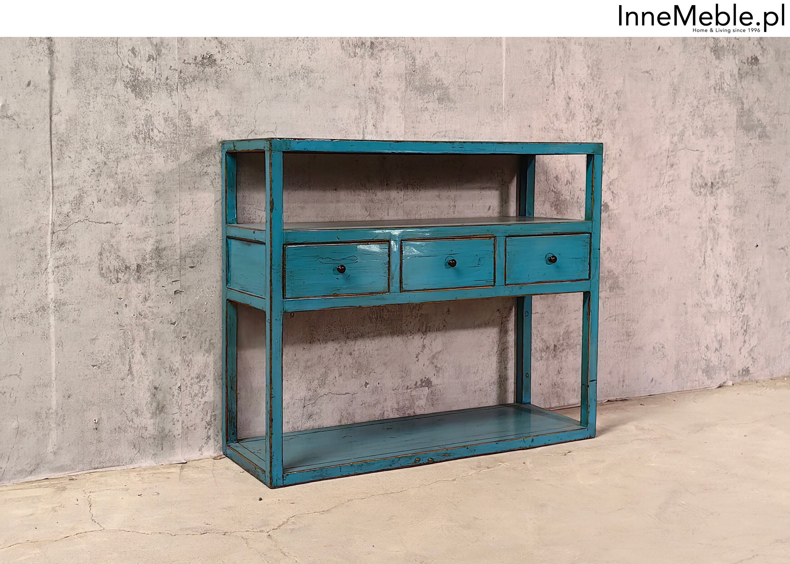 Konsolka 3 szuflady niebieska 90cm, oryginalna szafka wąska