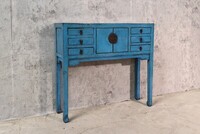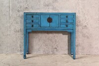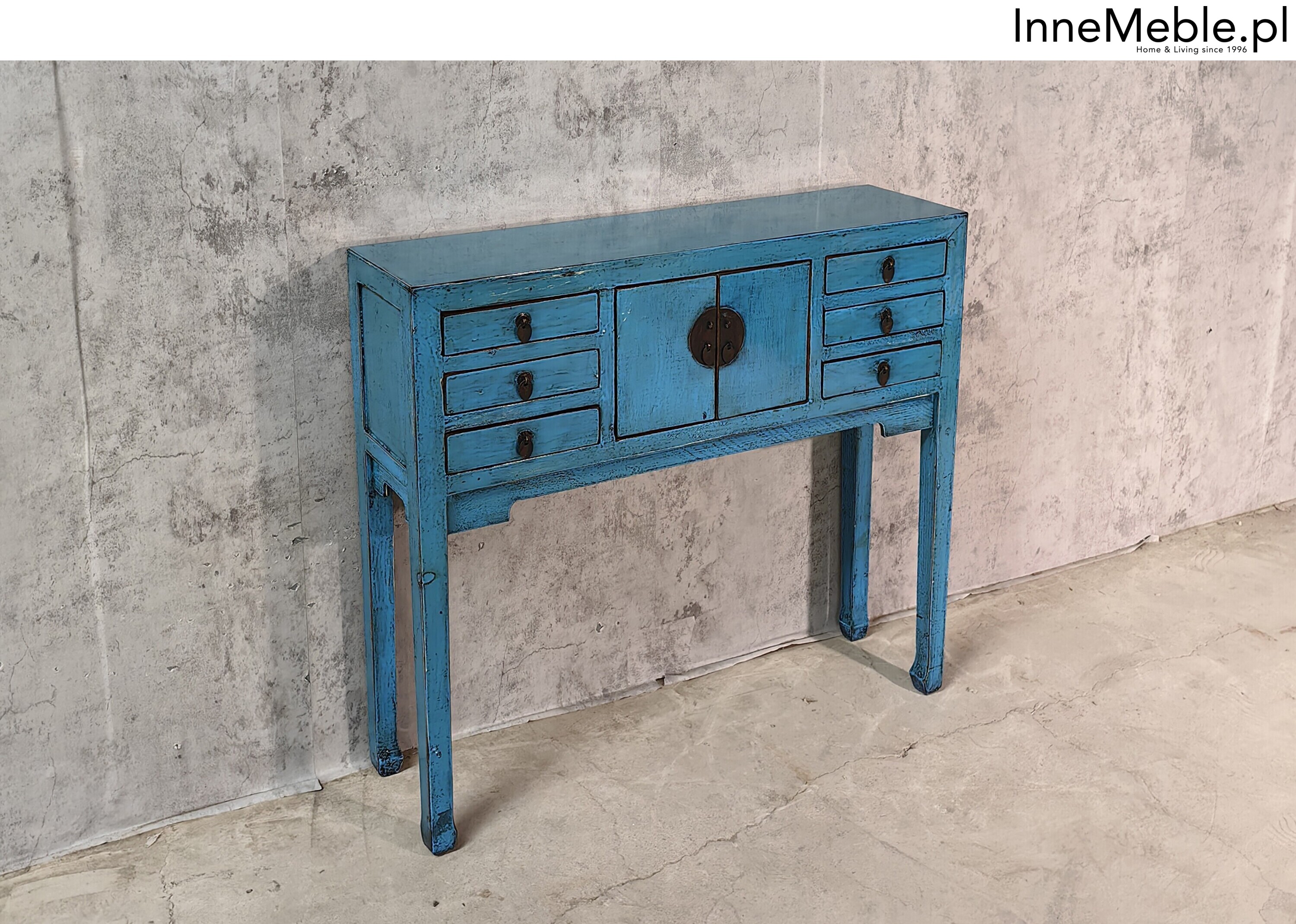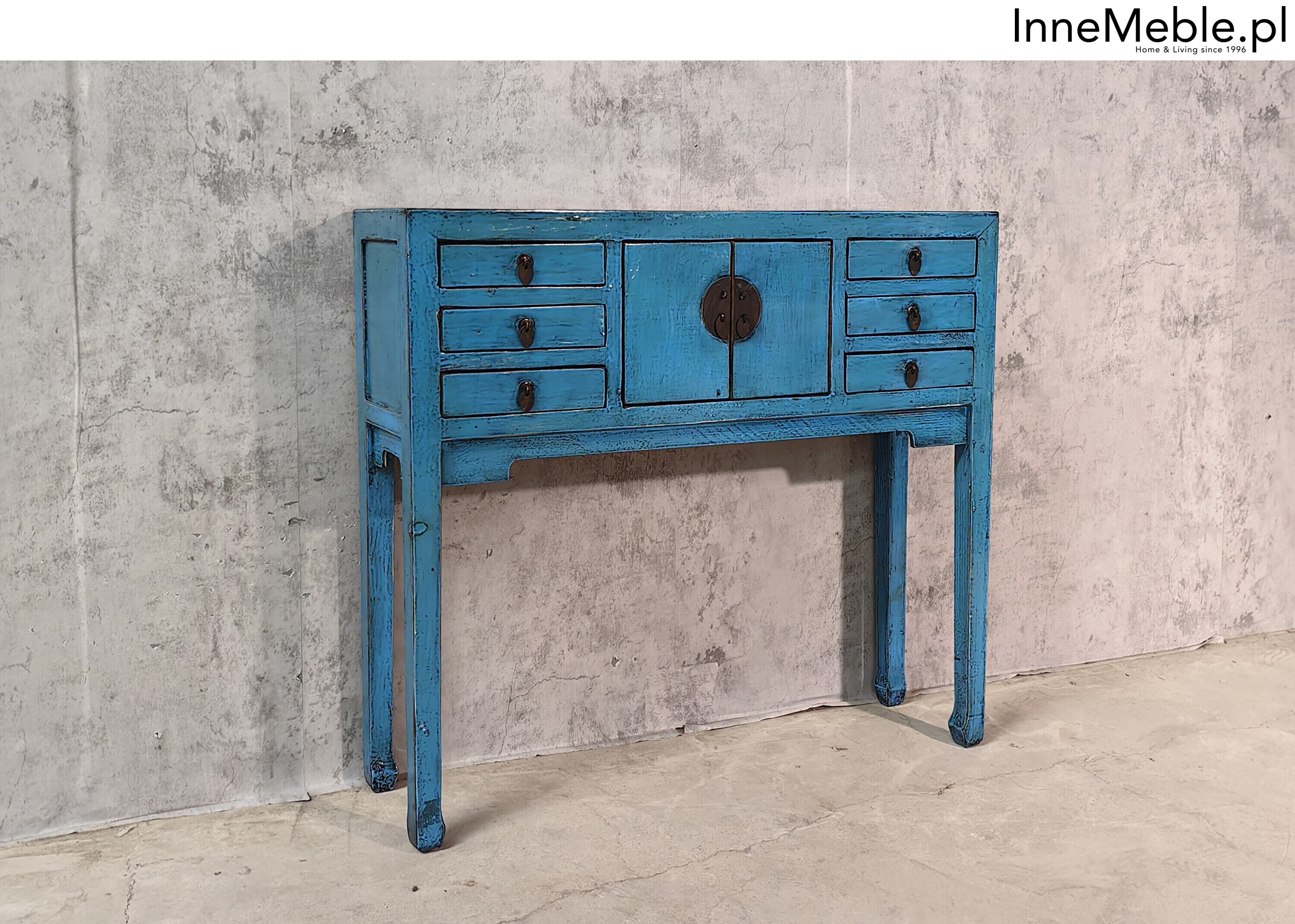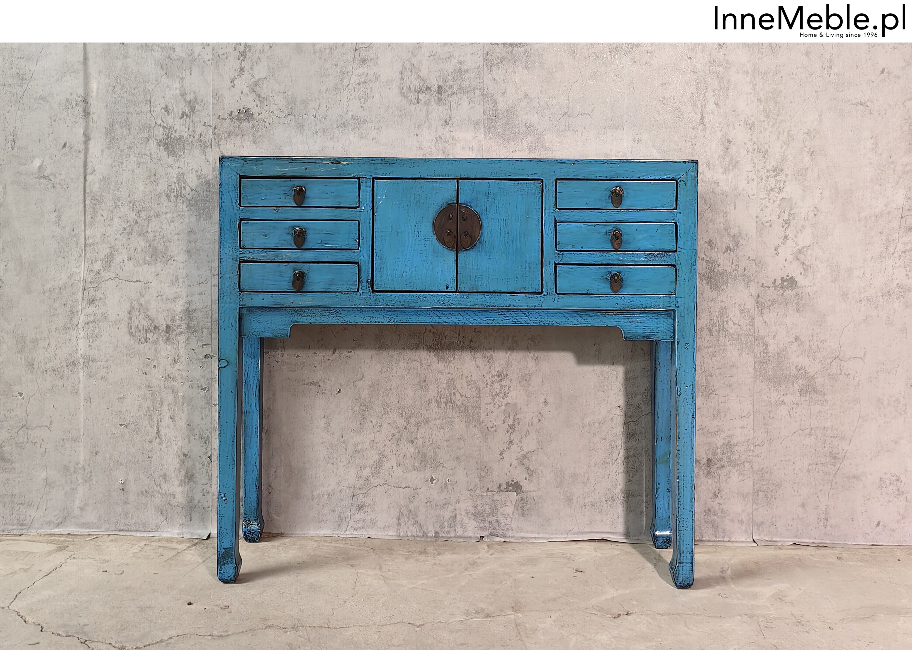 Konsolka niebieska 6 szuflady, konsola z drewna malowana kolor niebieski