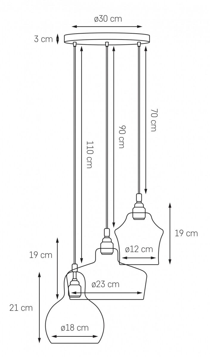 lampa wisząca 3 x 60W E27 (czarny / złoty / transparent)