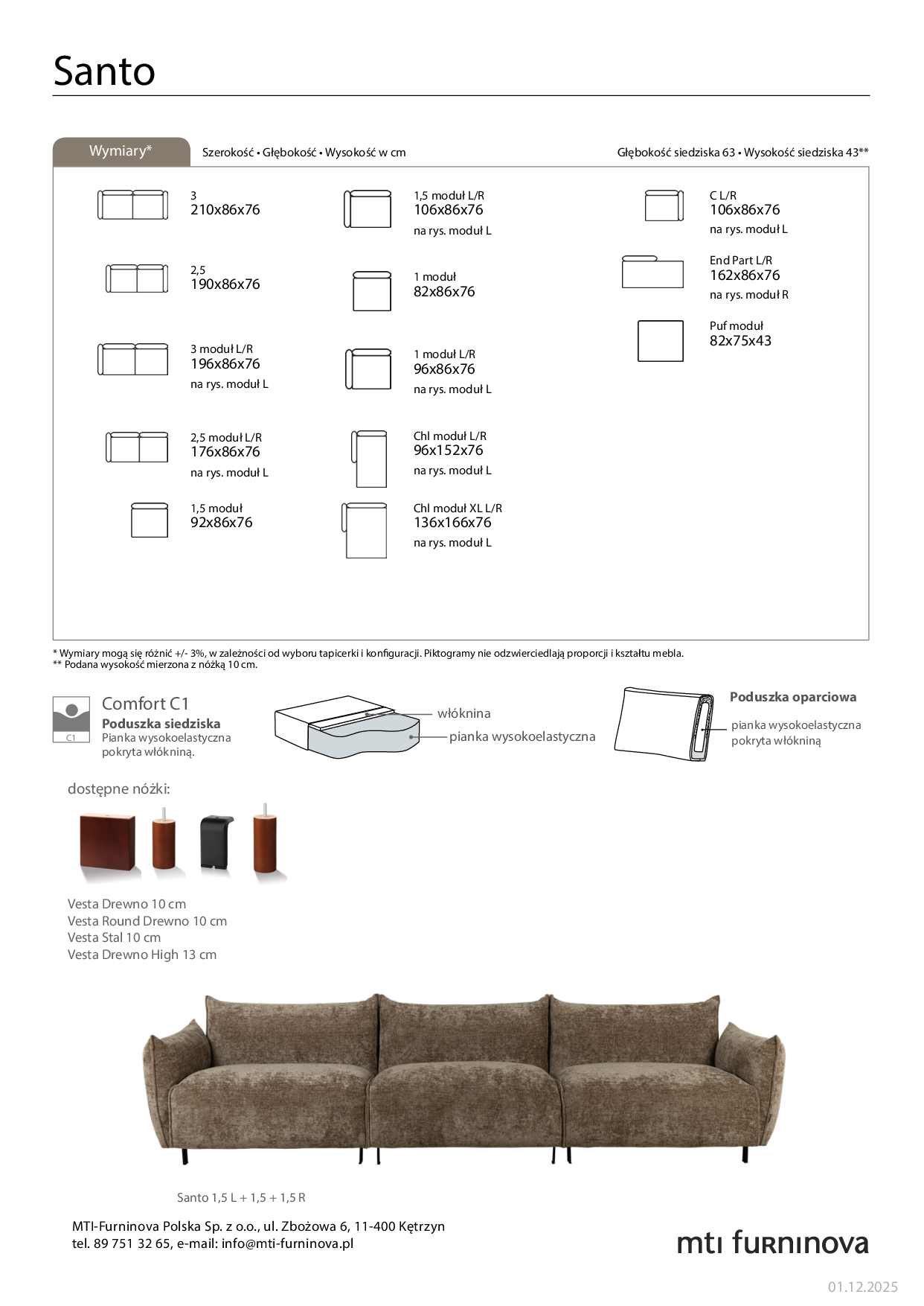 | 2 | SANTO 3 sofa | COMF_1 | - | - | - | 4075 zł | 4275 zł | 4515 zł | 4755 zł | 4915 zł | 6605 zł | 7385 zł | 8657 zł | 9912 zł |