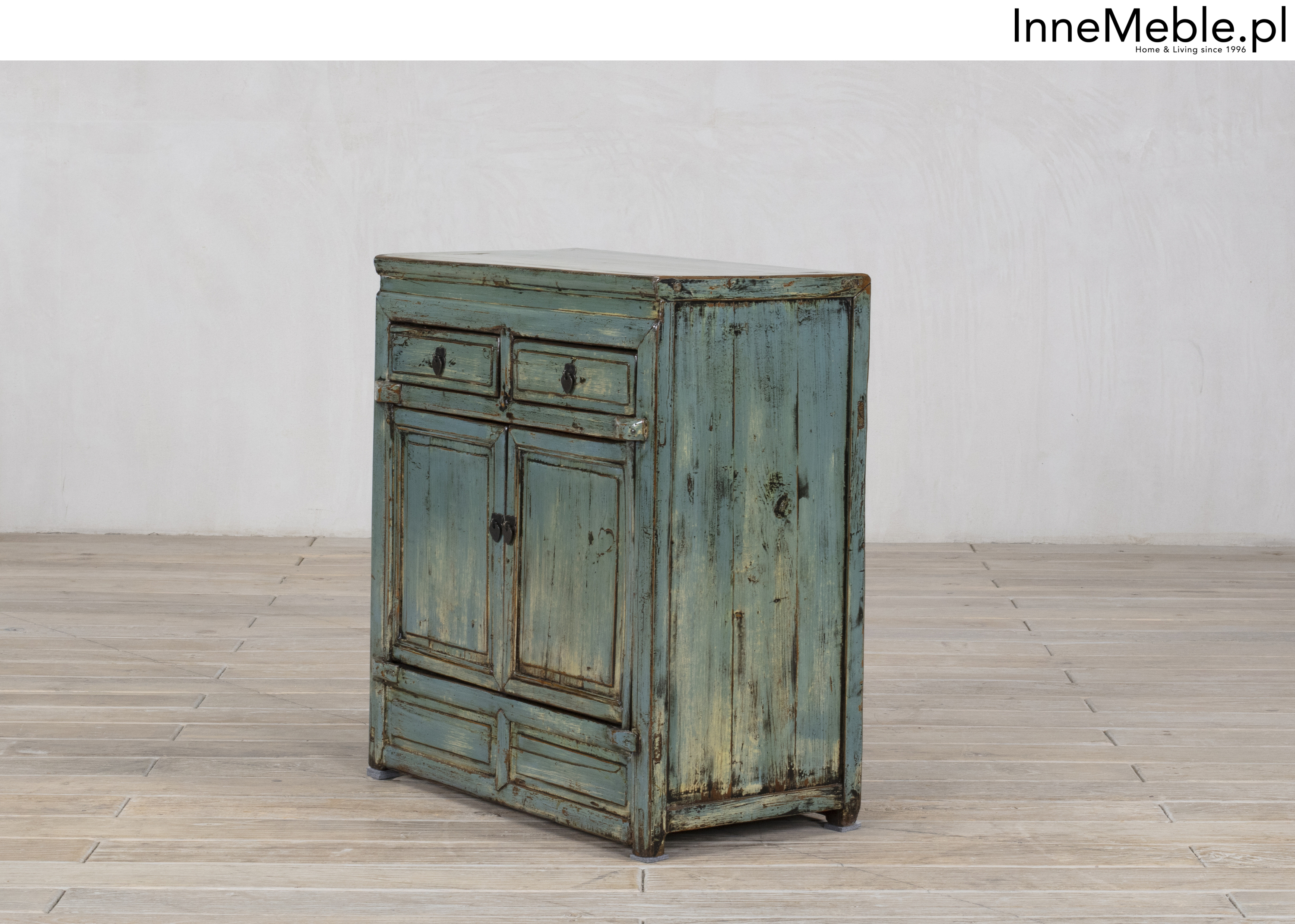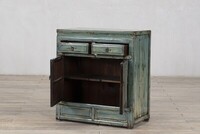 Mała komoda z szufladami w kolorze niebiesko turkusowym