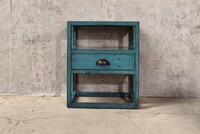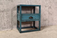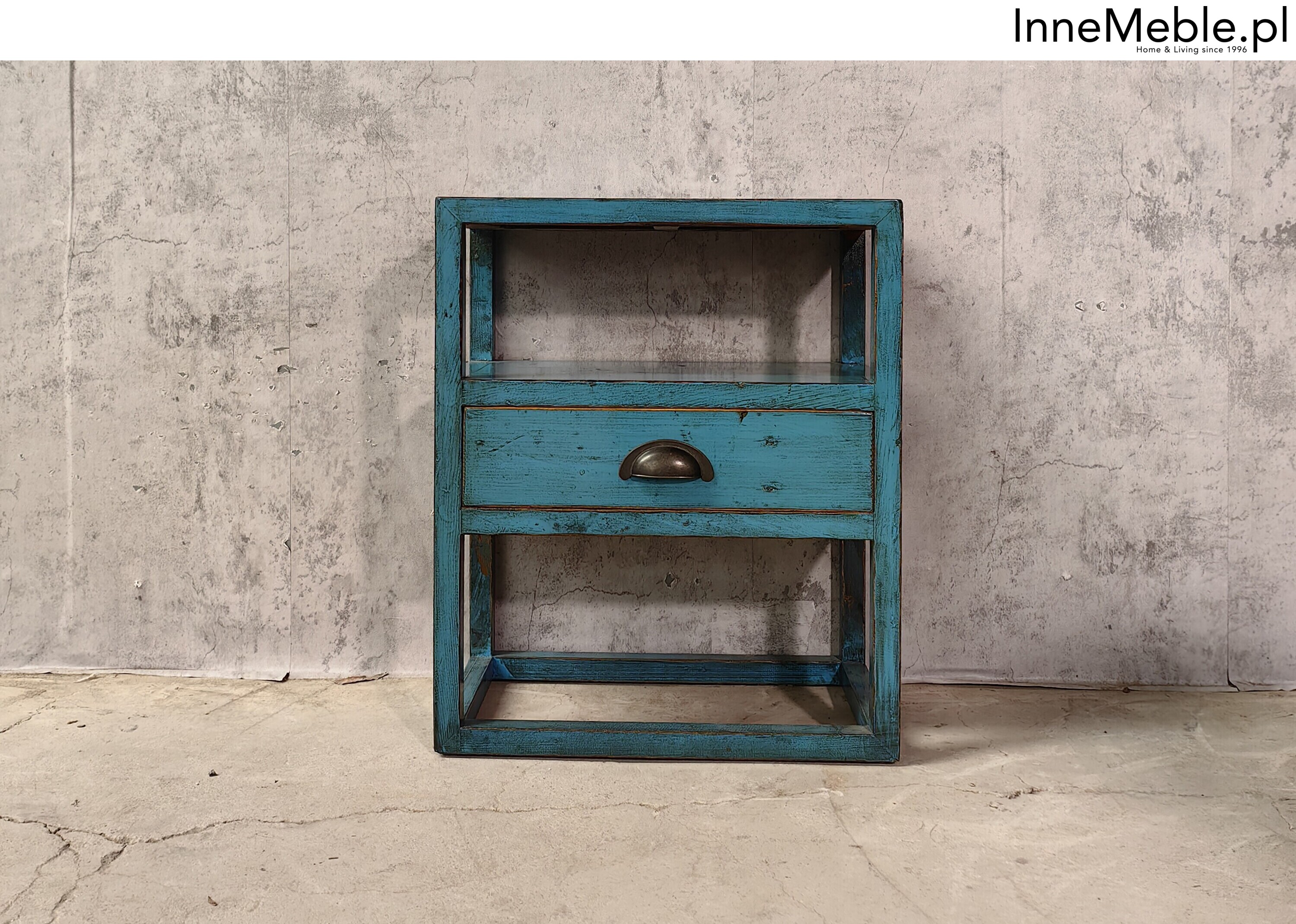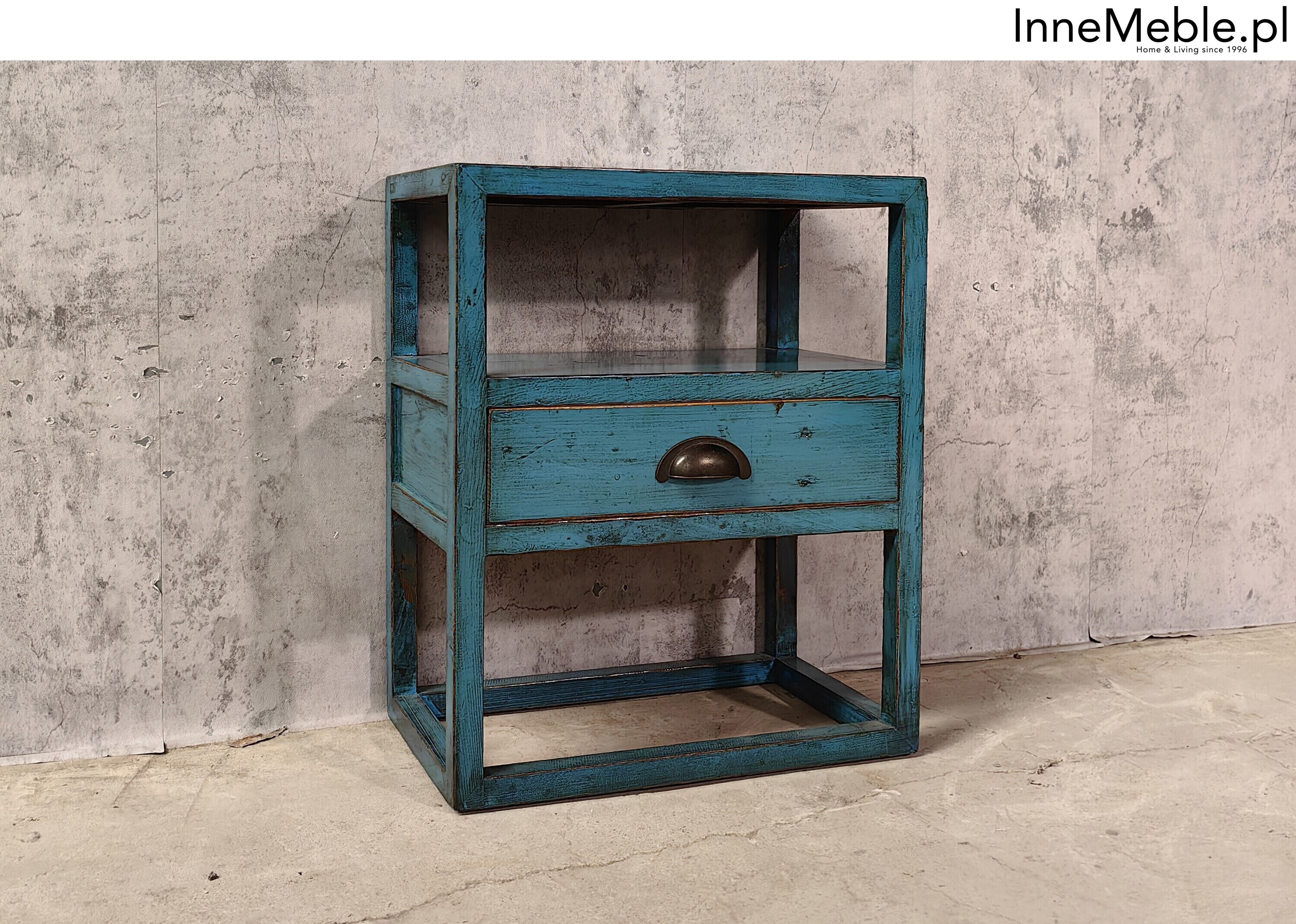 Mała szafka z szufladą niebieska, mały stolik z szufladą