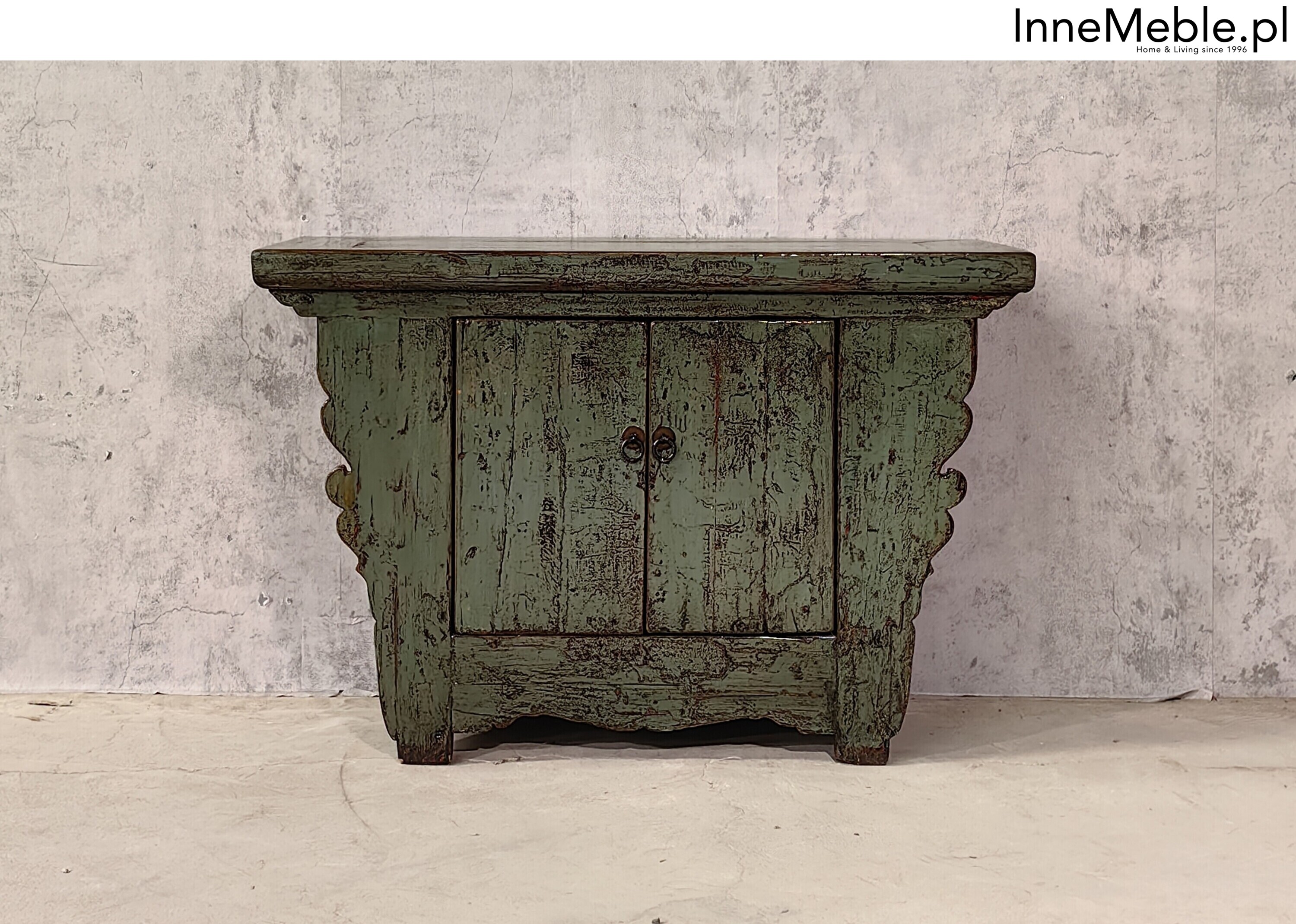 Mała szafkaz drewna antyk Chiny, małe zielone szafki z drzwiami, vintage