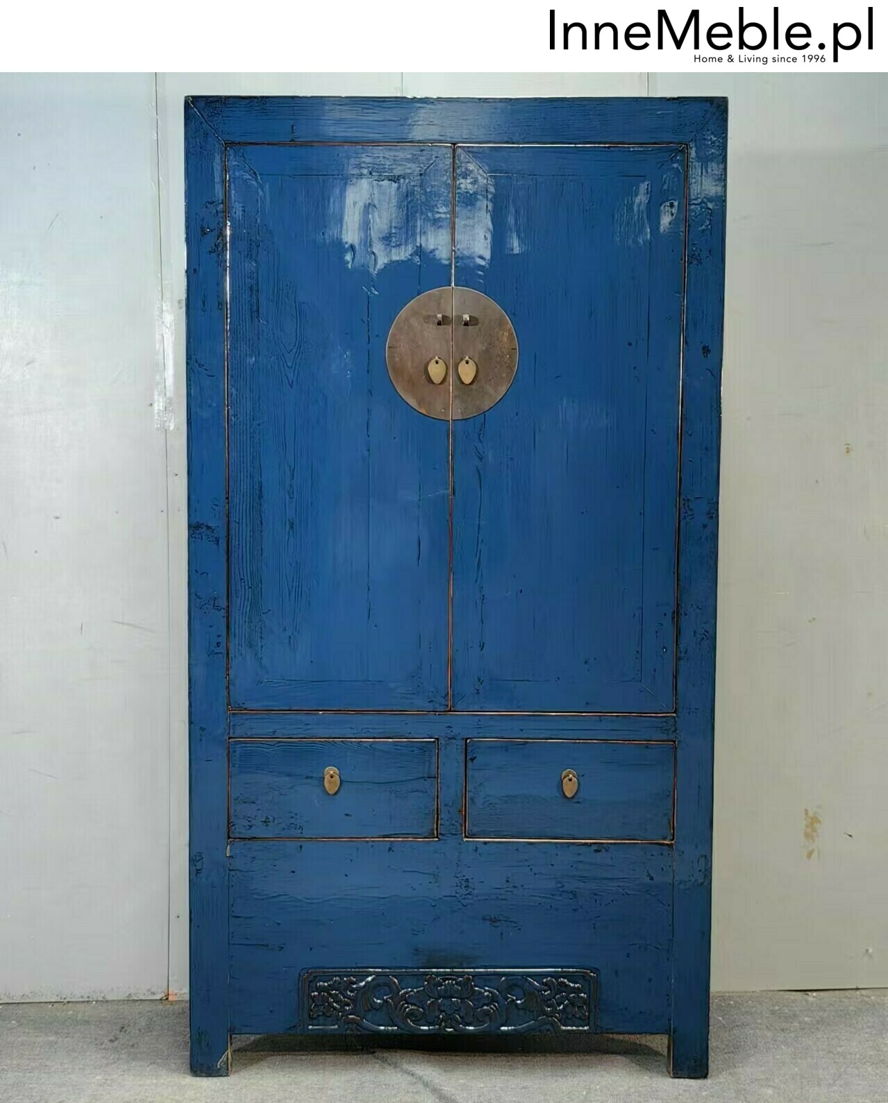 Niebieska szafa chińska połysk po renowacji, Uniakty z Chin
