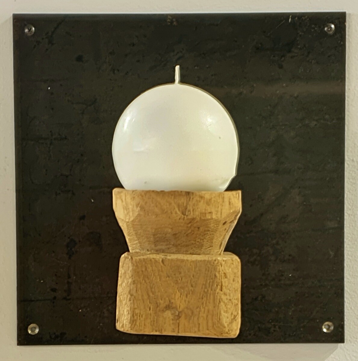 Niski świecznik unikatowy na kwadratowej metalowej ramie