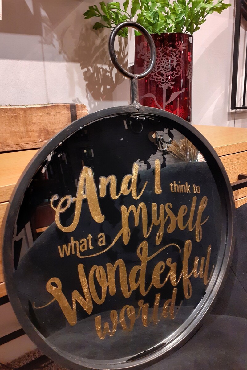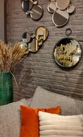 Okrągłe lustro dekoracyjne ze złotymi napisami