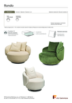 Rondo w kształcie półkola, które zapewnia wygodne miejsce dla dwóch osób. Jego miękkie, zaokrąglone linie i poduszki oparcia wypełnione piórami tworzą przyjemną atmosferę. Jest to komfortowy dwuosobowy fotel z funkcją obrotu, który łatwo można umieścić w ciasnych przestrzeniach lub ustawieniach. Rondo Small, nieco mniejszy od swojego większego odpowiednika, również posiada miękkie, zaokrąglone linie i poduszkę oparcia wypełnioną piórami, zapewniając przyjemne miejsce do siedzenia dla jednej osoby.