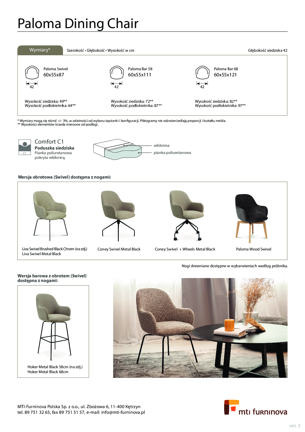 | 3 | PALOMA DINING CHAIR (obrotowe) | COMF_1 | - | - | - | 1483 zł | 1508 zł | 1560 zł | 1609 zł | 1635 zł | 1980 zł | 2127 zł | 2383 zł | 2617 zł |