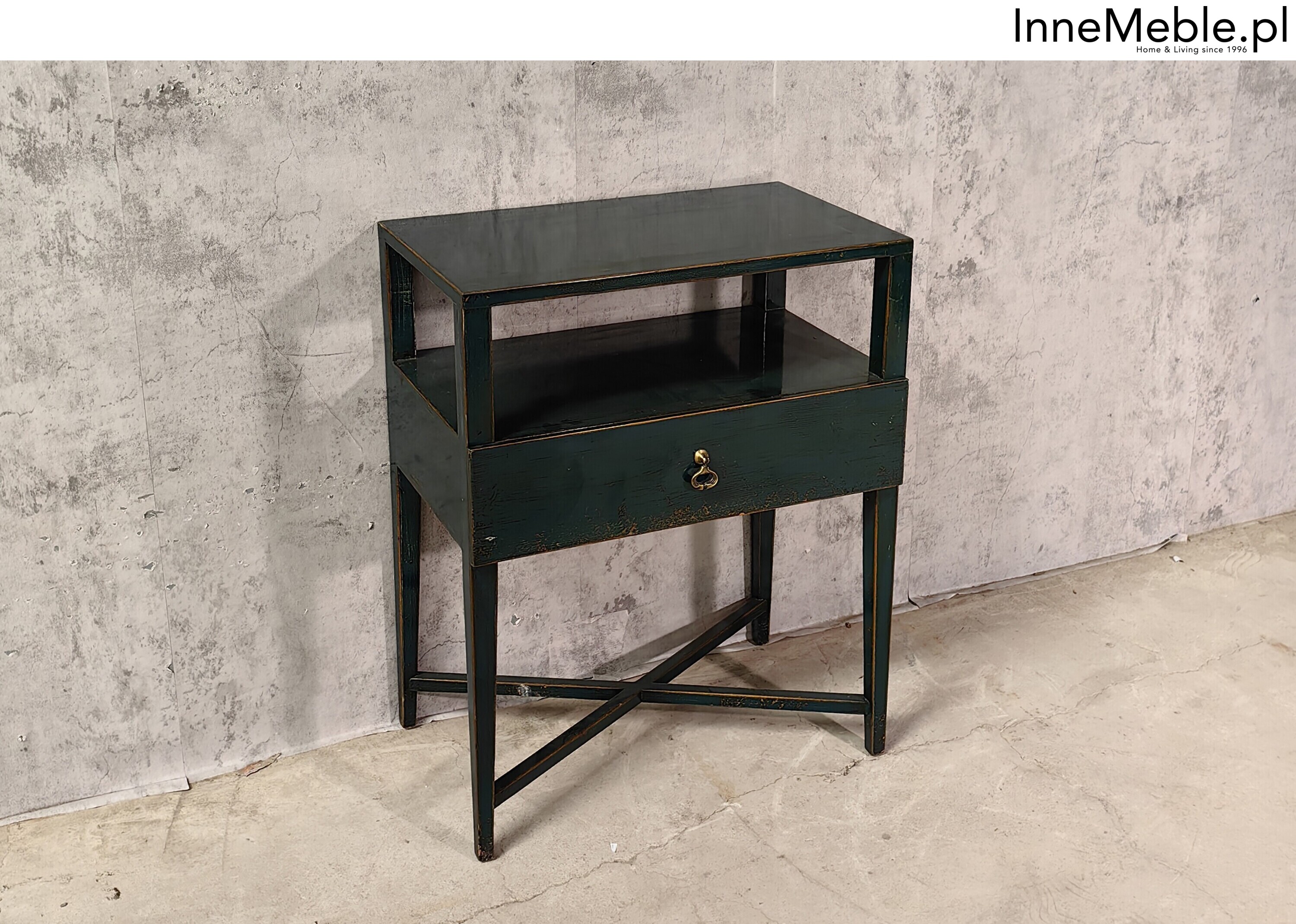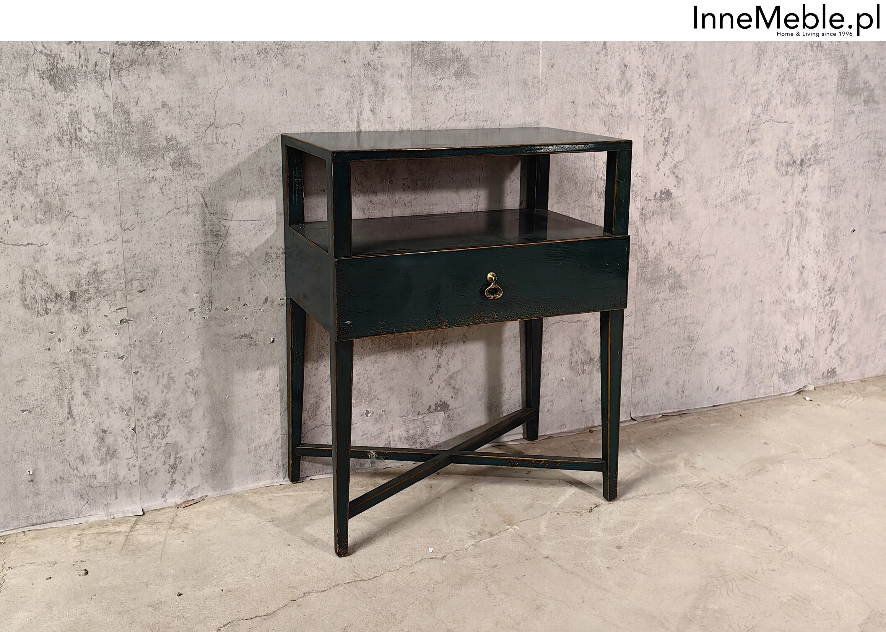 Prosta szafka nocna z szufladą niebieska, turkusowy stolik nocny