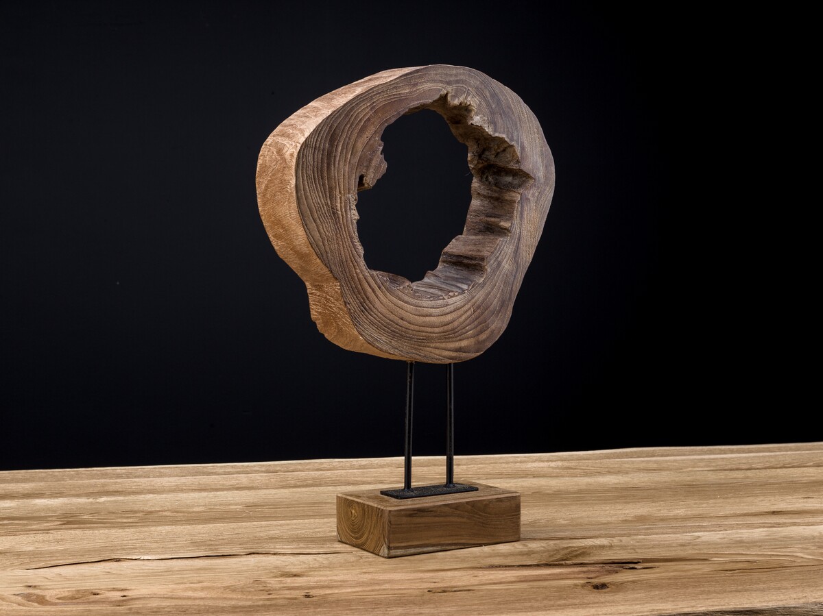 Stojąca dekoracja z drewna tekowego, o naturalnych kształtach, wykonana z litych kawałków drewna tekowego. W kolorach naturalnych drewna, od złotego po brąz. Dekoracja, która znajdzie swoje miejsce zarówno w nowoczesnym, loftowym wnętrzu jak i klasycznym. Oryginalne dopełnienie ciepłego wnętrza. Element Natury w Naszym Domu.