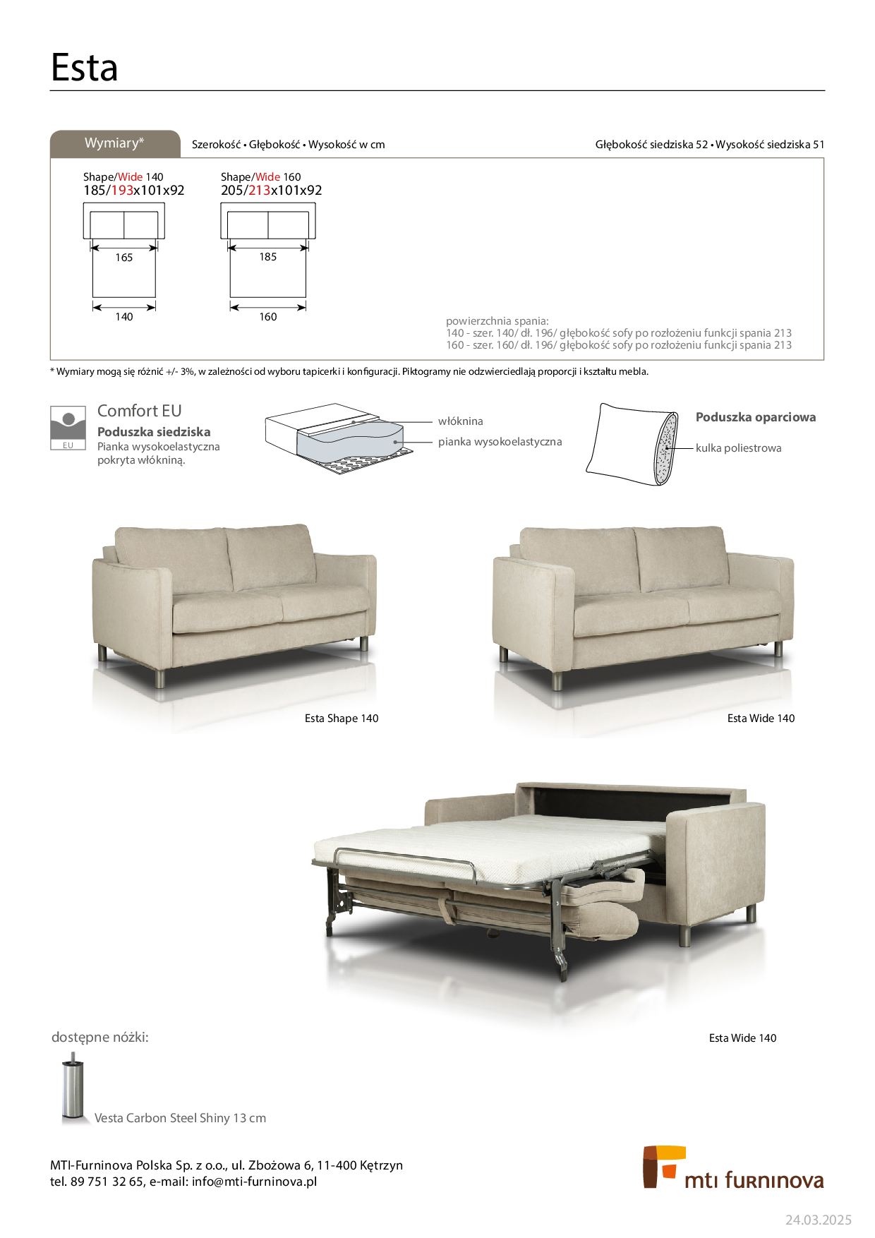 Esta to nowe spojrzenie na sofę z funkcją spania. Odświeżona forma oraz nowy mechanizm typu włoskiego dadzą gwarancję satysfkacji, a przede wszystkim zagwarantują komfortowy wypoczynek i sen.