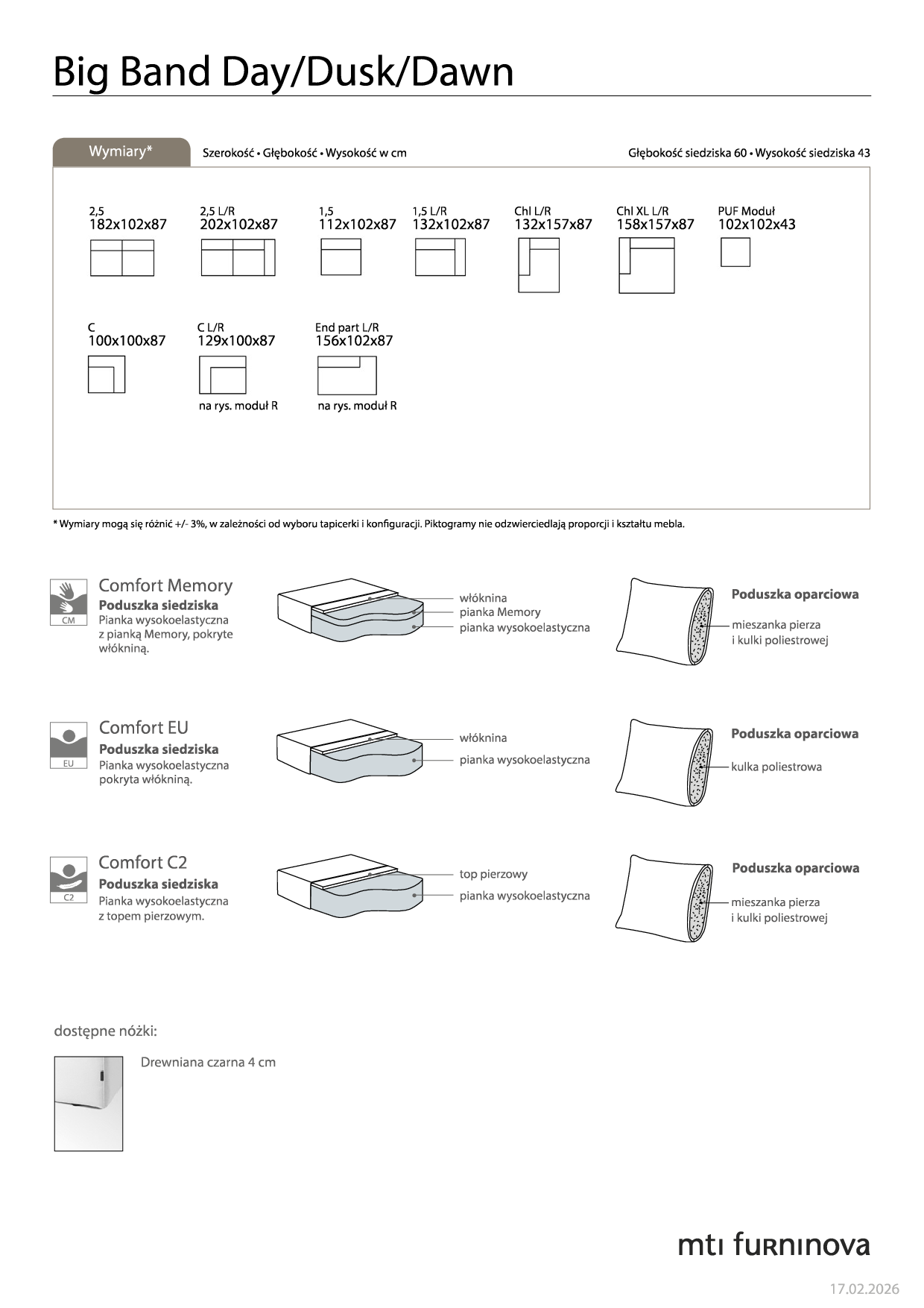 | Dopłata brutto do COMF 2 | Dopłata brutto do COMF M | Dopłata brutto do COMF_4 | Tkanina gr. A | Tkanina gr. B | Tkanina gr. C | Tkanina gr. D | Tkanina gr. Exclusive | Skóra 10 | Skóra 20 | Skóra 50 | Skóra 60 | ||||||||||||||||||||||||||||||||||||||||||||