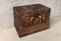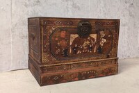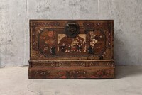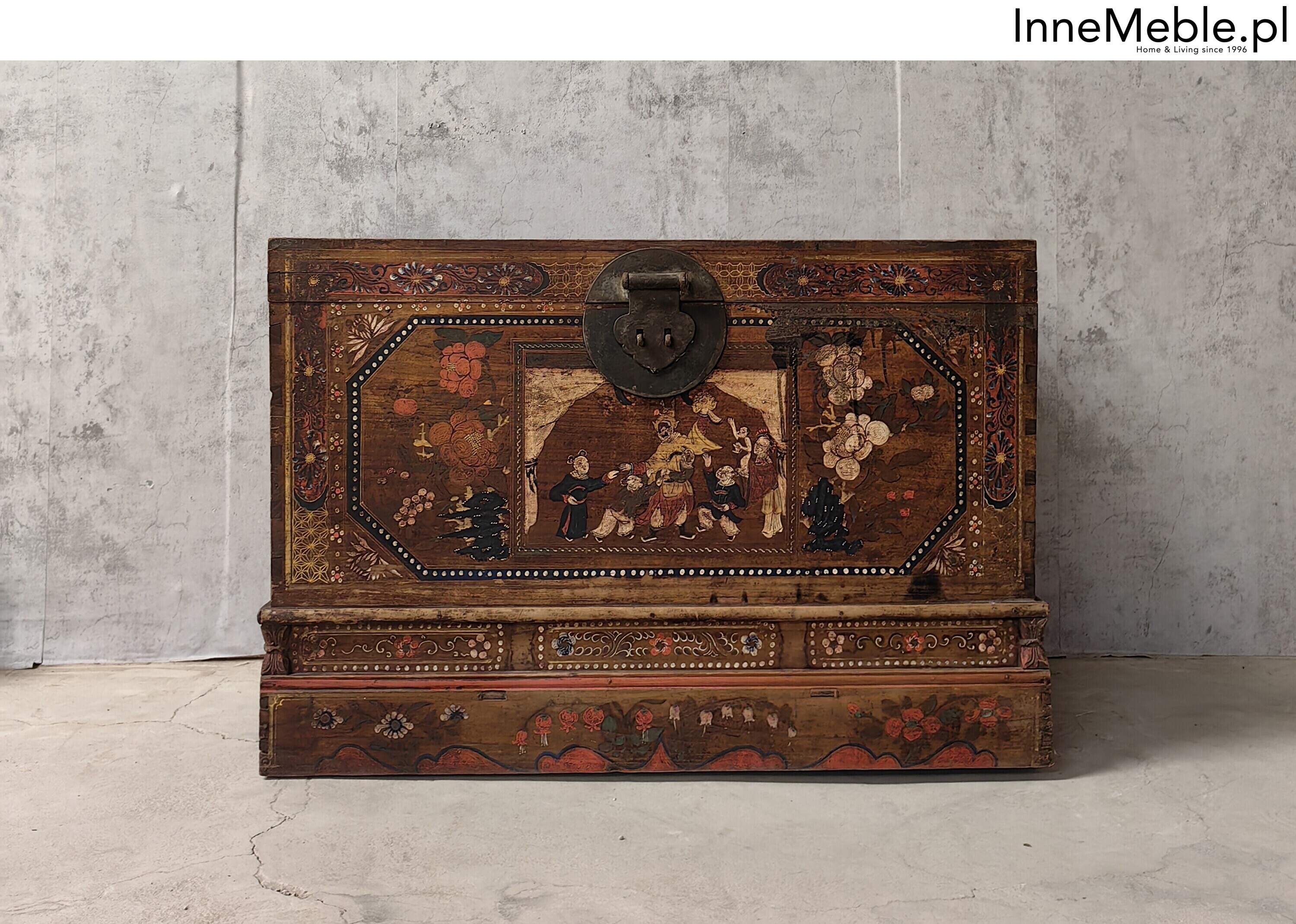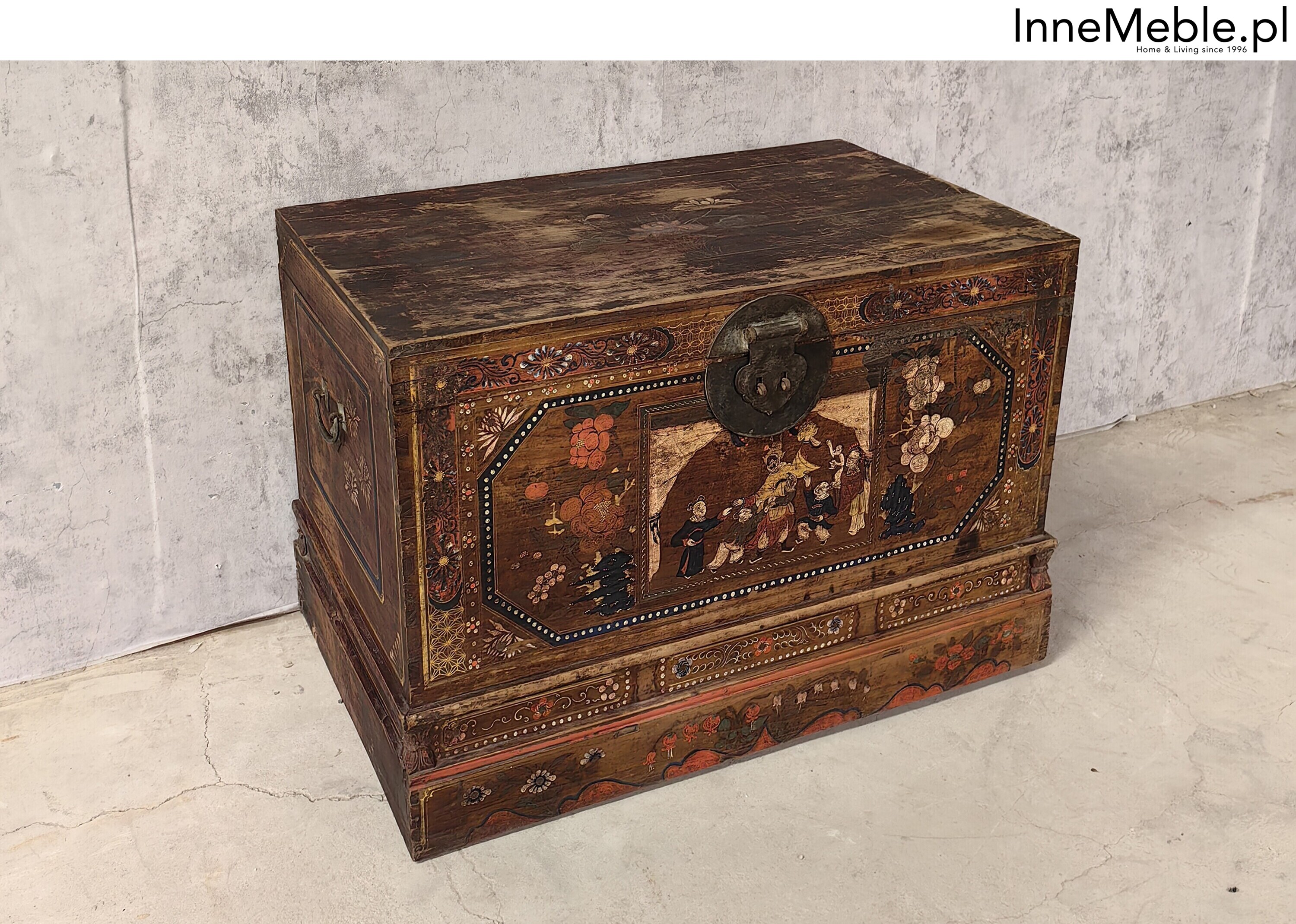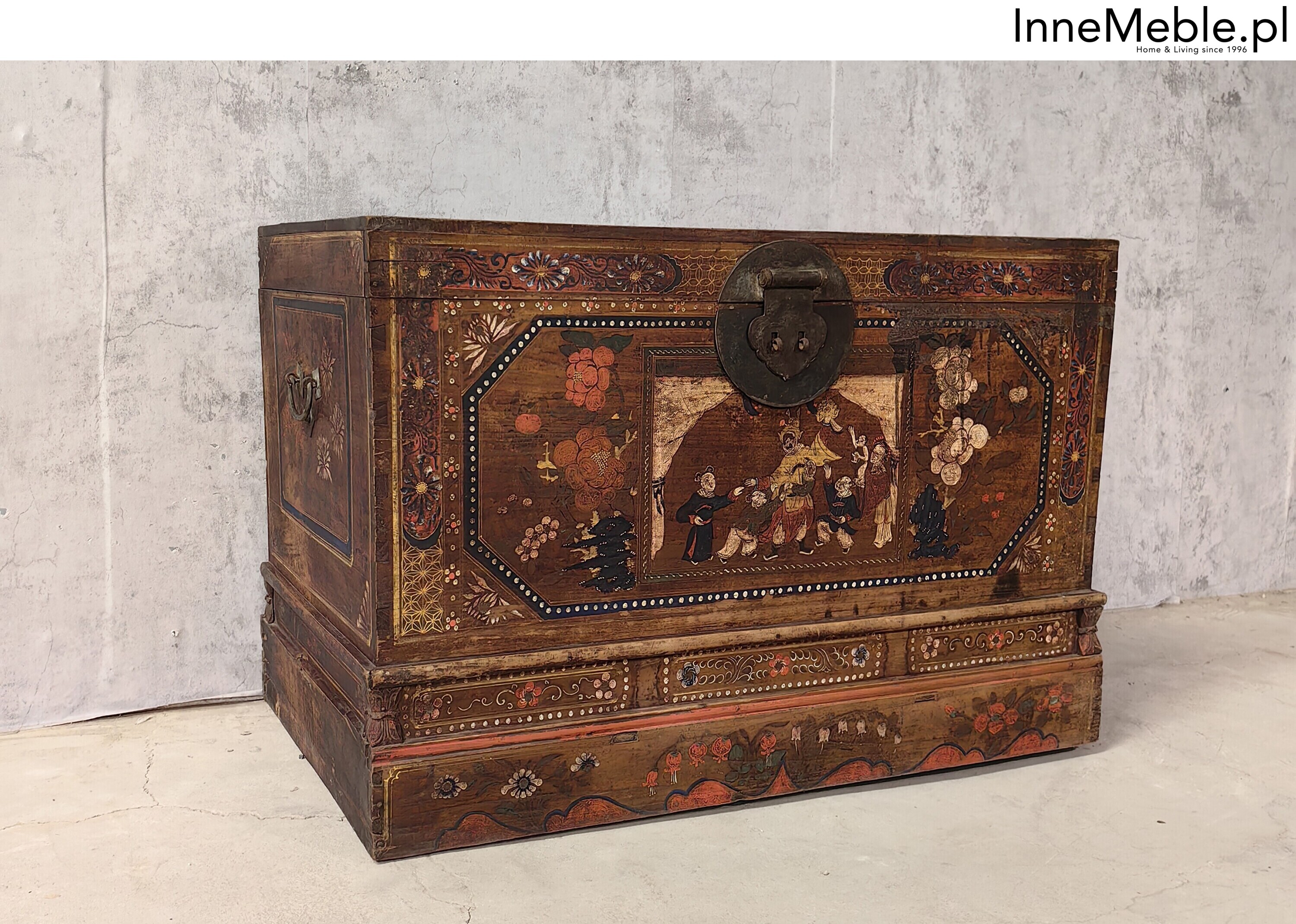 Stara skrzynia chińska z malowidłami, skrzynia dekoracyjna antyk Chiny