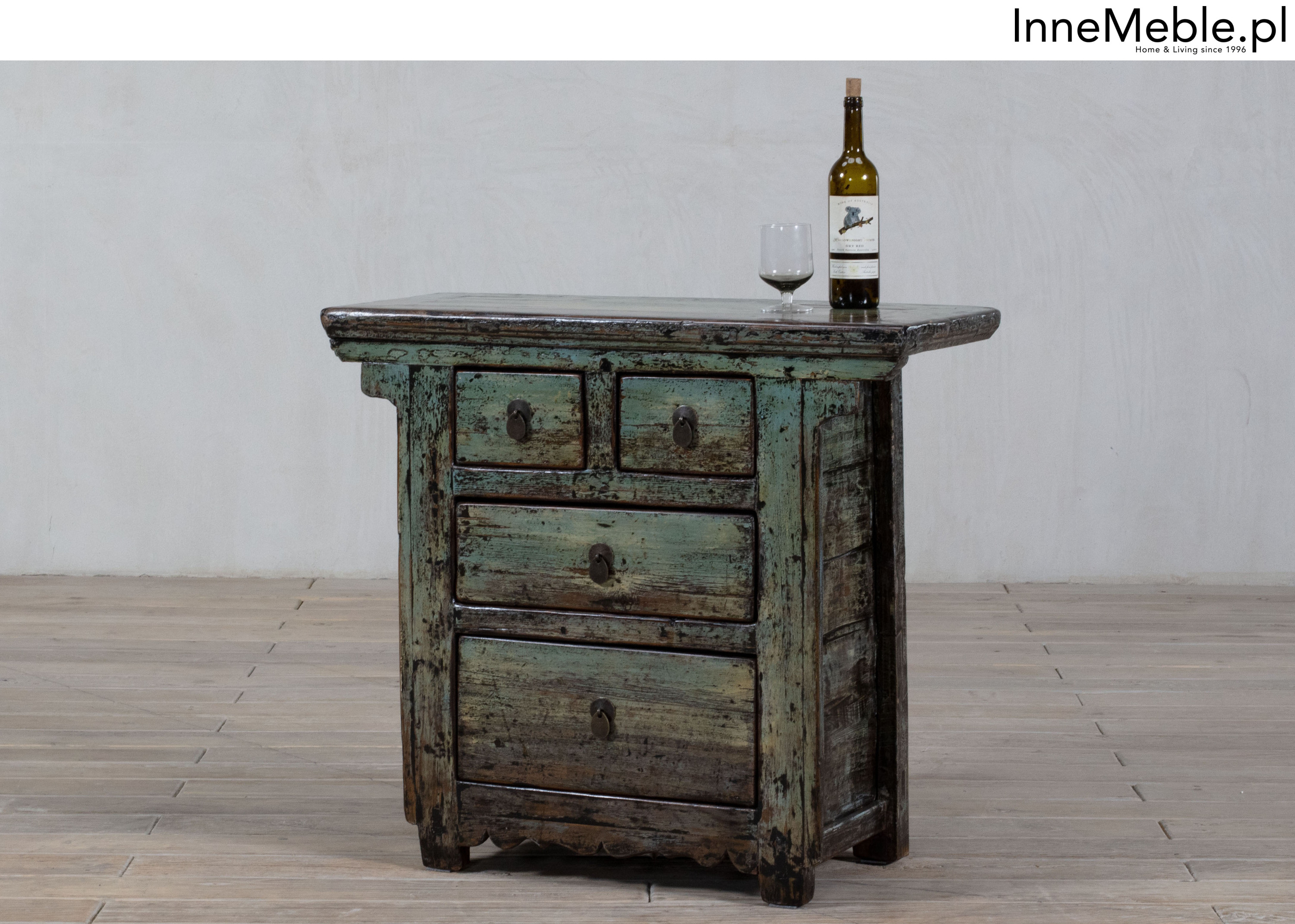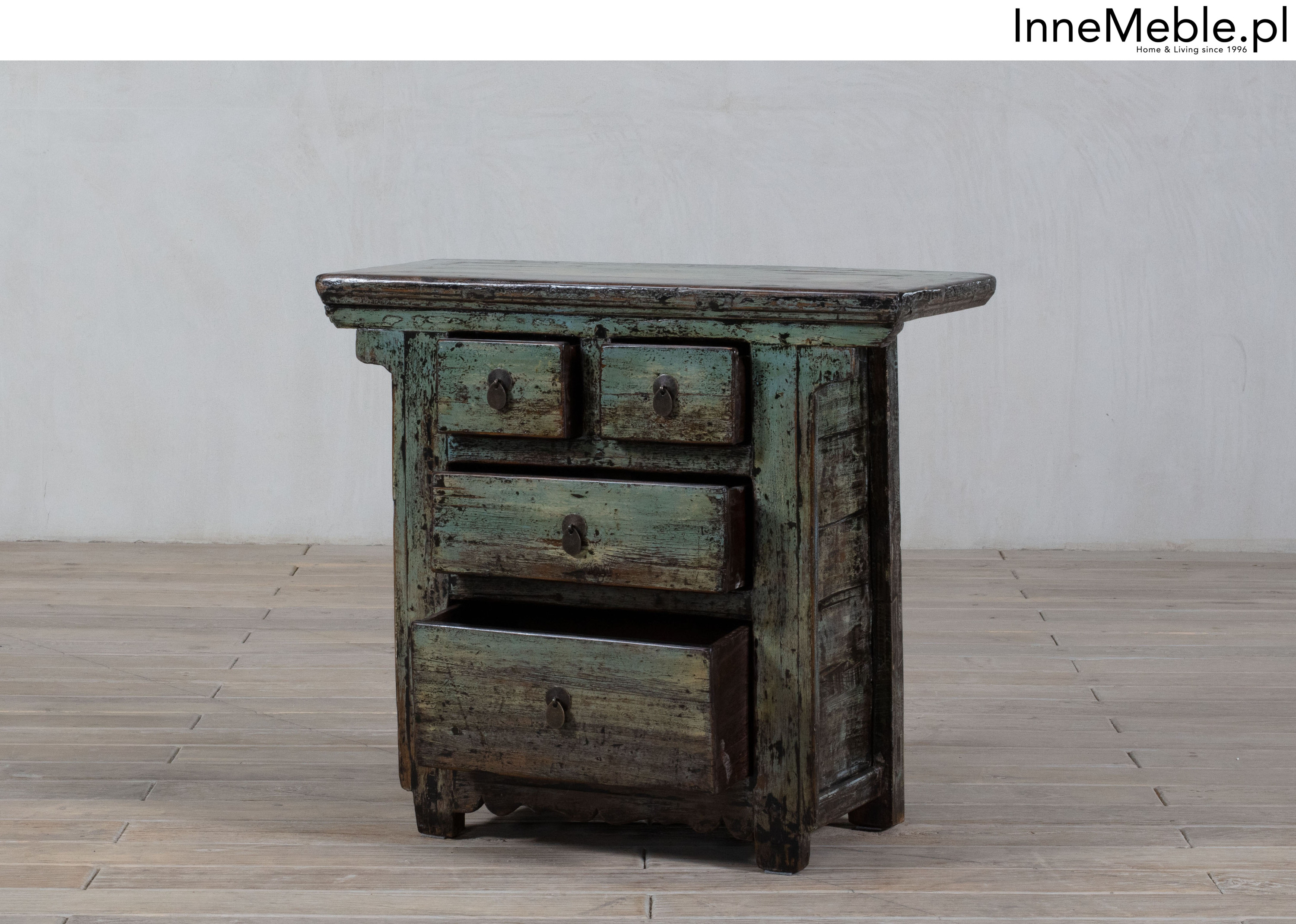 Szafka 4 szuflady turkusowa postarzana