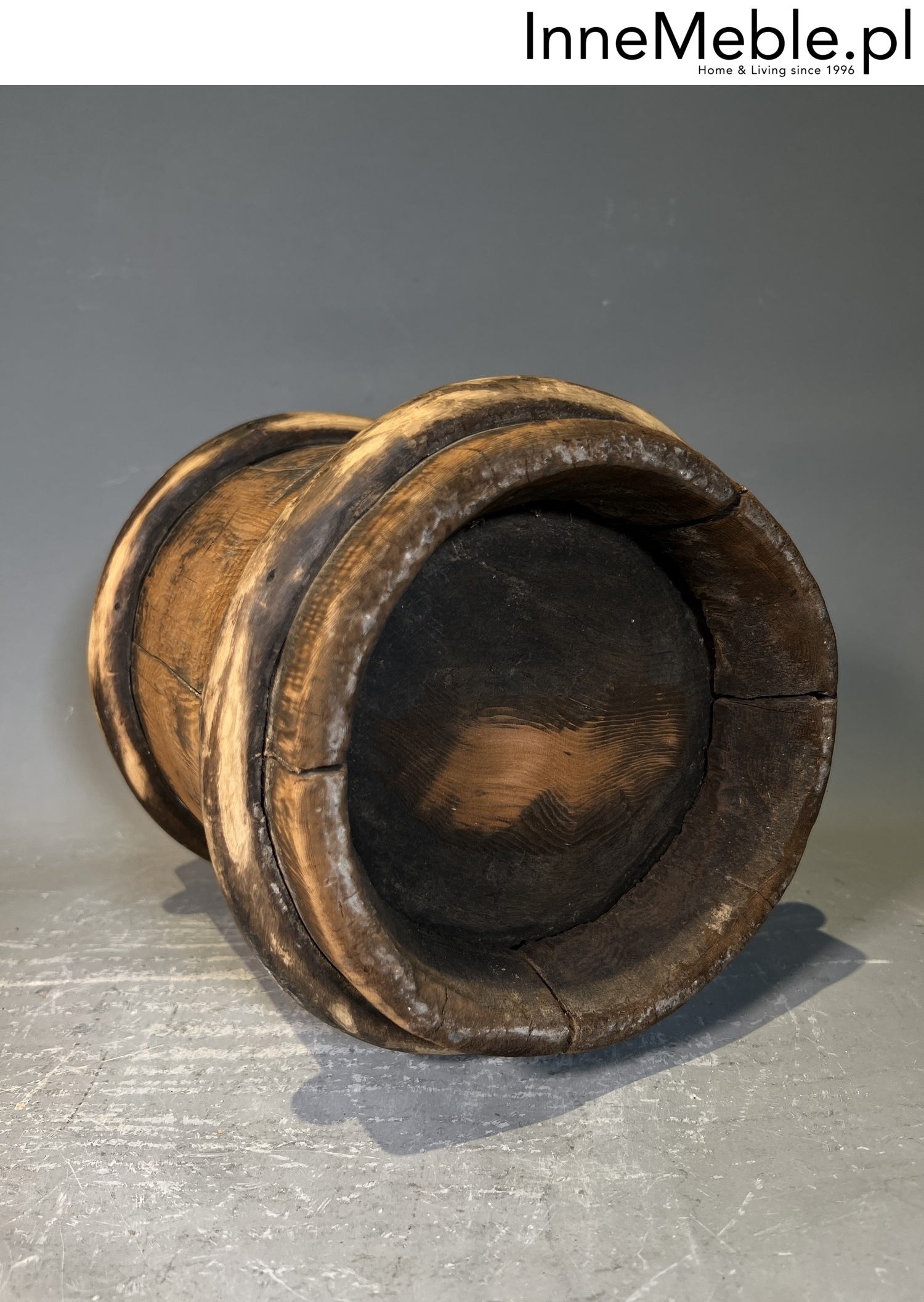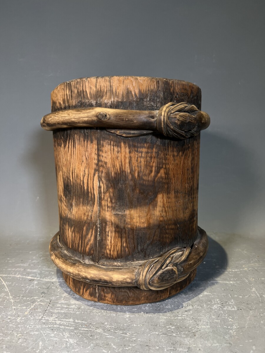 Wiadro z drewna, oryginalne stare wiadro, pojemnik z drewna
