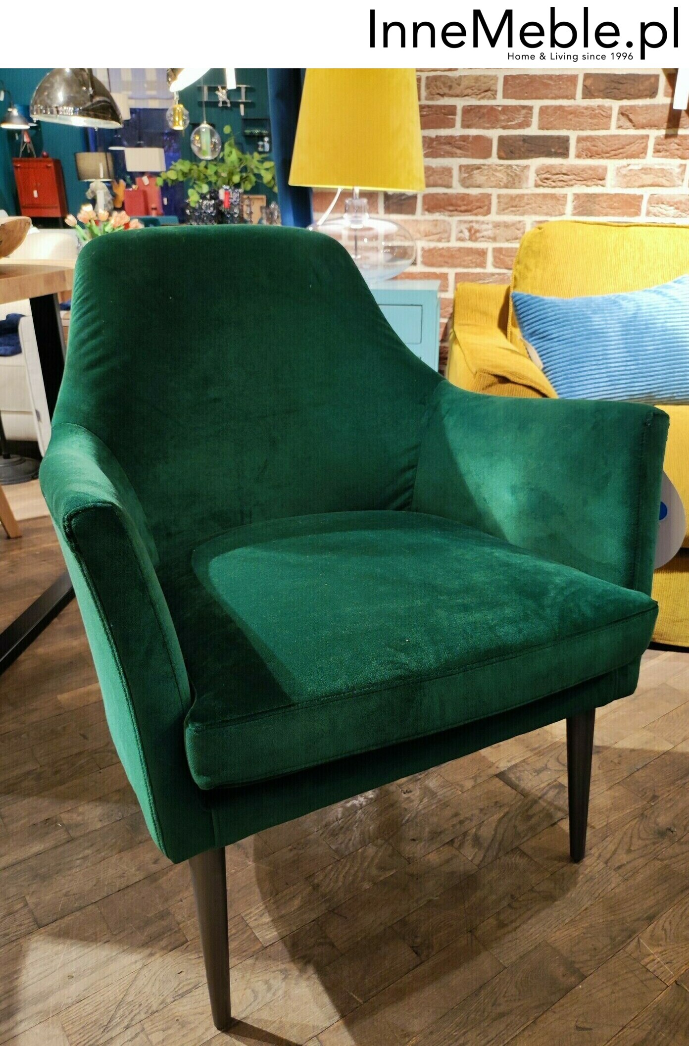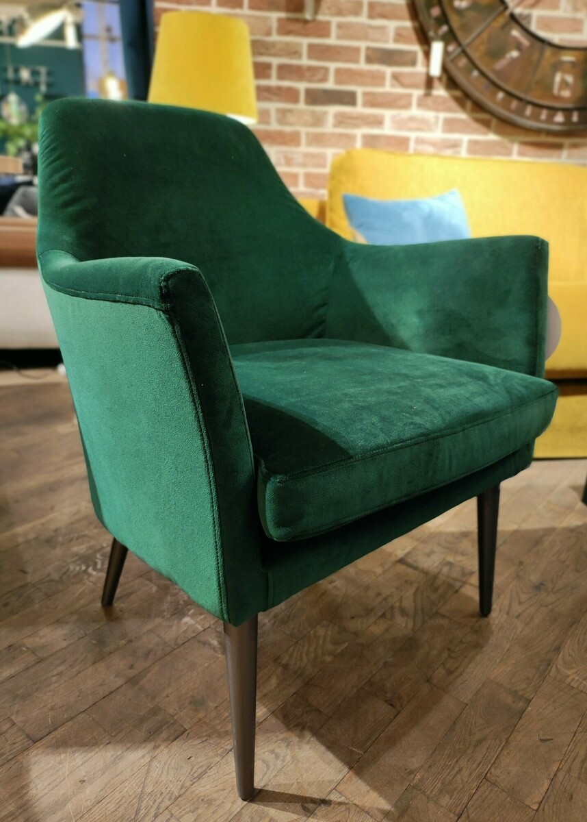 Zgrabny zielony fotel, do salonu. Fotel do biura.