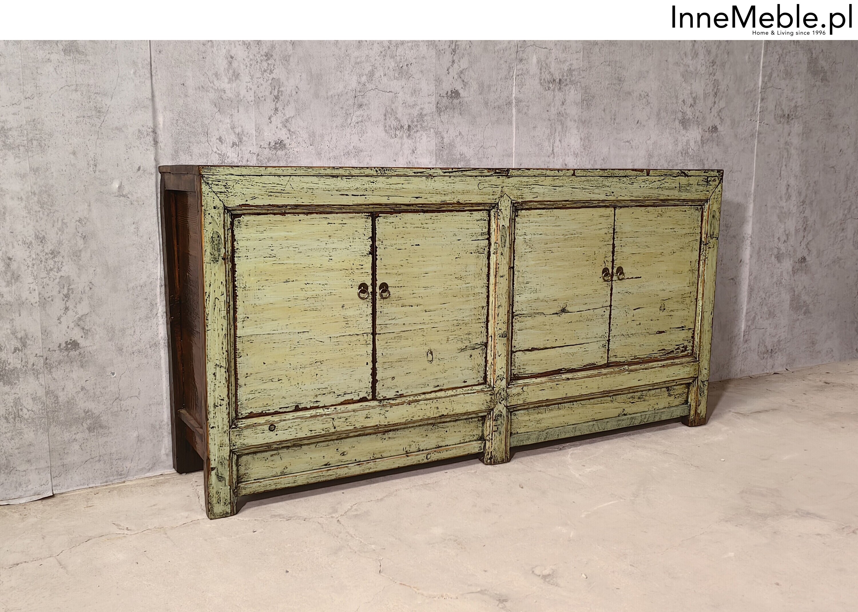 Zielona duża komoda do salonu, komoda z drzwiami, komody z drewna