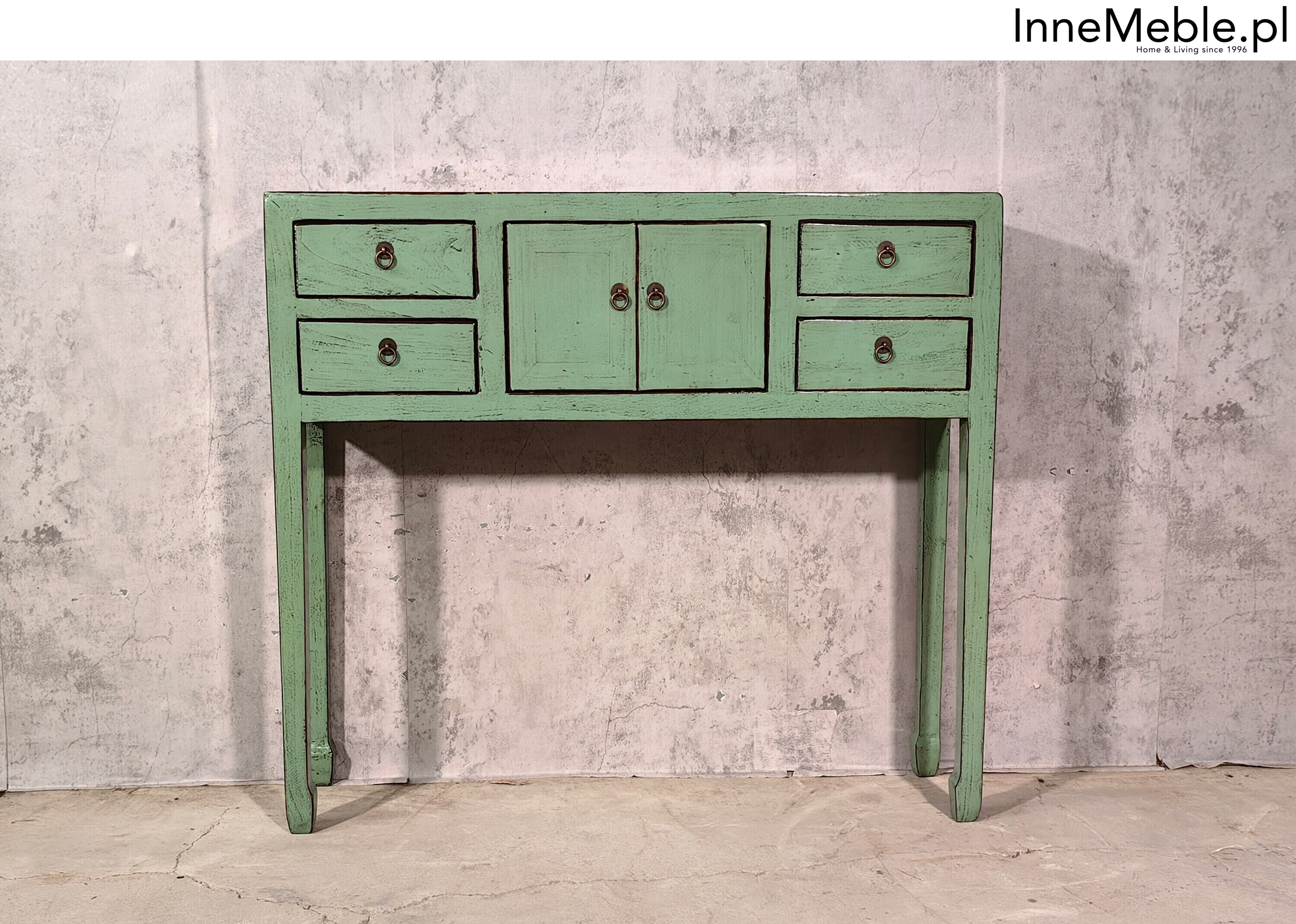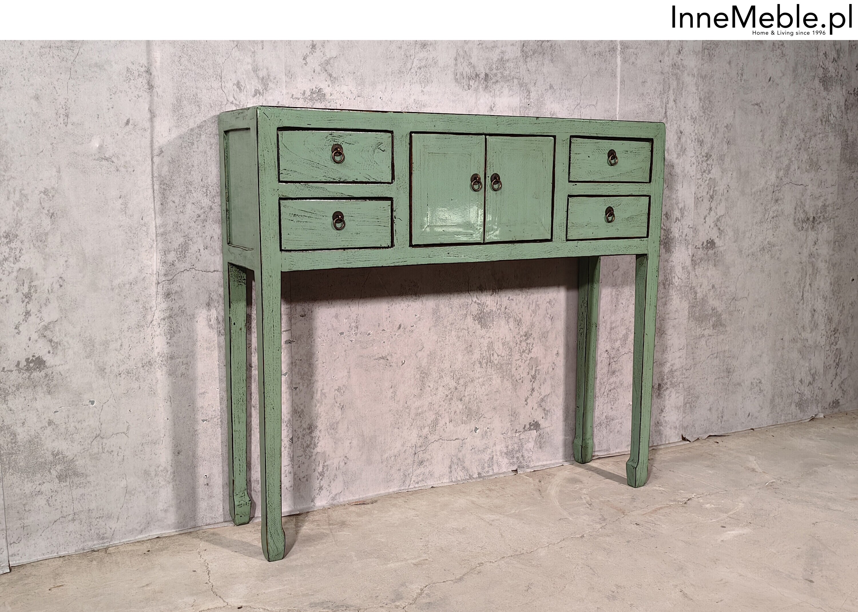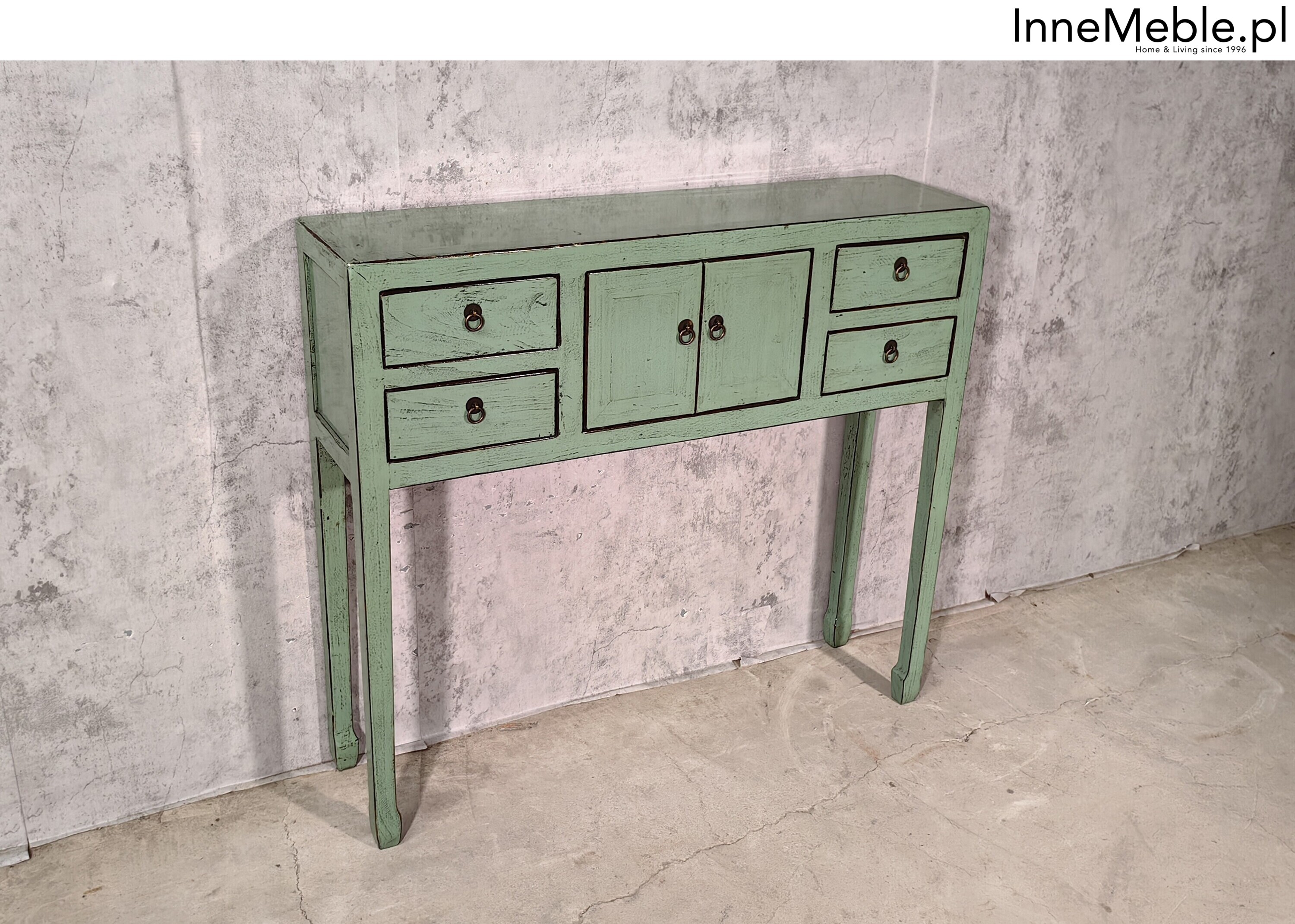 Zielona konsolka, konsola 100cm, wąskie meble zielone drewniane, green